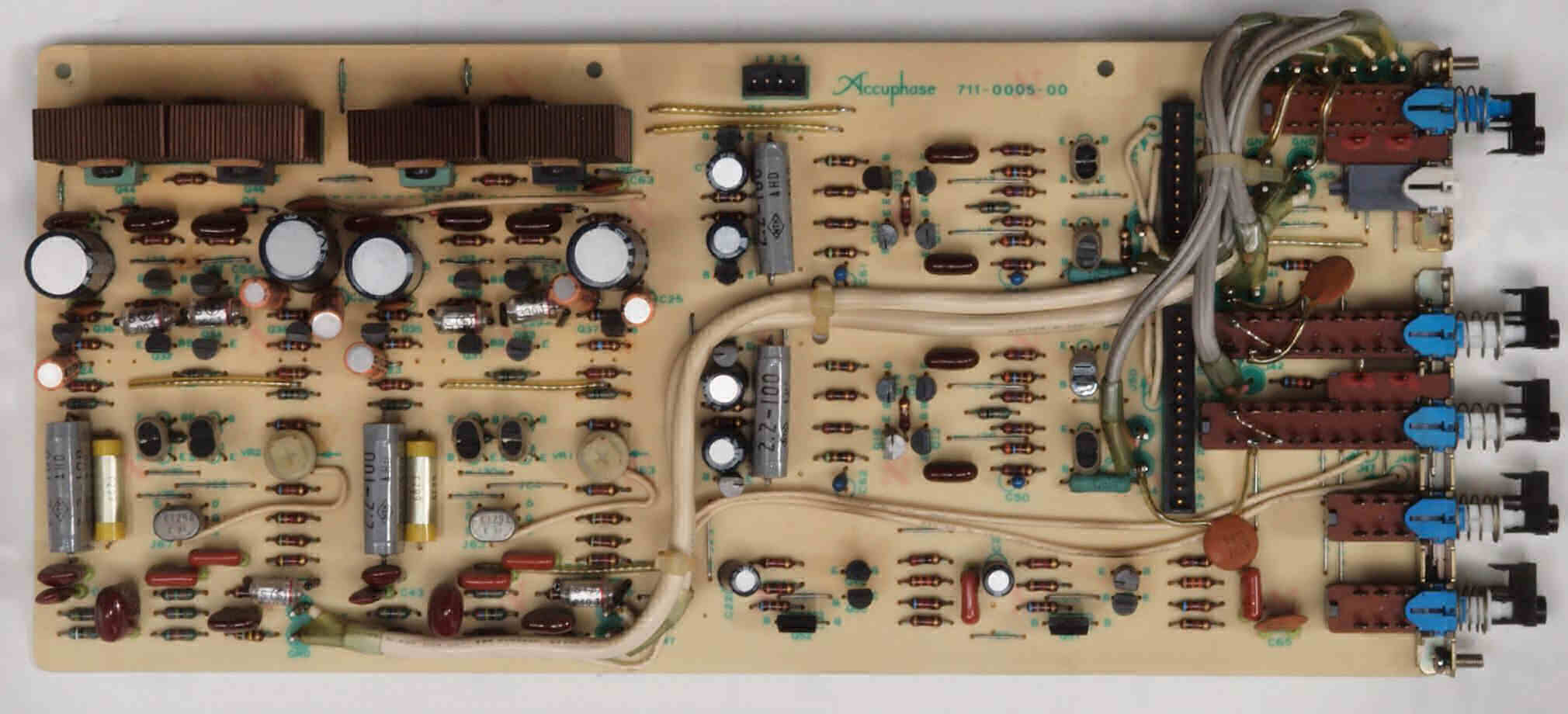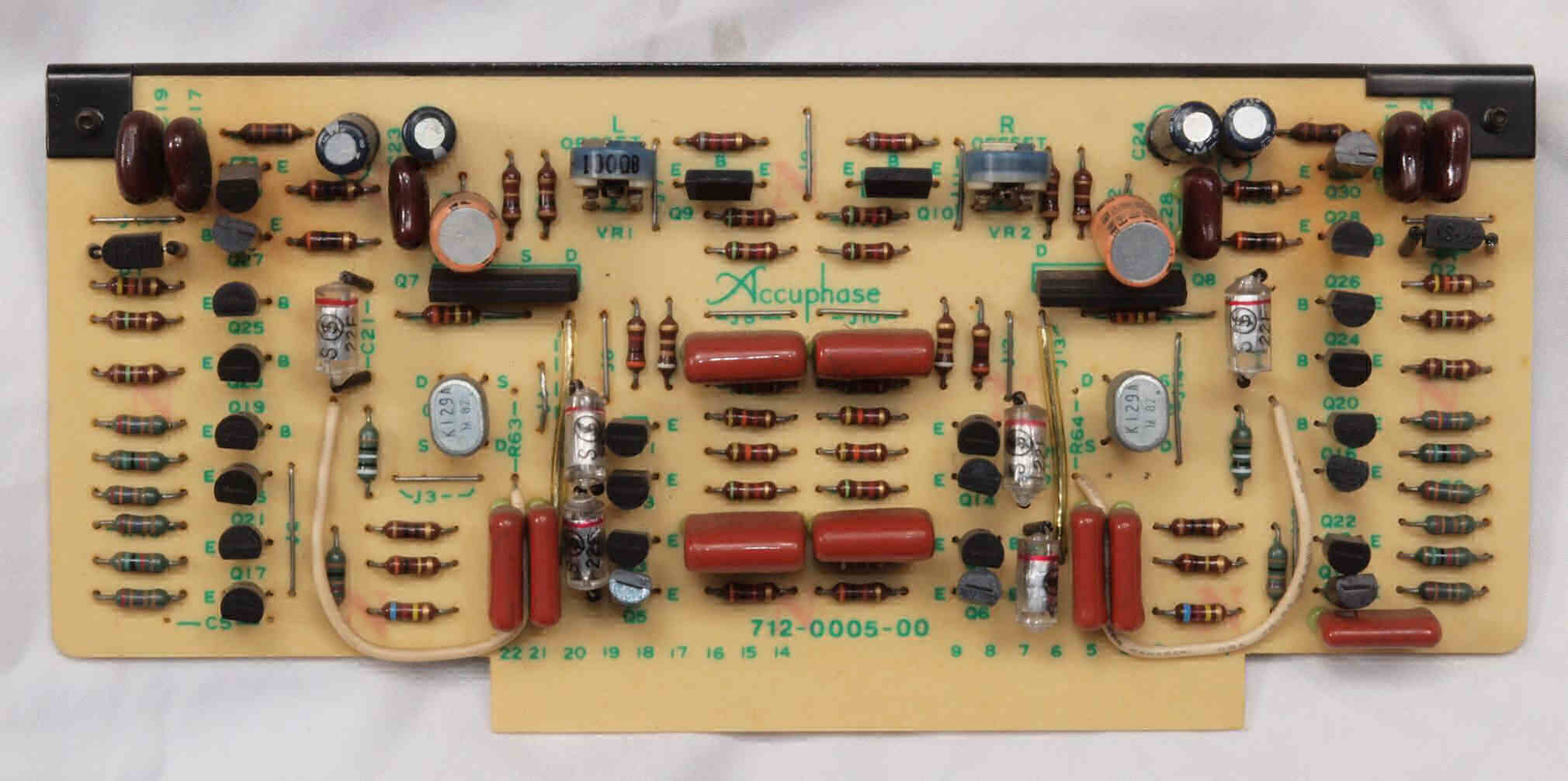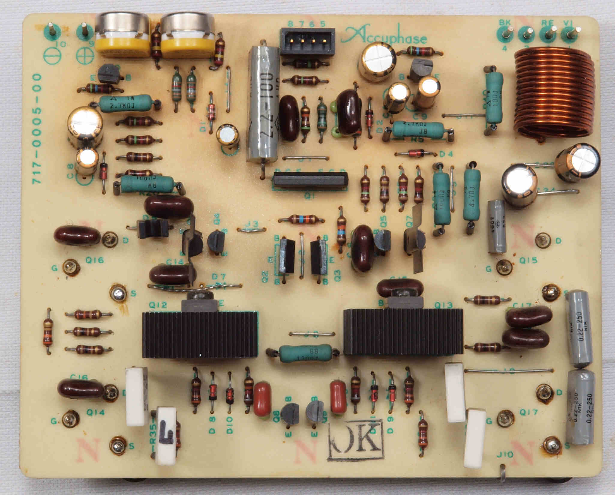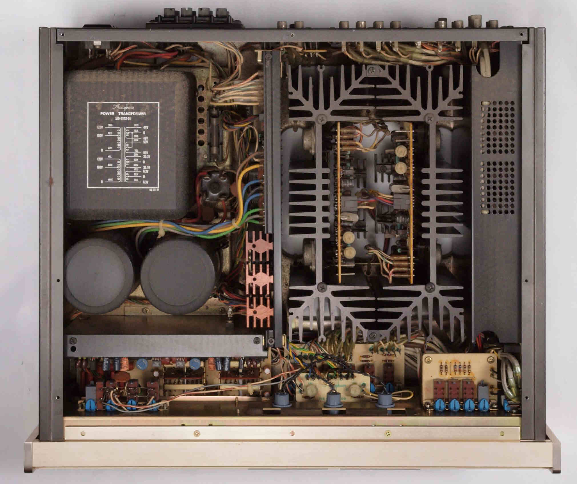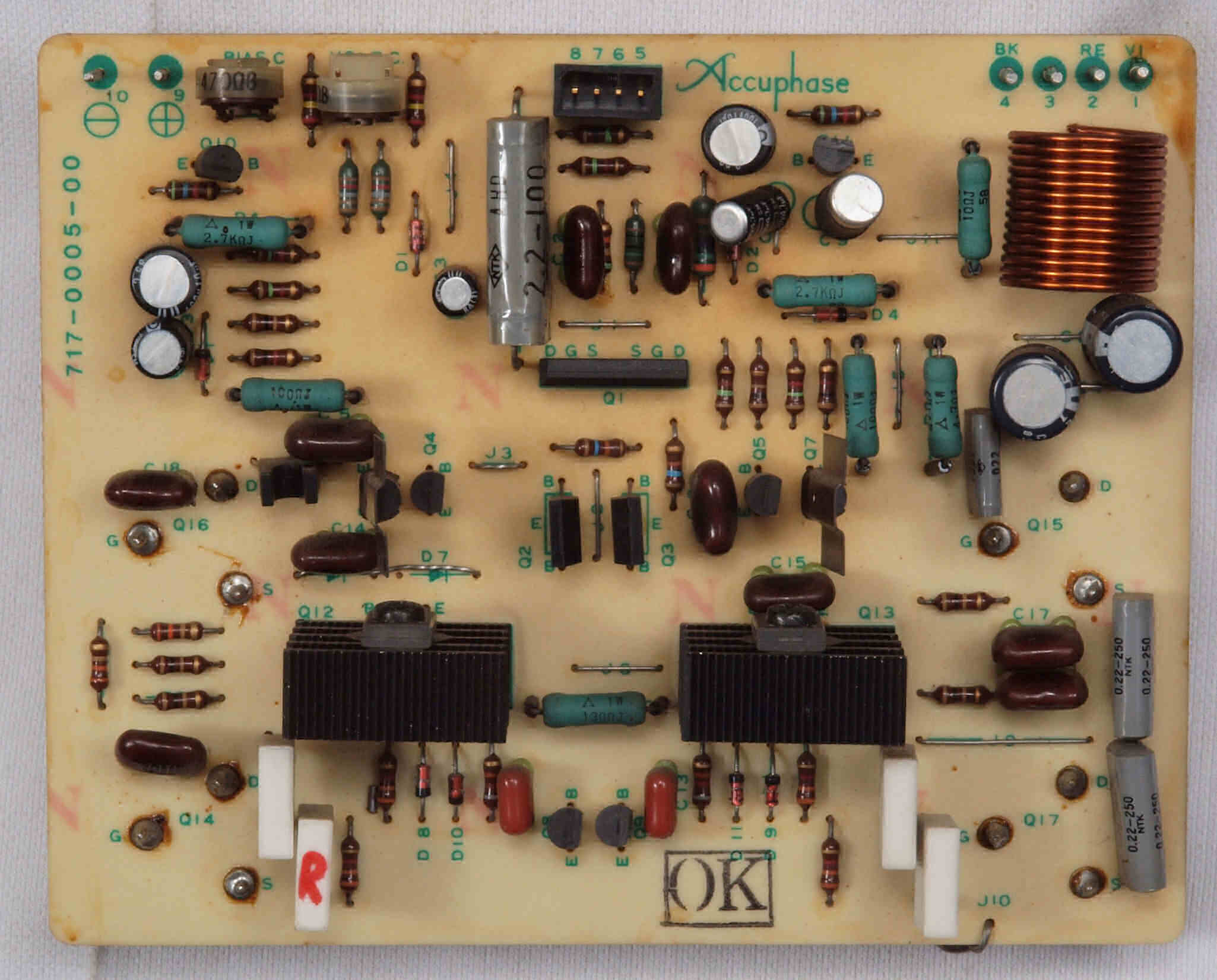 初段複合FET(電解効果トランジスター)4個、TR(トランジスター)24個、半固定VR2個、電解コンデンサー6個交換。