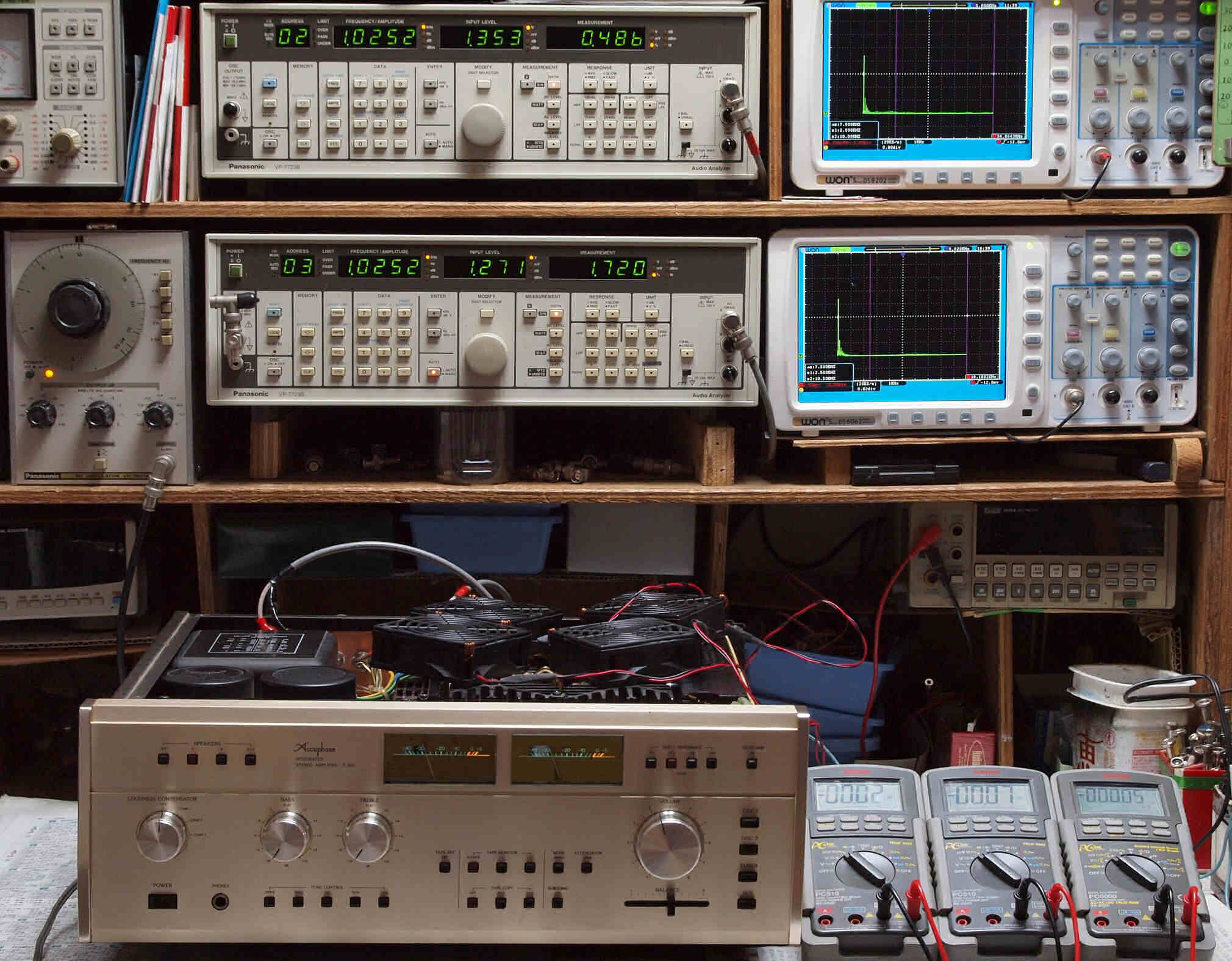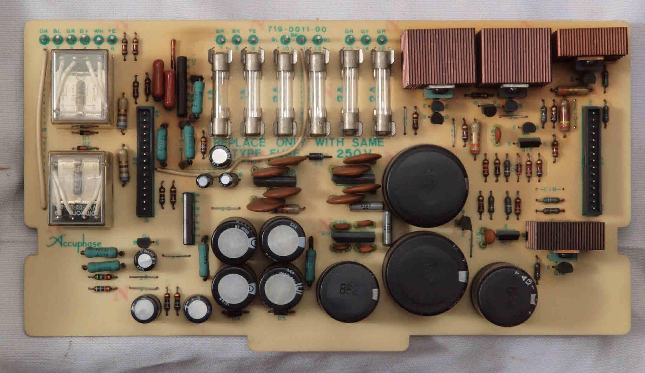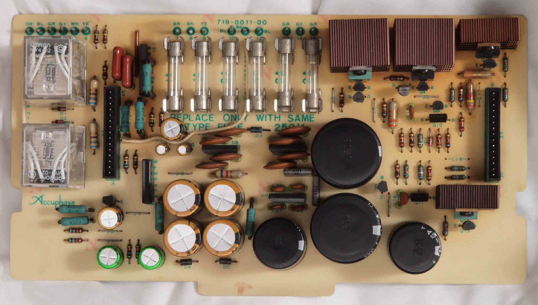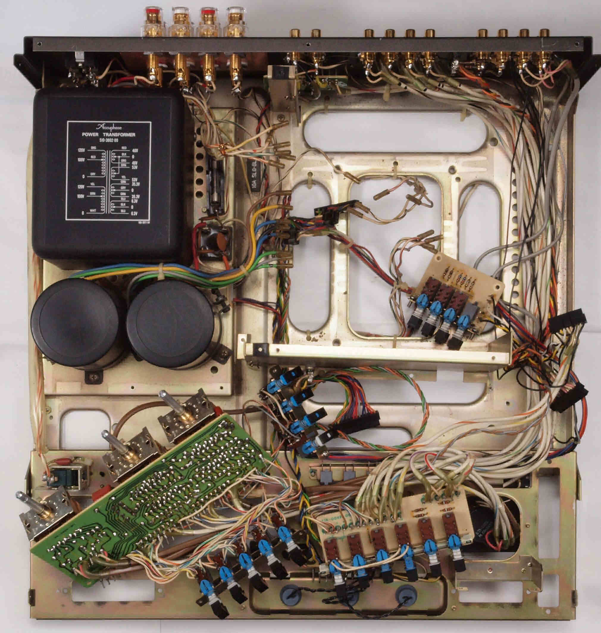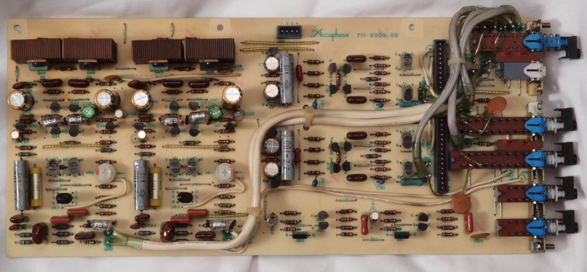 初段複合FET(電解効果トランジスター)4個、TR(トランジスター)24個、半固定VR2個、電解コンデンサー6個交換。