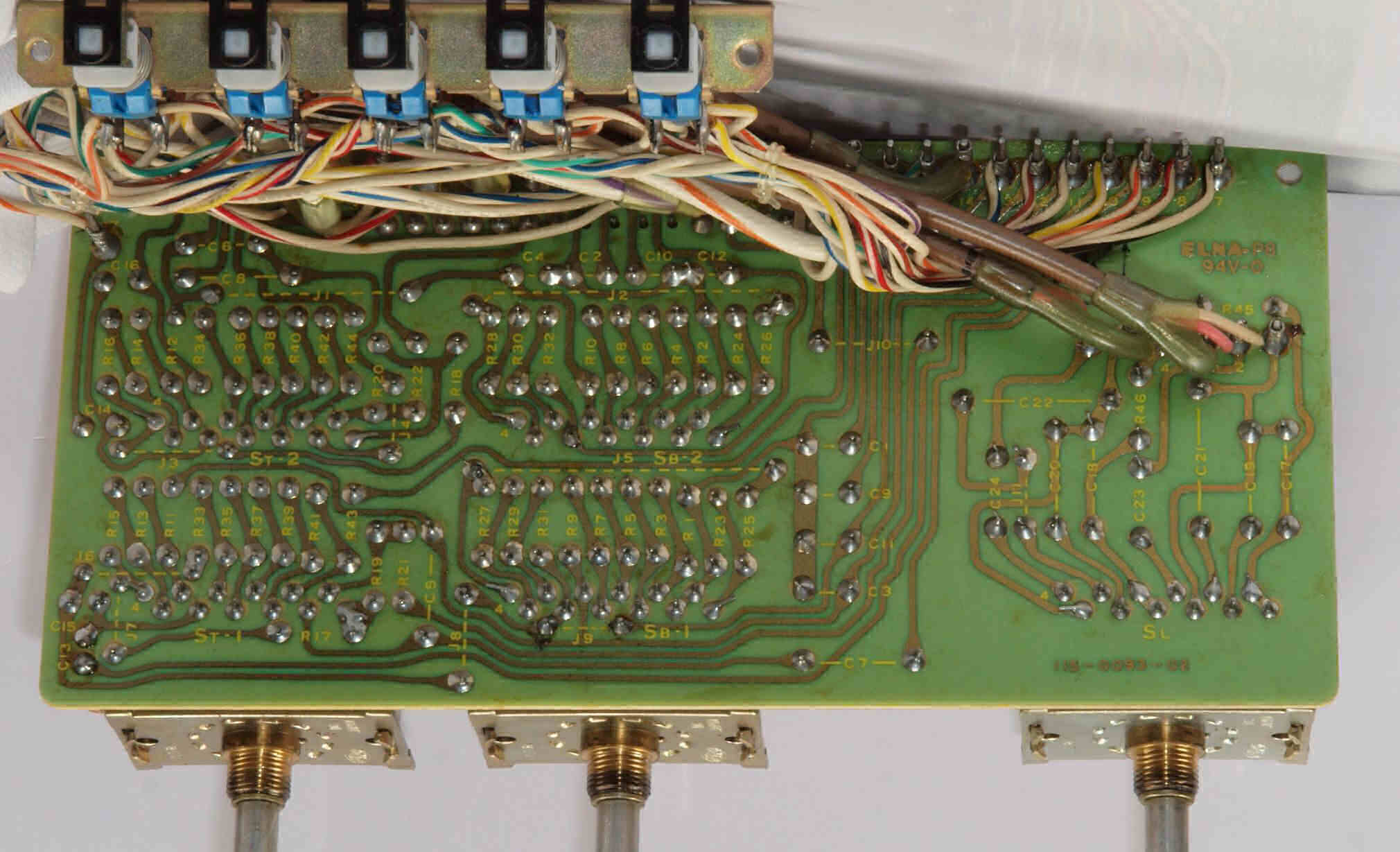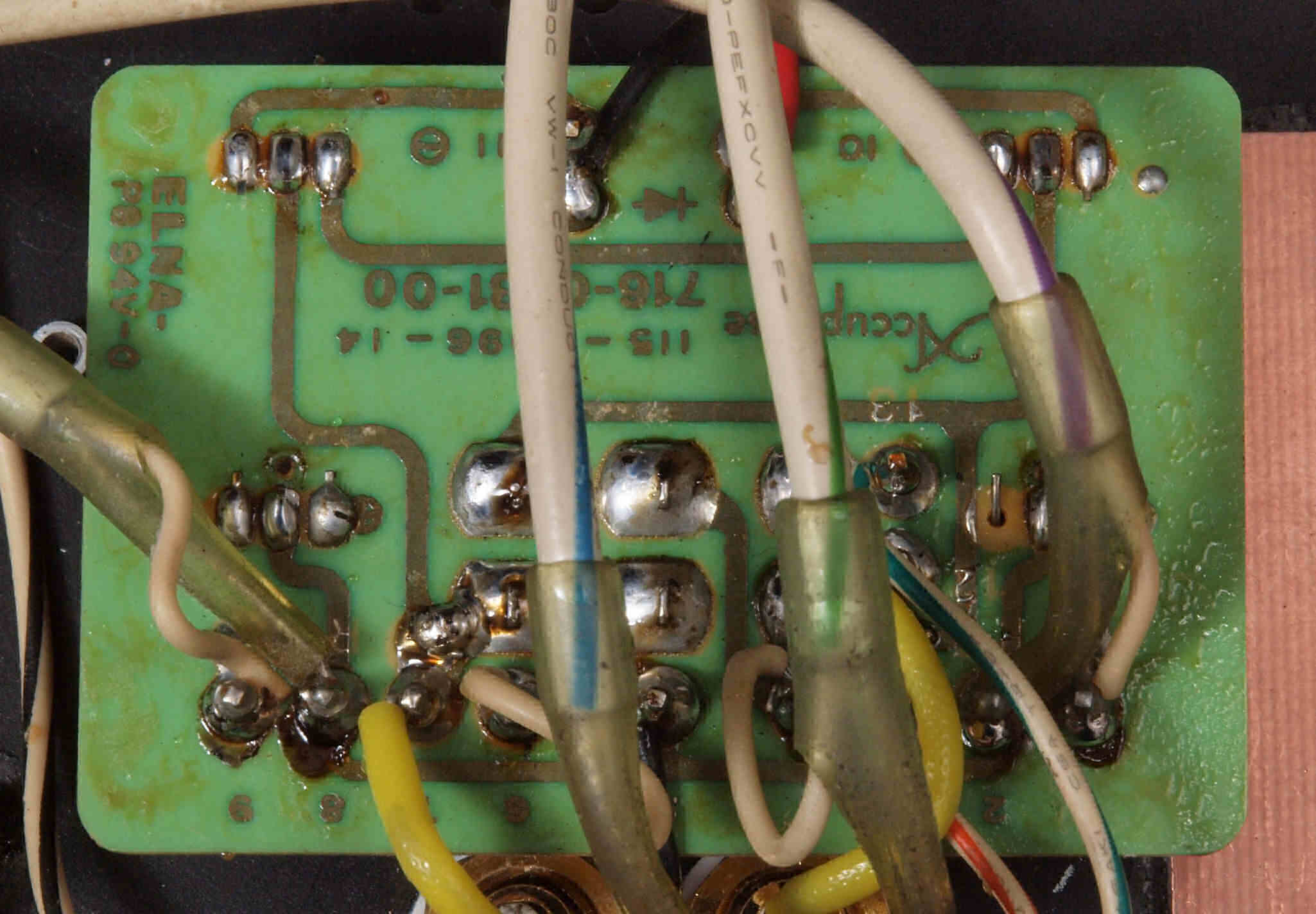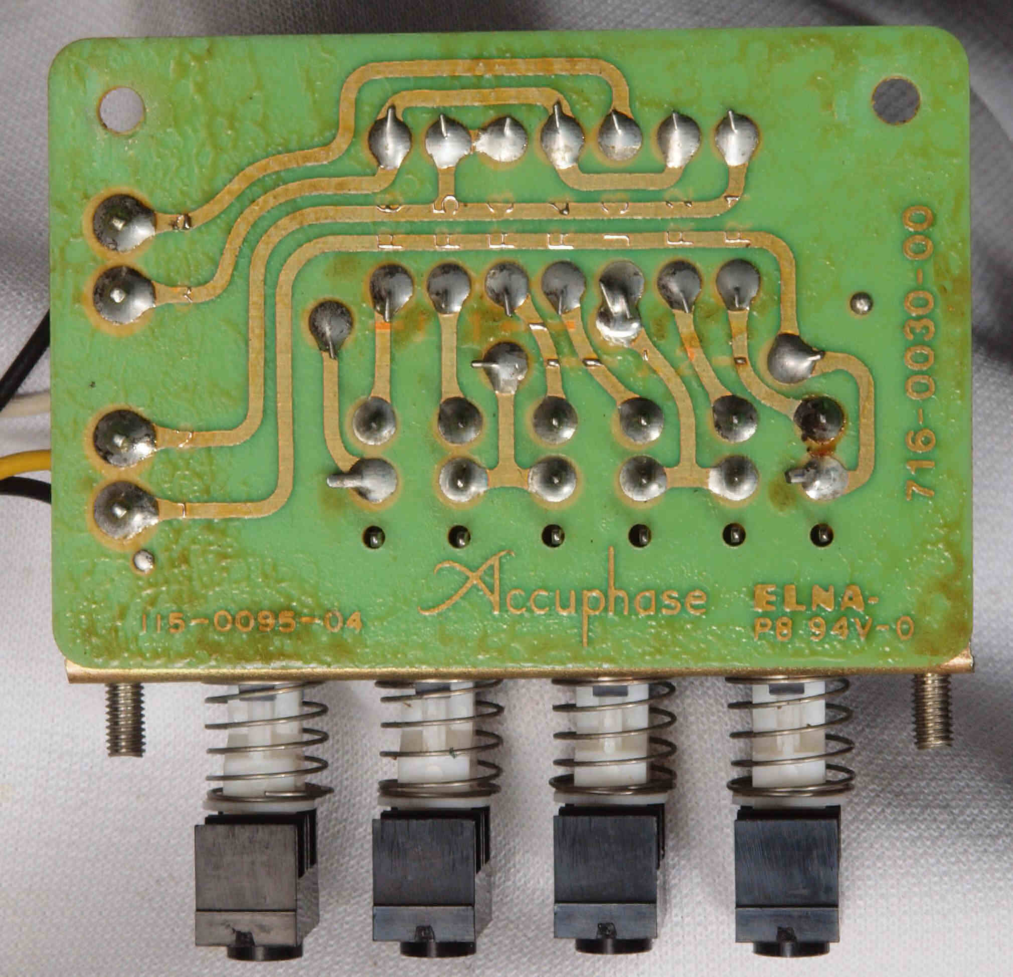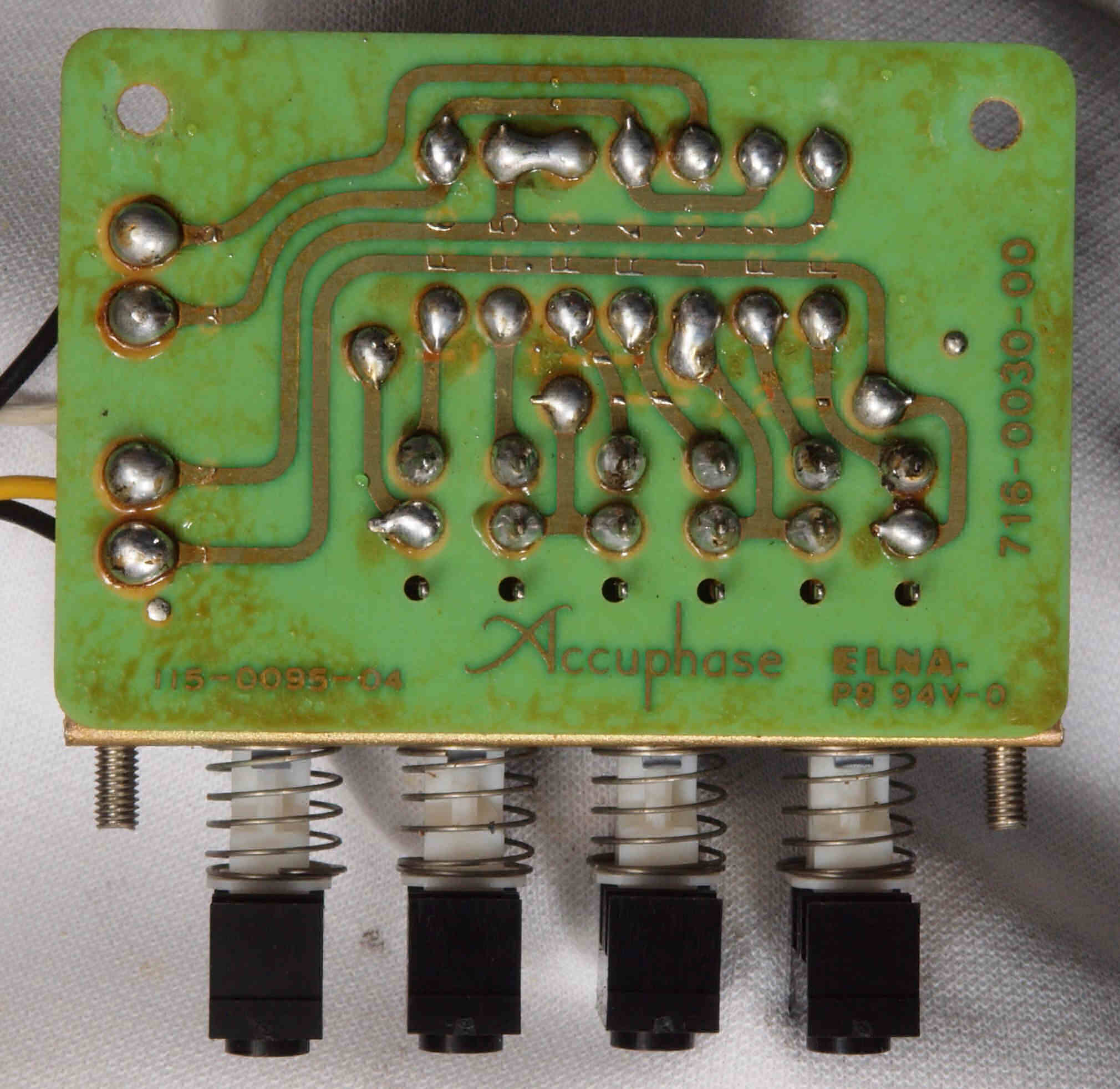 C75. 完成プリ出力/メインAMP入力切換SW基板裏。 洗浄し、コートを塗布後。