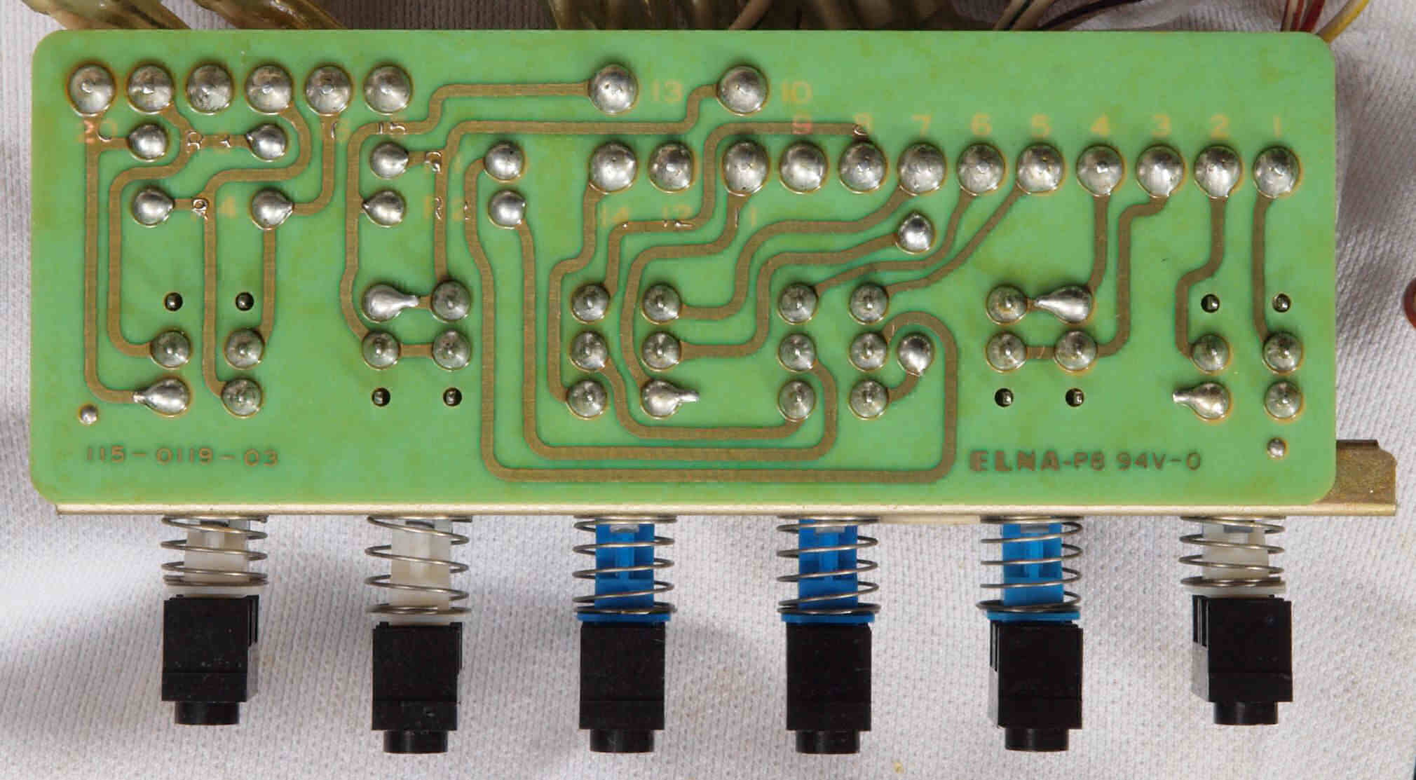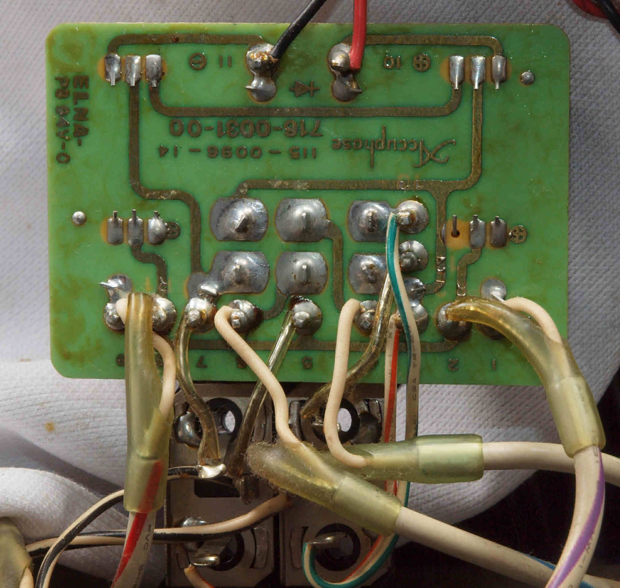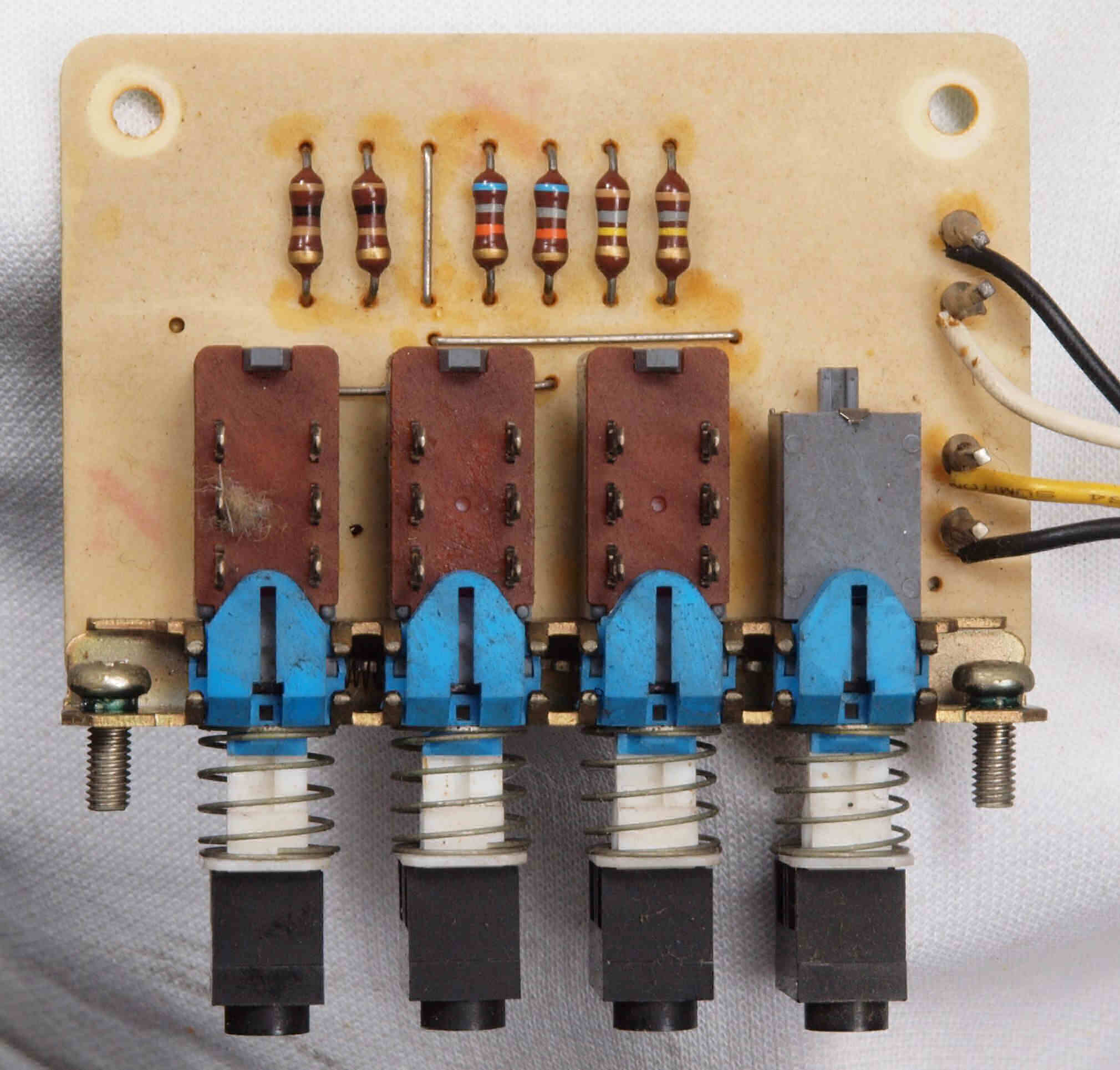 C75. 完成プリ出力/メインAMP入力切換SW基板裏。 洗浄し、コートを塗布後。