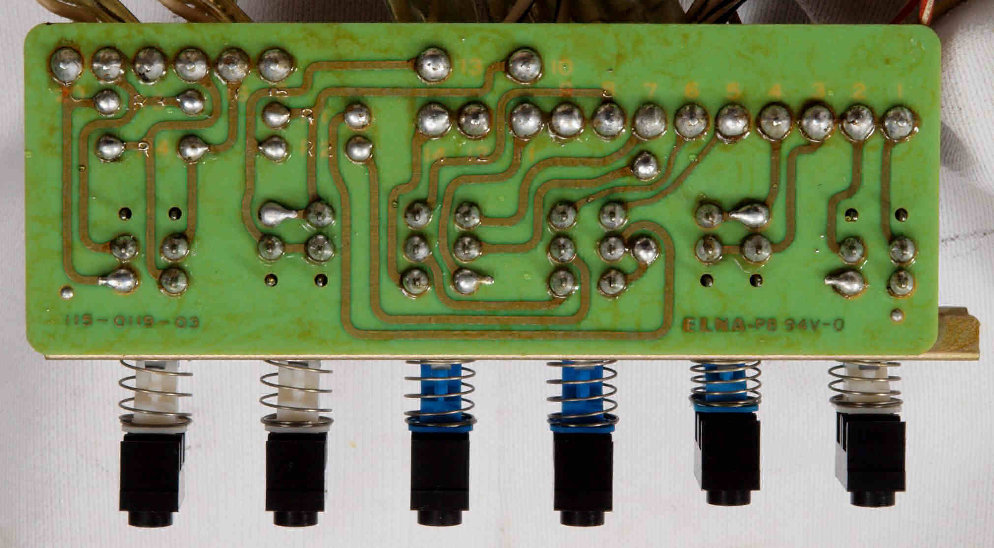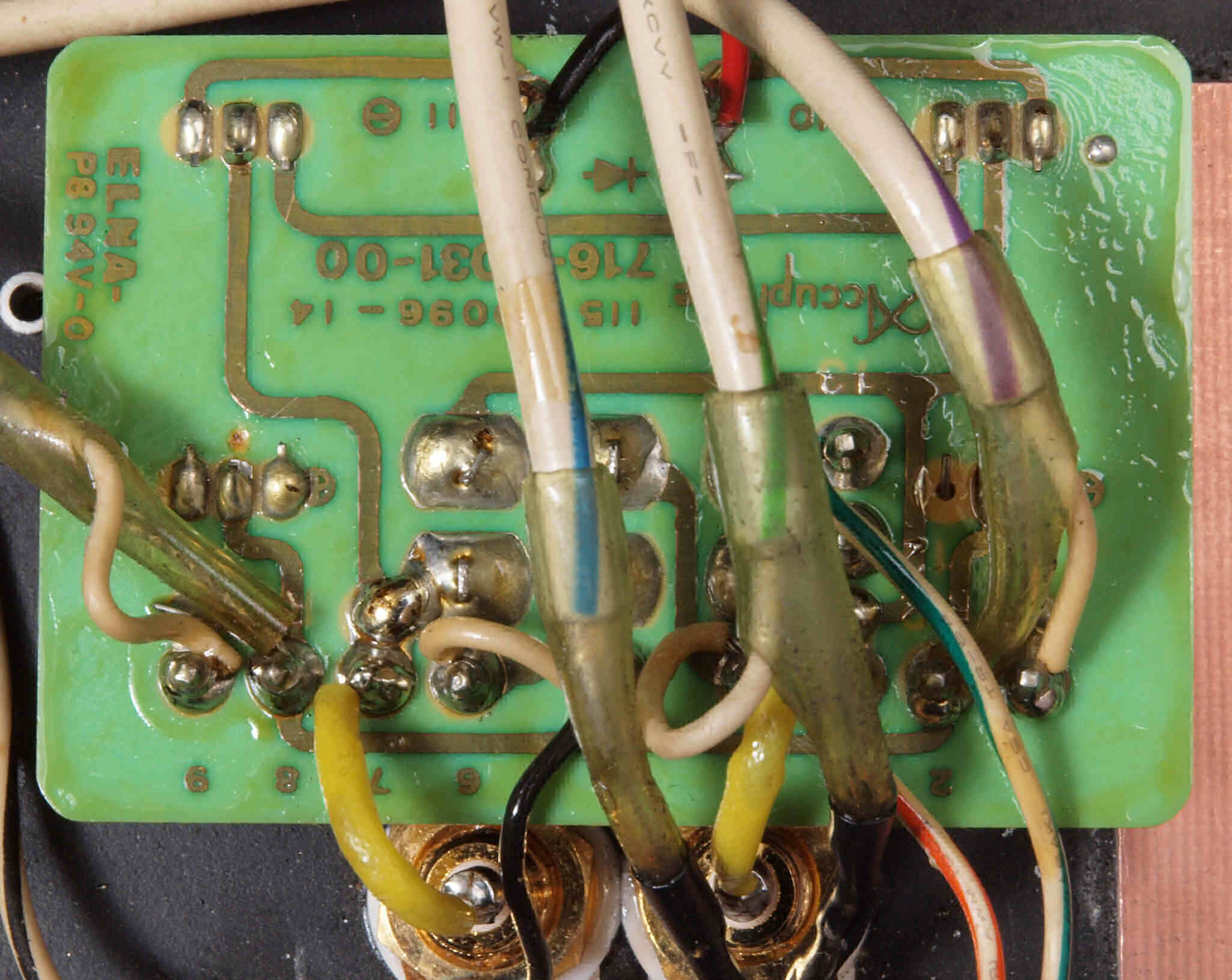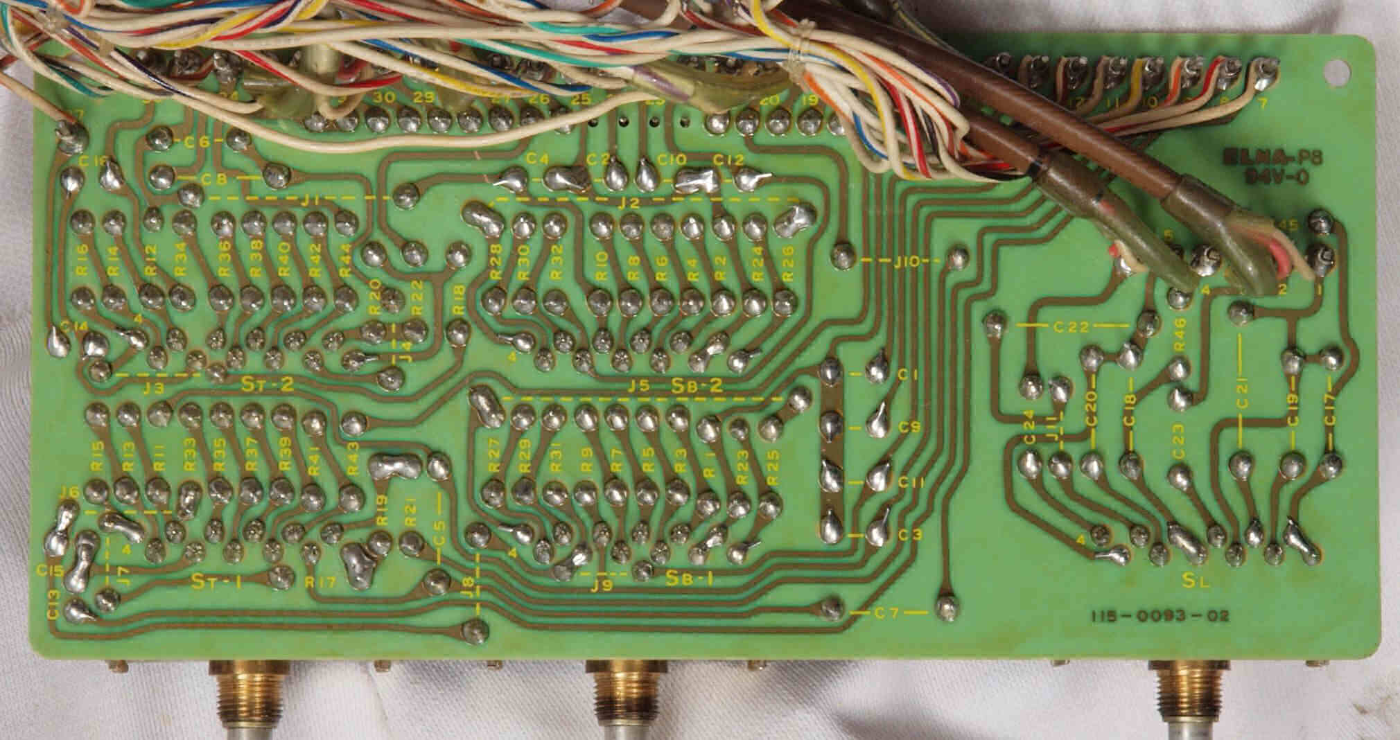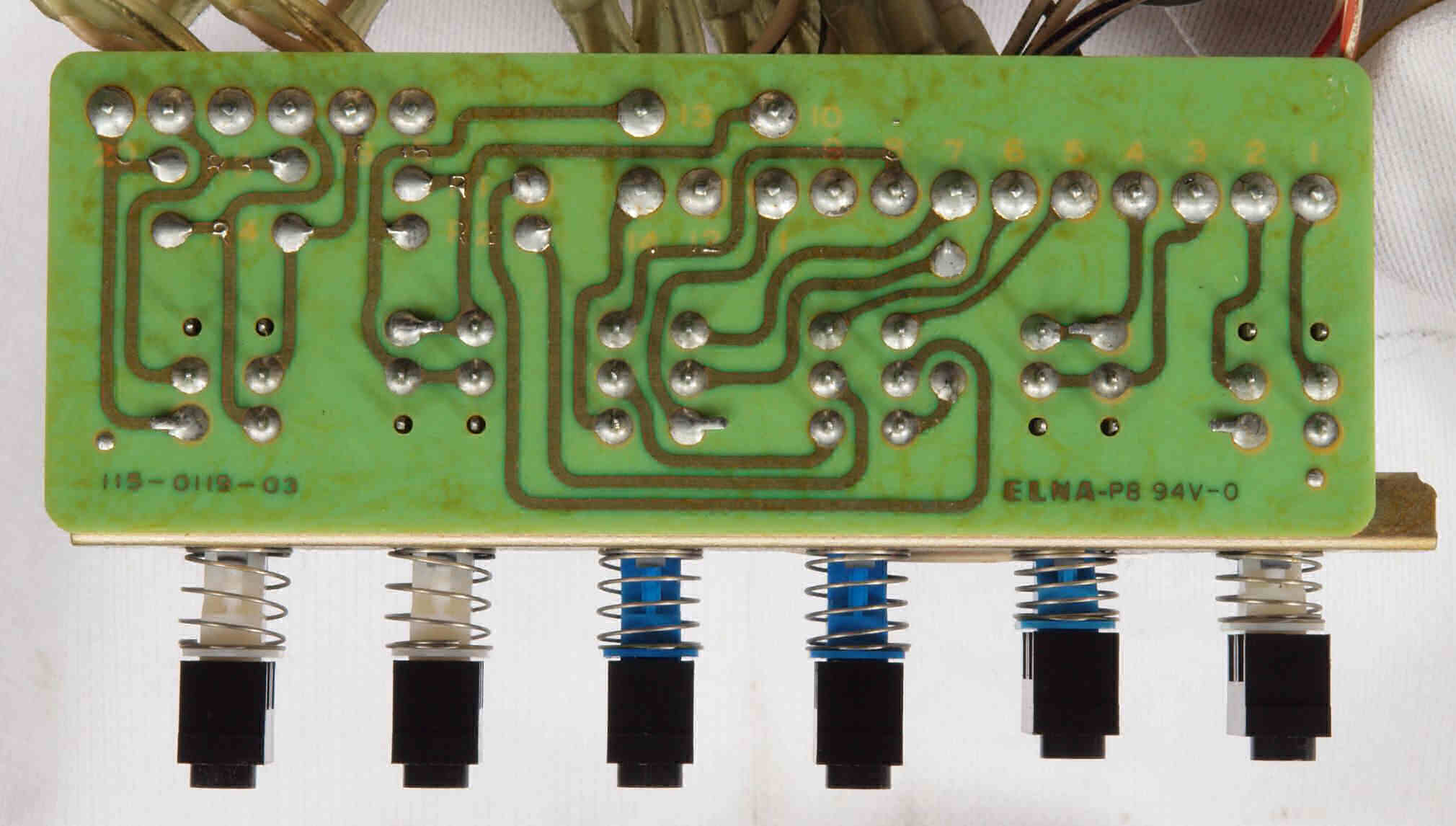 C75. 完成プリ出力/メインAMP入力切換SW基板裏。 洗浄し、コートを塗布後。
