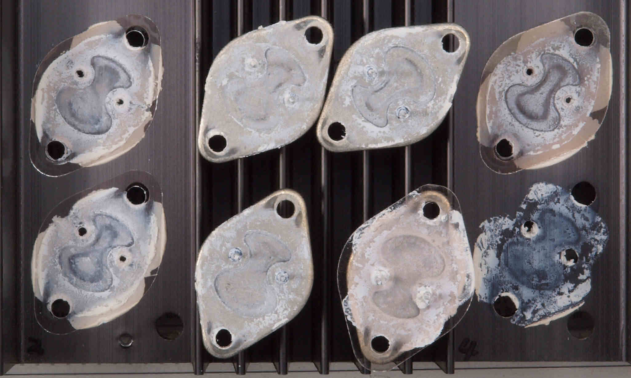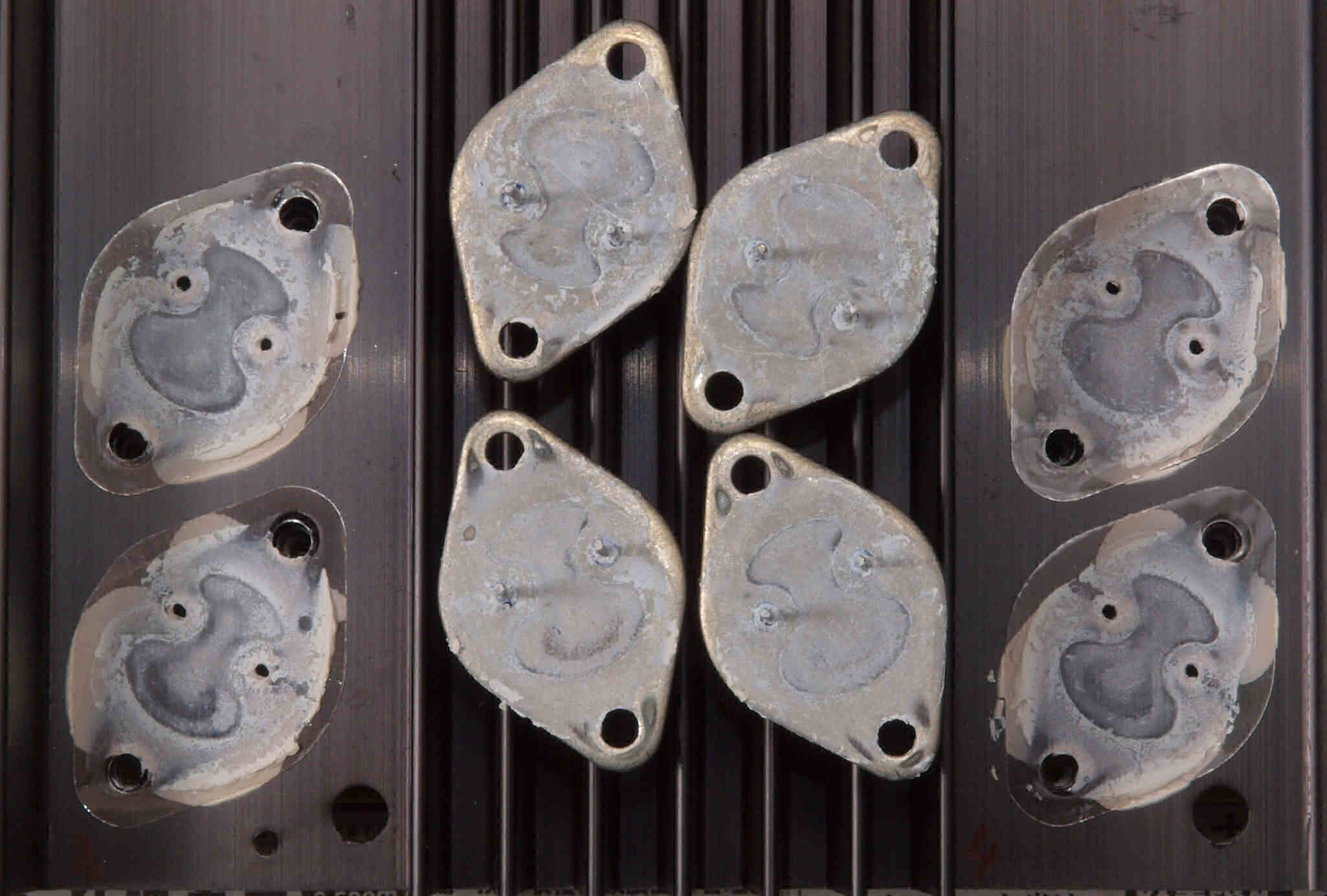 C8. 完成L側終段ブロック FET(電解効果トランジスター)。 放熱シリコングリスを十分に塗る。