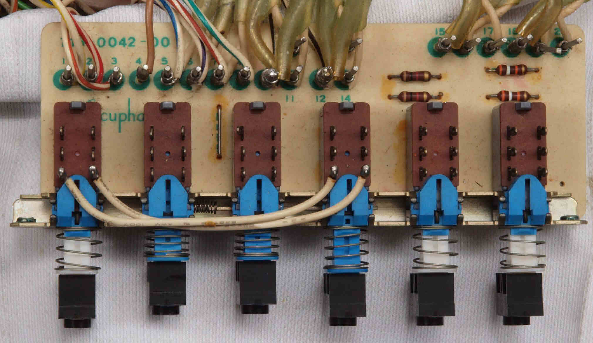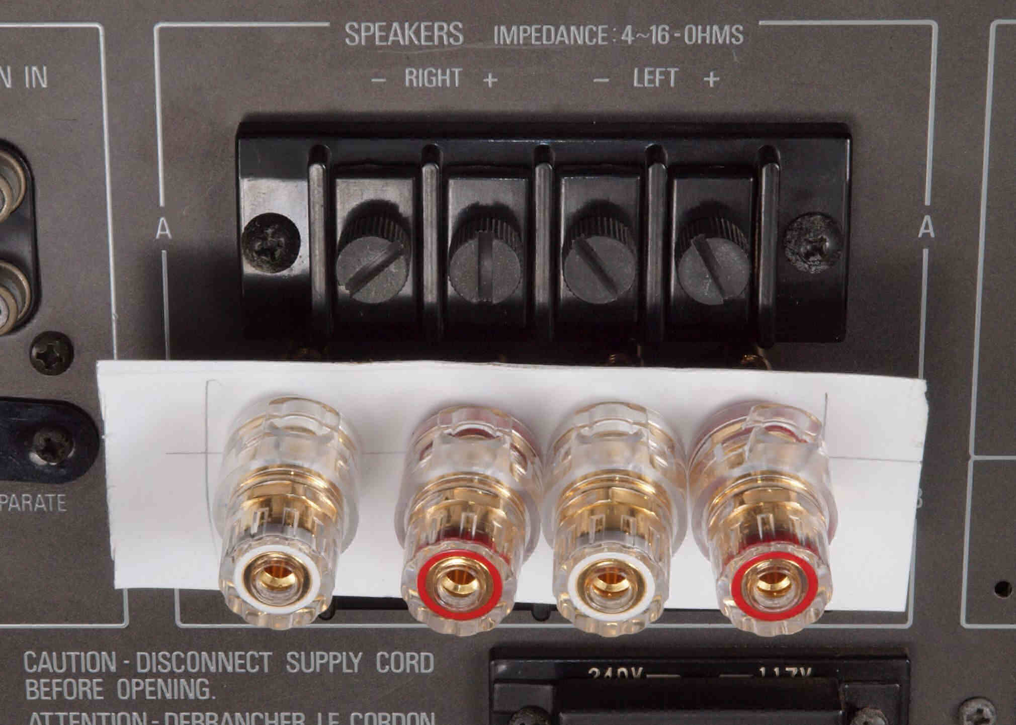 A42. 点検中 入出力RCA端子郡。 テフロン絶縁RCA端子に交換可能。ブロックごとに交換出来ます。