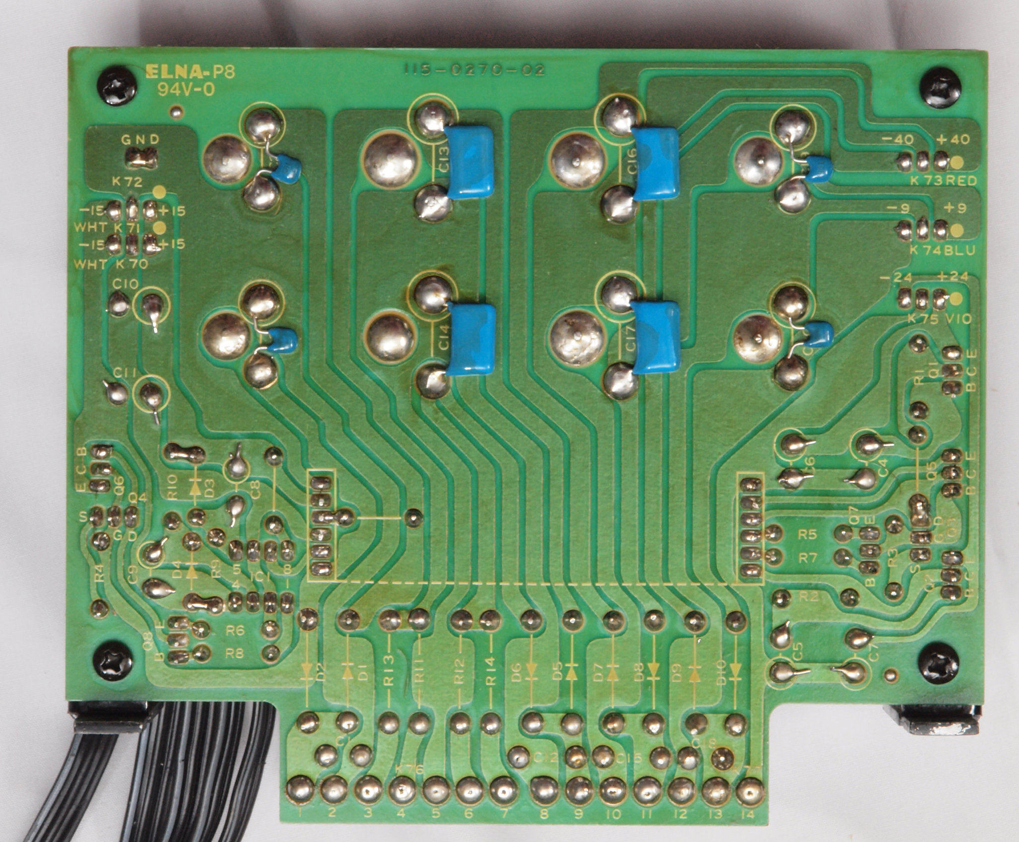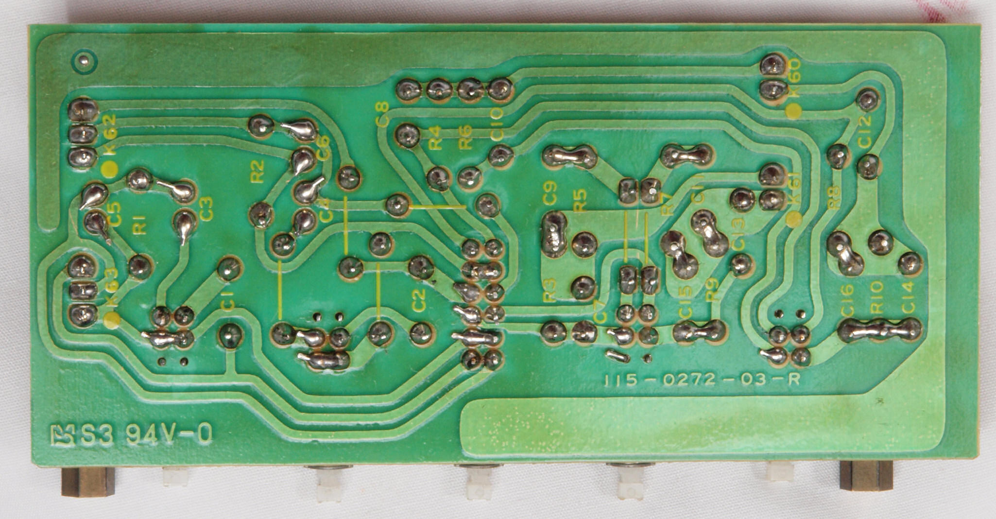 | C45. 完成トーン・コントロール基板裏。 洗浄し、コートを塗布後。 | ||||||||||||||||||||||||||||||||||||||||||||||||||||||||||||||||||||||||||||||||||||||