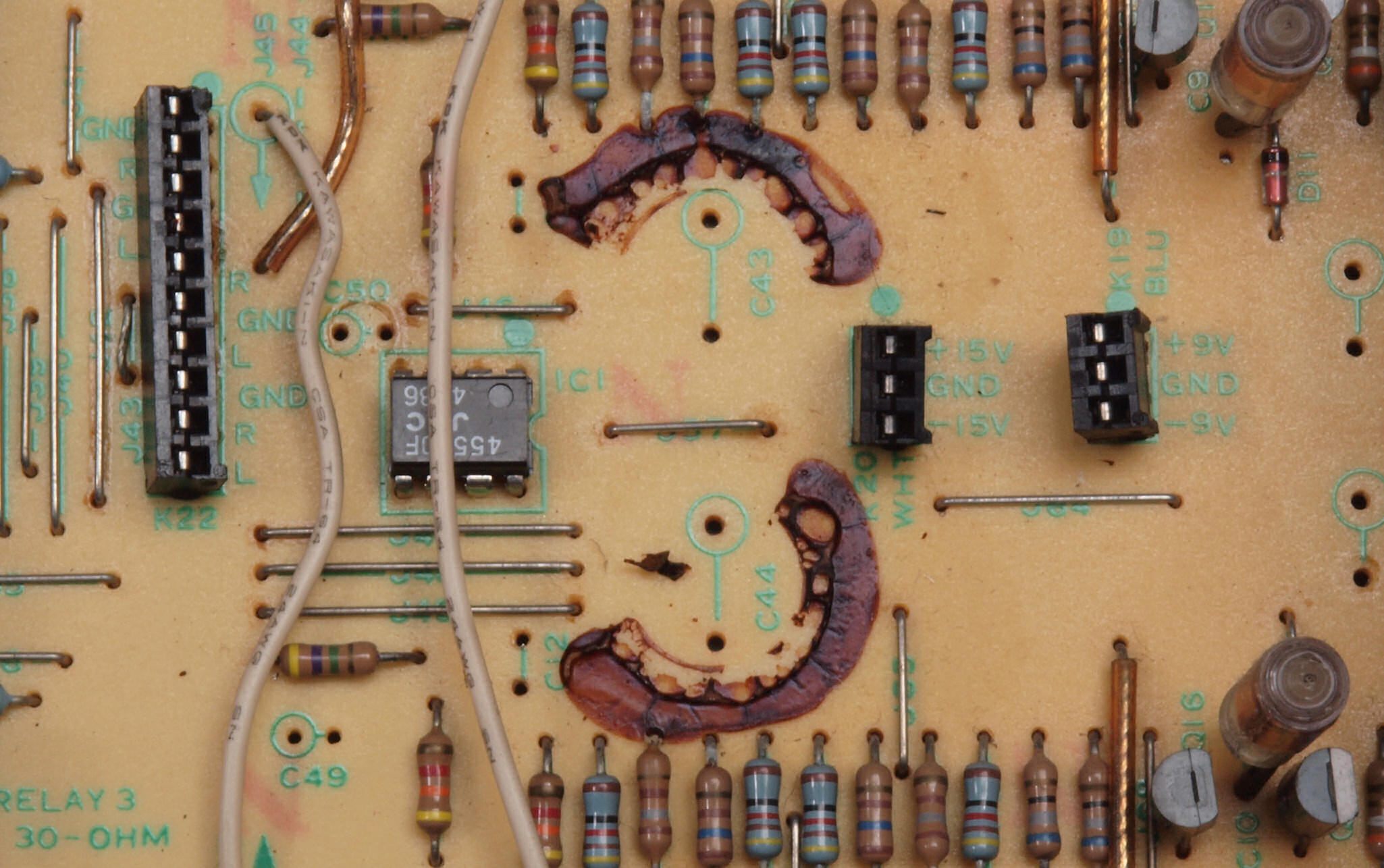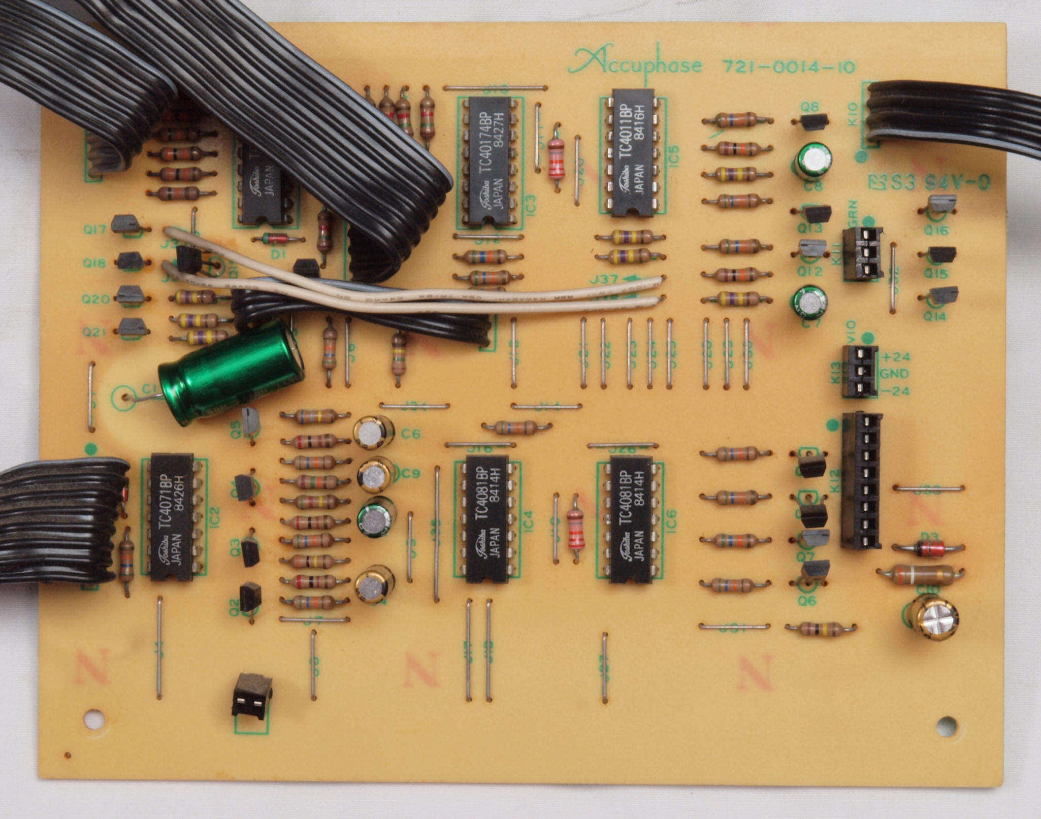 | CC13. 修理後 ヘッドアンプ/イコライザーアンプ基板。 トルエン溶媒の接着剤を取り去り、コートを塗布後。 | ||||||||||||||||||||||||||||||||||||||||||||||||||||||||||||||||||||||||||||||||||||||