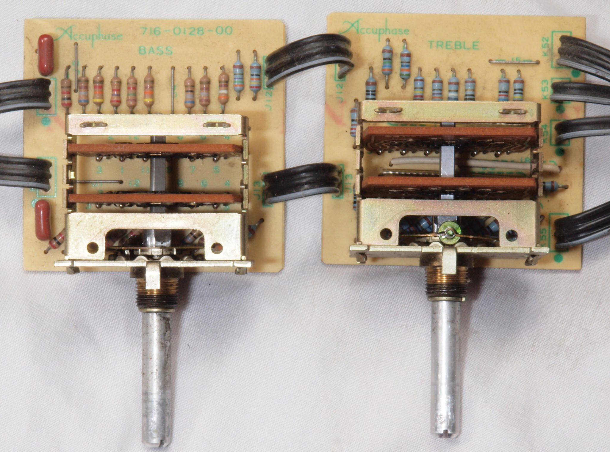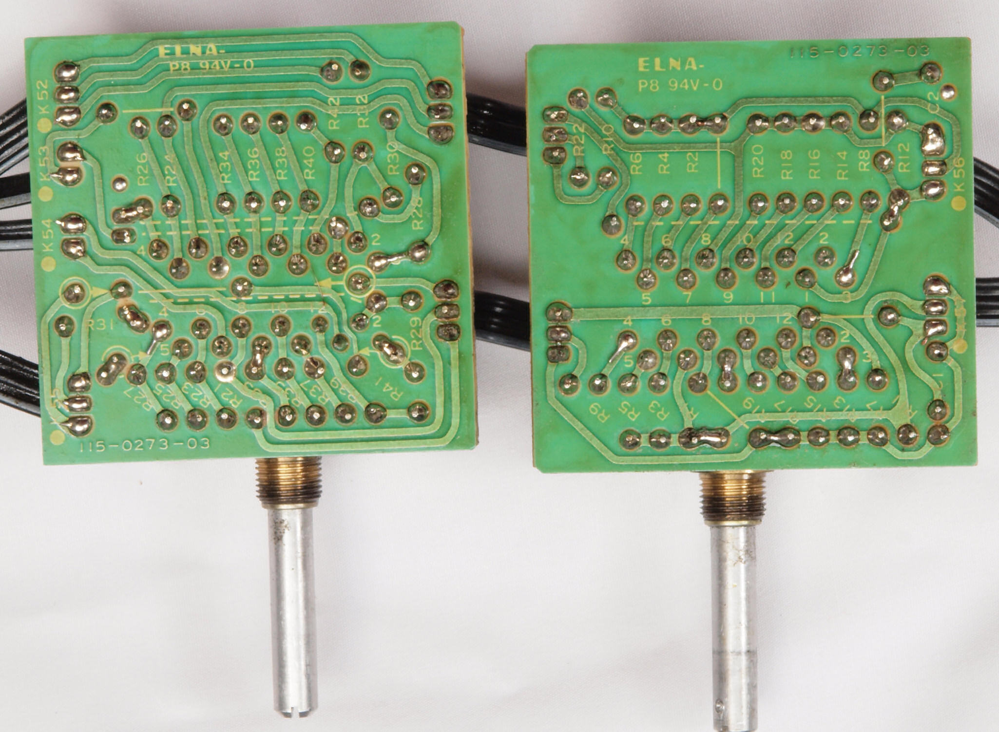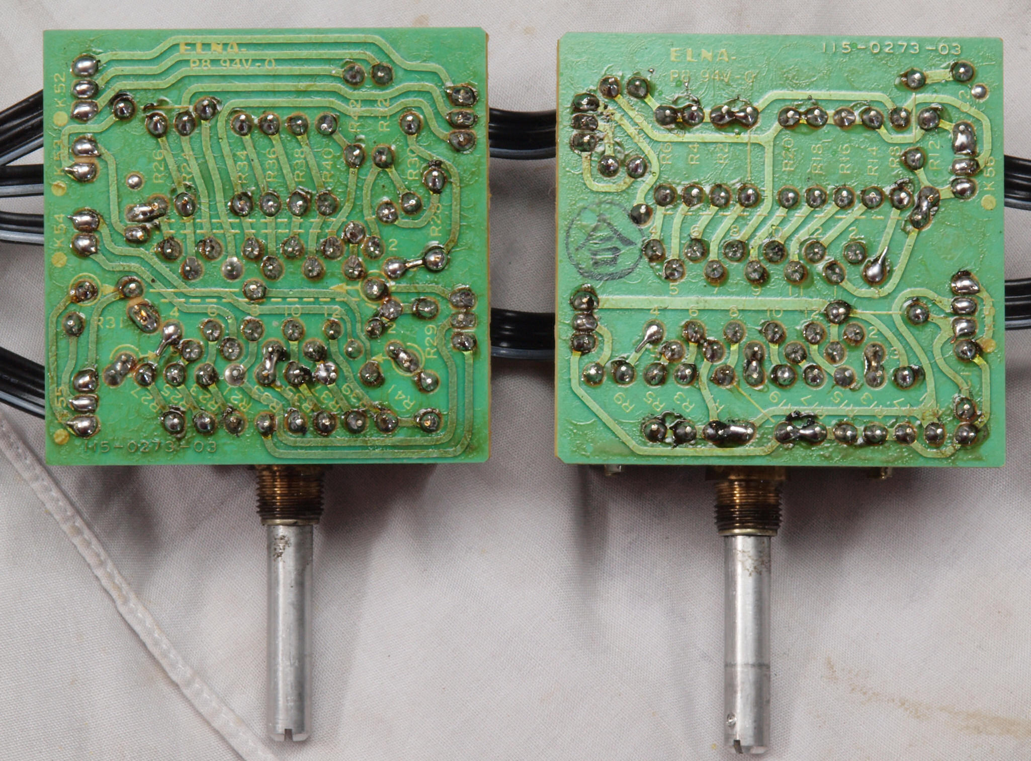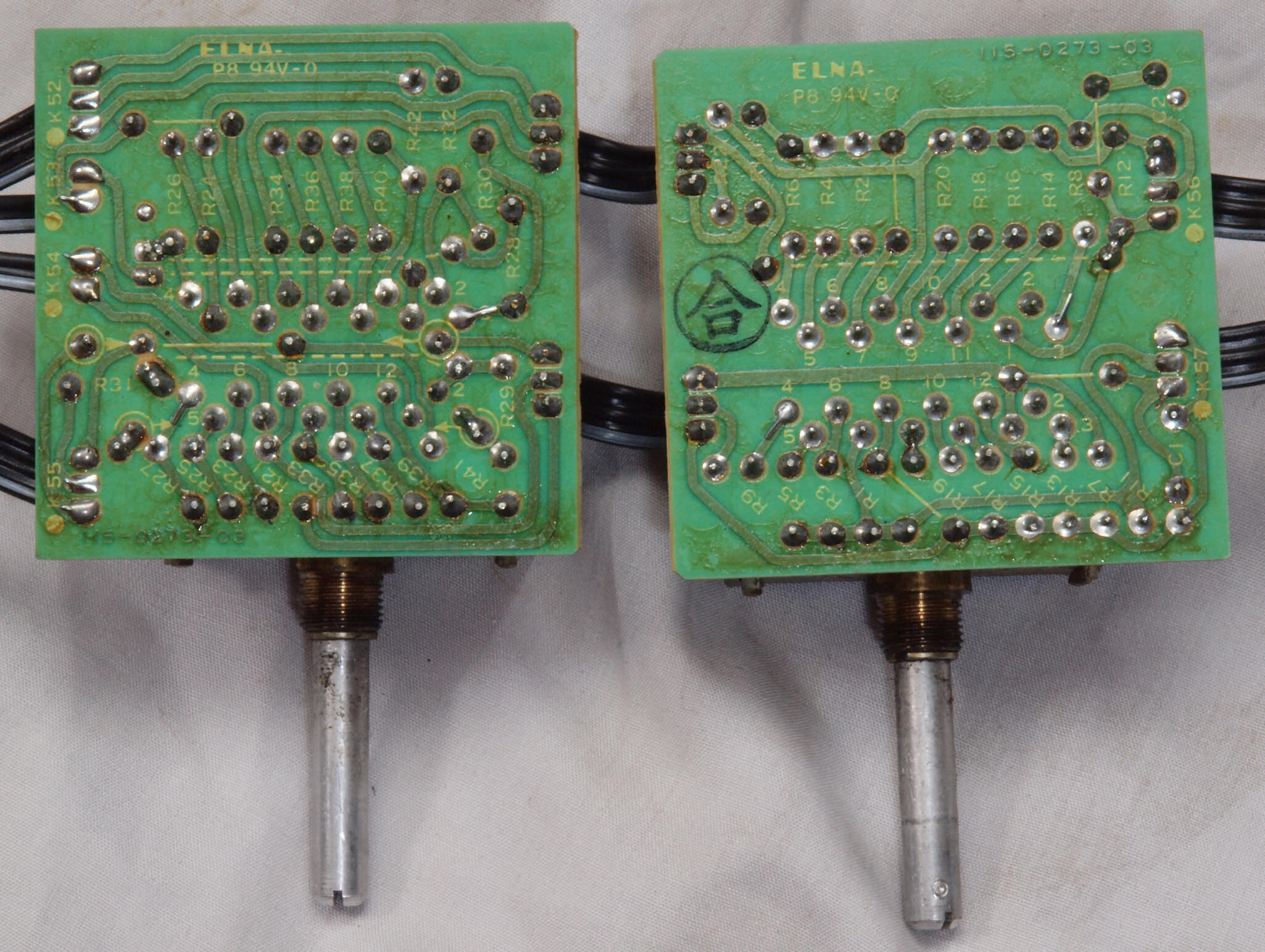 | C51. 修理前 トーン・コントロールSW基板。 左=Bass、右=Treble。 | ||||||||||||||||||||||||||||||||||||||||||||||||||||||||||||||||||||||||||||||||||||||