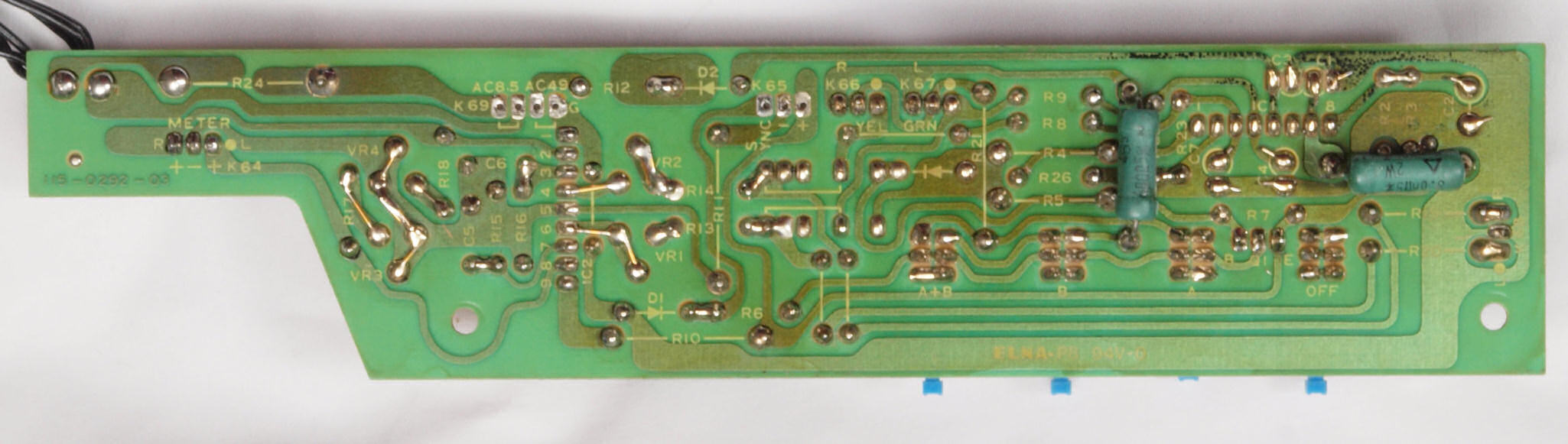 | CF3. 修理前 スピーカー選択SW/VUアンプ基板裏。 | ||||||||||||||||||||||||||||||||||||||||||||||||||||||||||||||||||||||||||||||||||||||