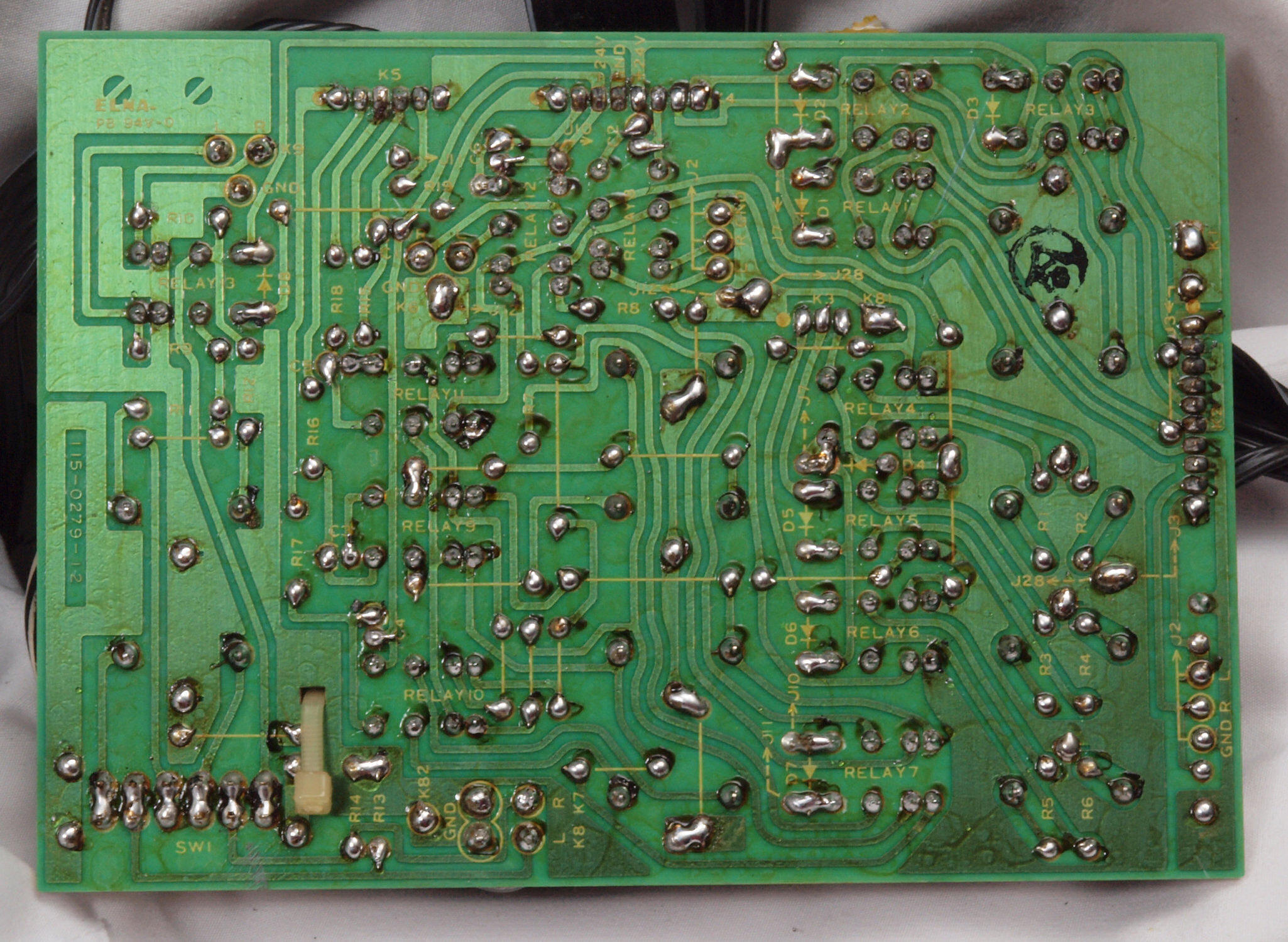 | CD1. 修理前 ヘッドアンプSW基板。 | ||||||||||||||||||||||||||||||||||||||||||||||||||||||||||||||||||||||||||||||||||||||
