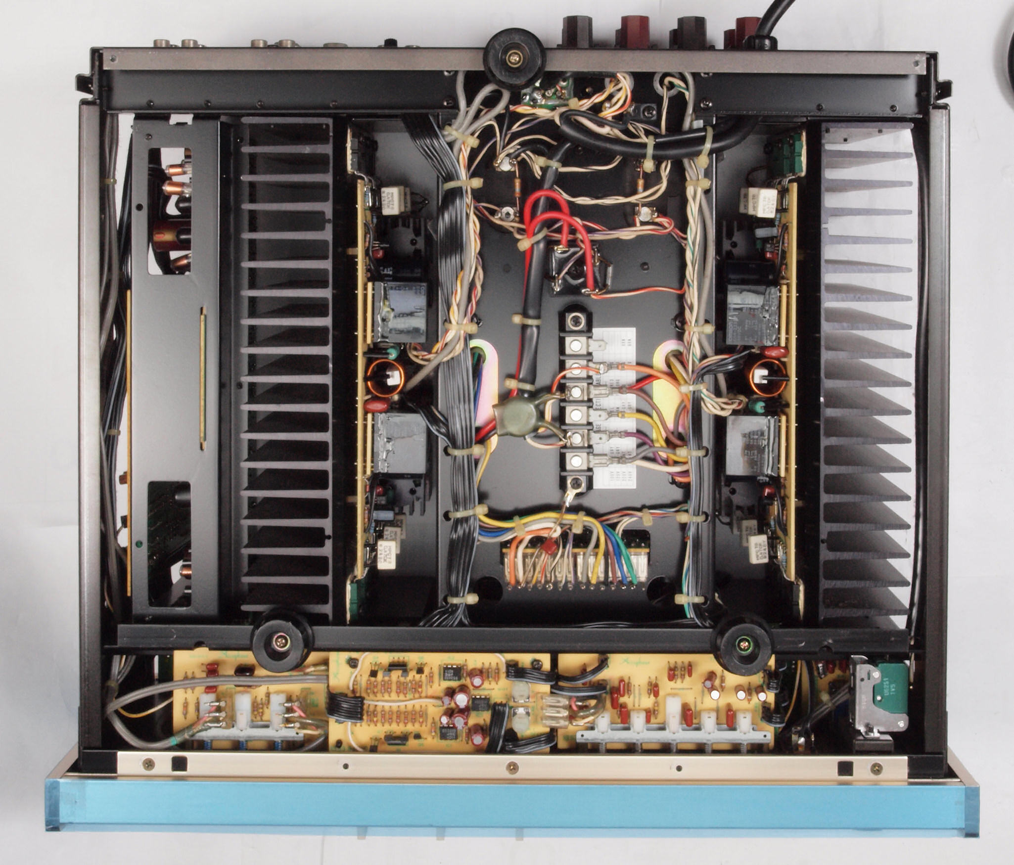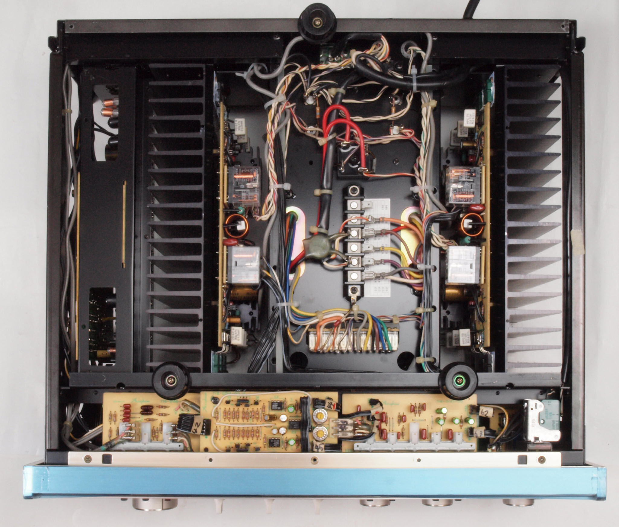 | C2. 完成右側終段ブロック。電解コンデンサー11個、リレー2個、初段複合FET(電界効果トランジスター)1個、OP−AMP1個、テフロン絶縁シート6枚交換。 | ||||||||||||||||||||||||||||||||||||||||||||||||||||||||||||||||||||||||||||||||||||||