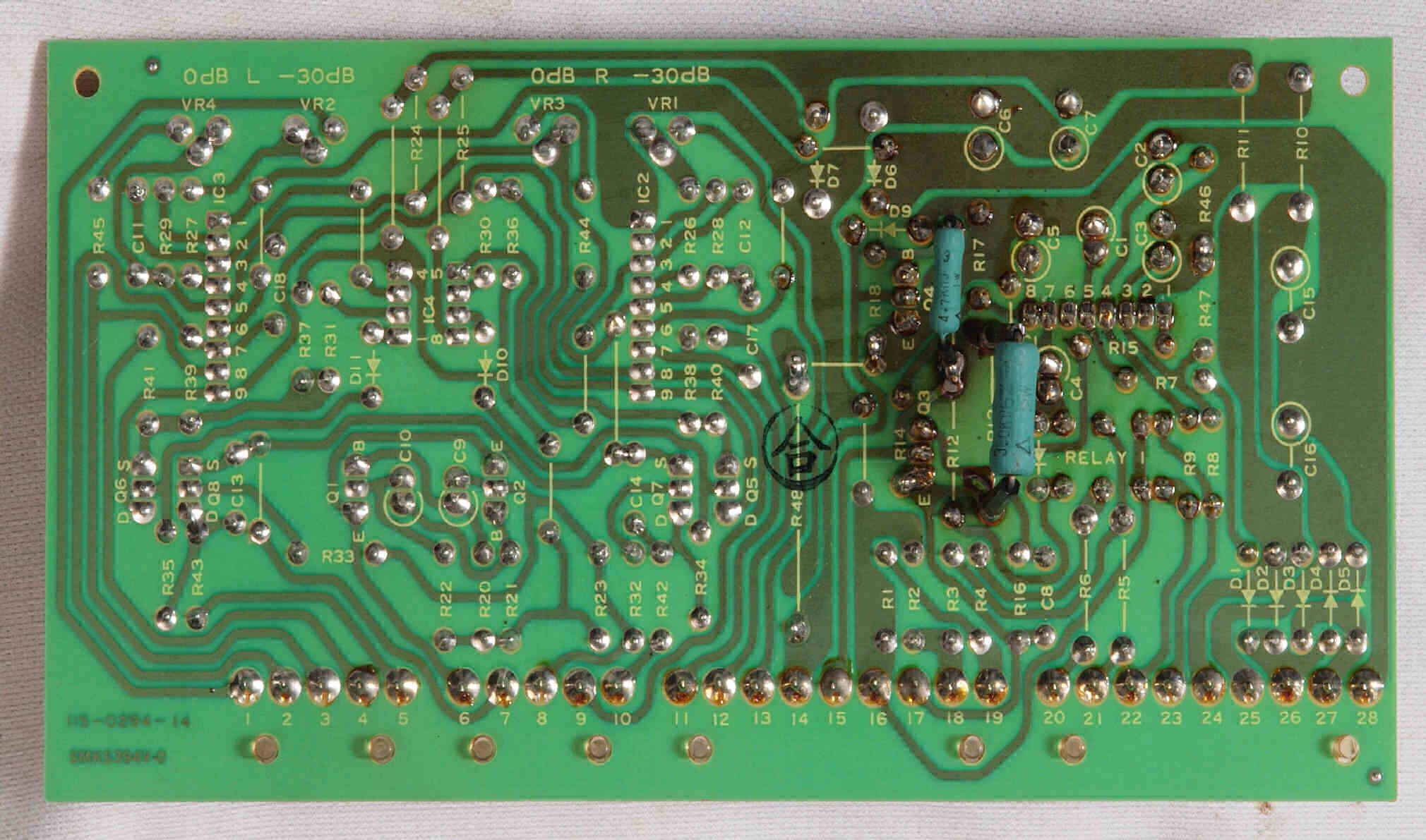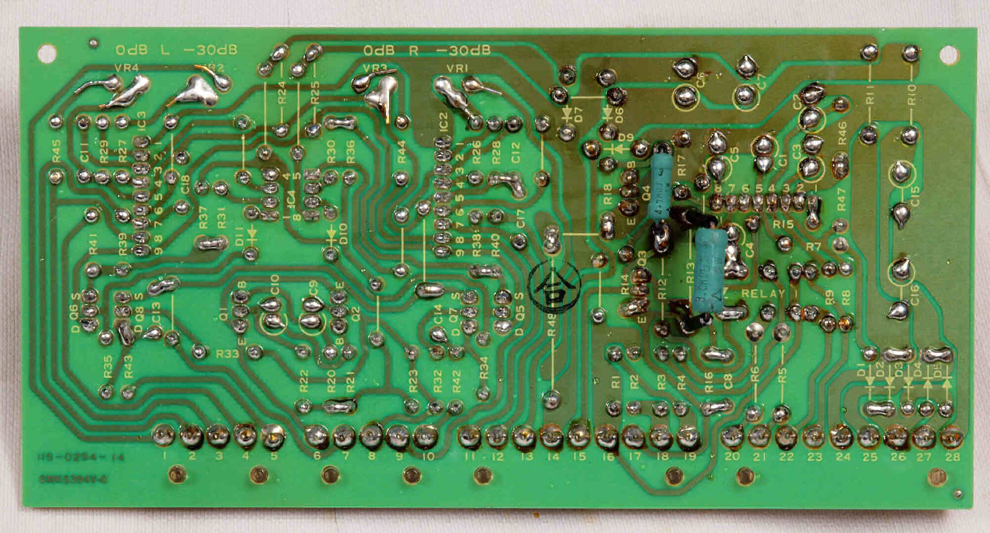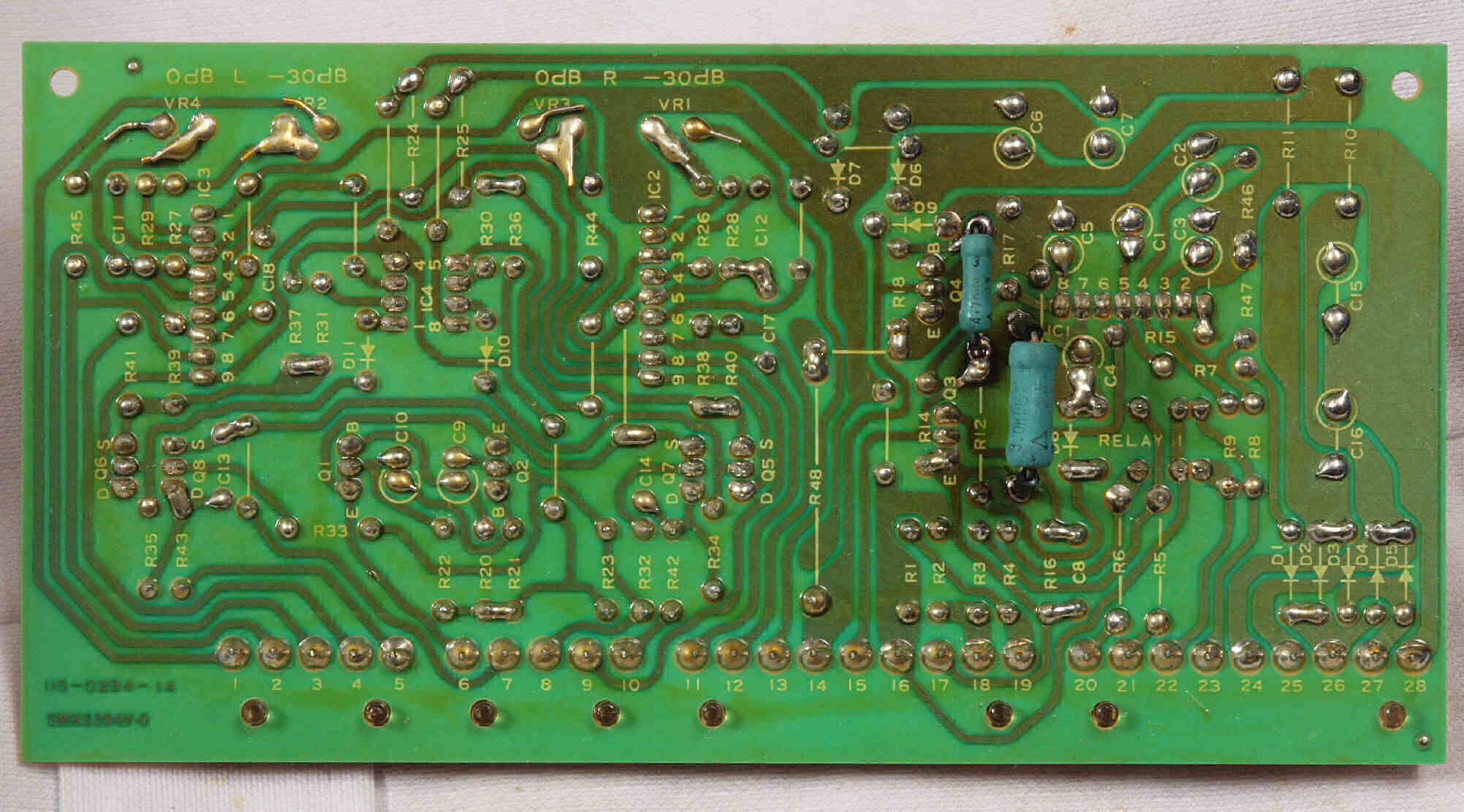 | C32. 修理後 VU基板。 半固定VR4個、リレー1個、電解コンデンサー11個、フイルムコンデンサー2個交換。 | ||||||||||||||||||||||||||||||||||||||||||