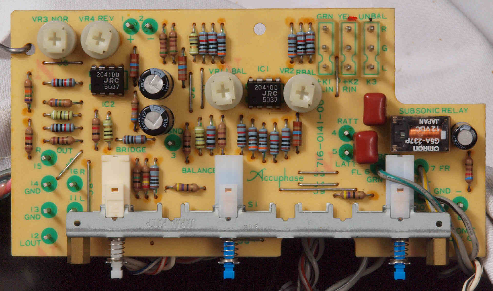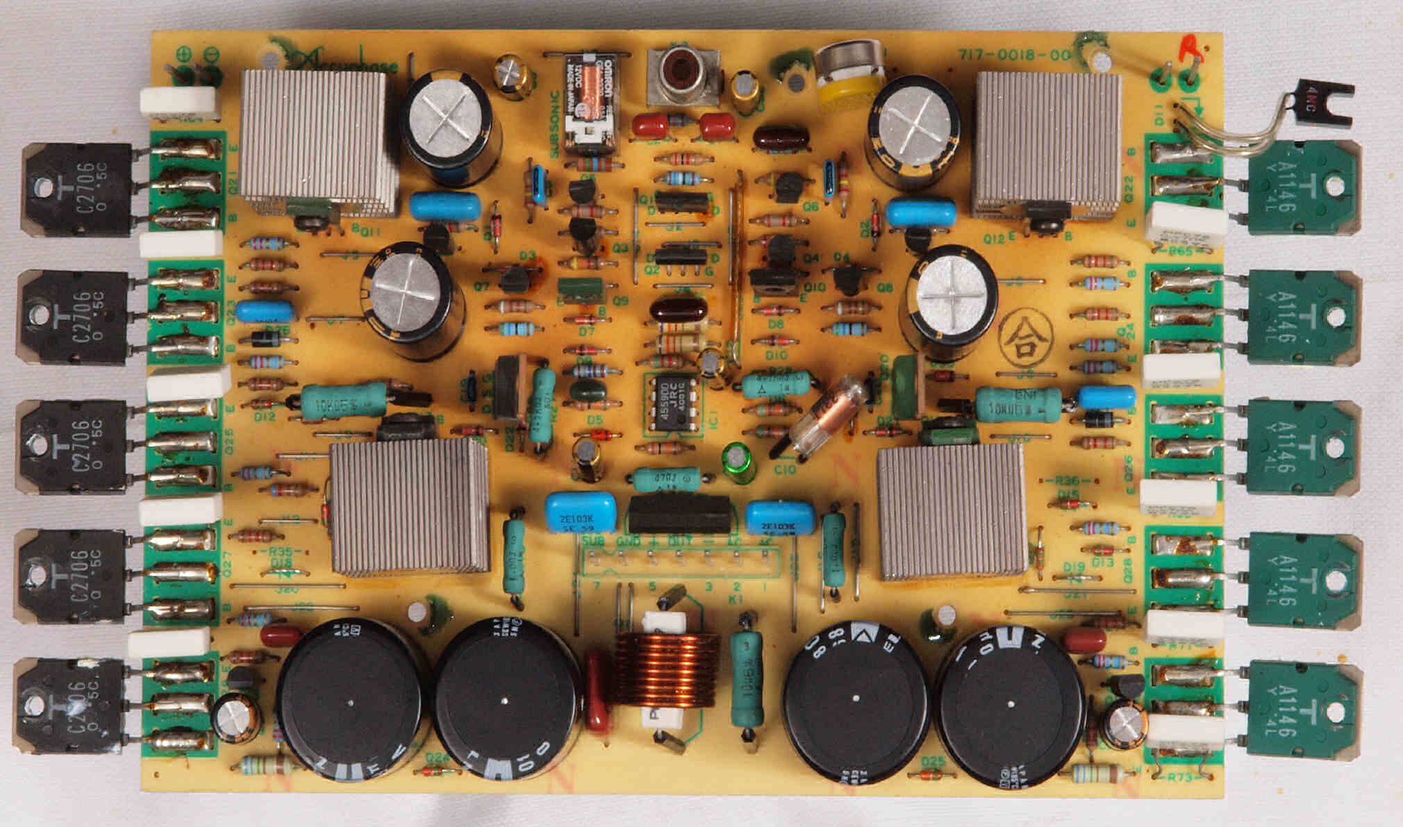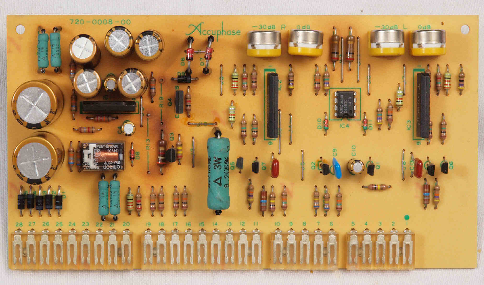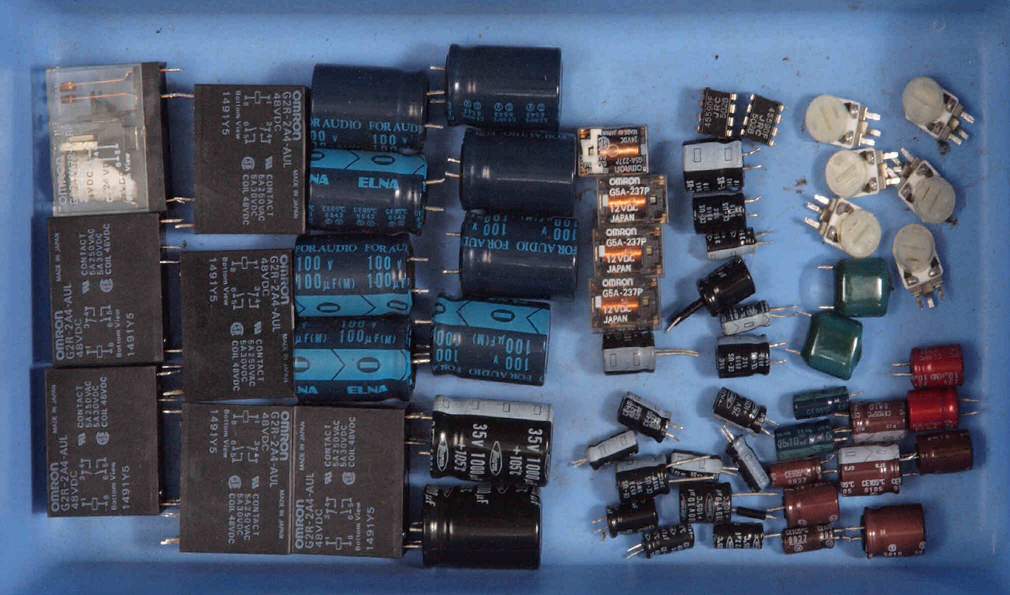 | C62. 修理後 L側SP接続基板。 OP-AMP1個、リレー1個、電解コンデンサー15個交換。 | ||||||||||||||||||||||||||||||||||||||||||