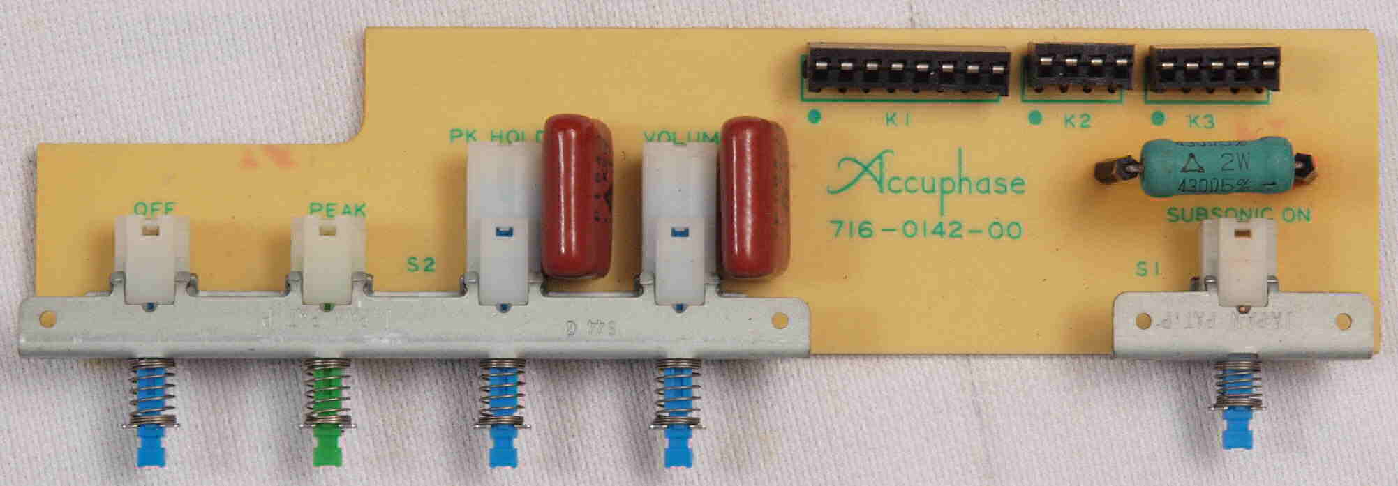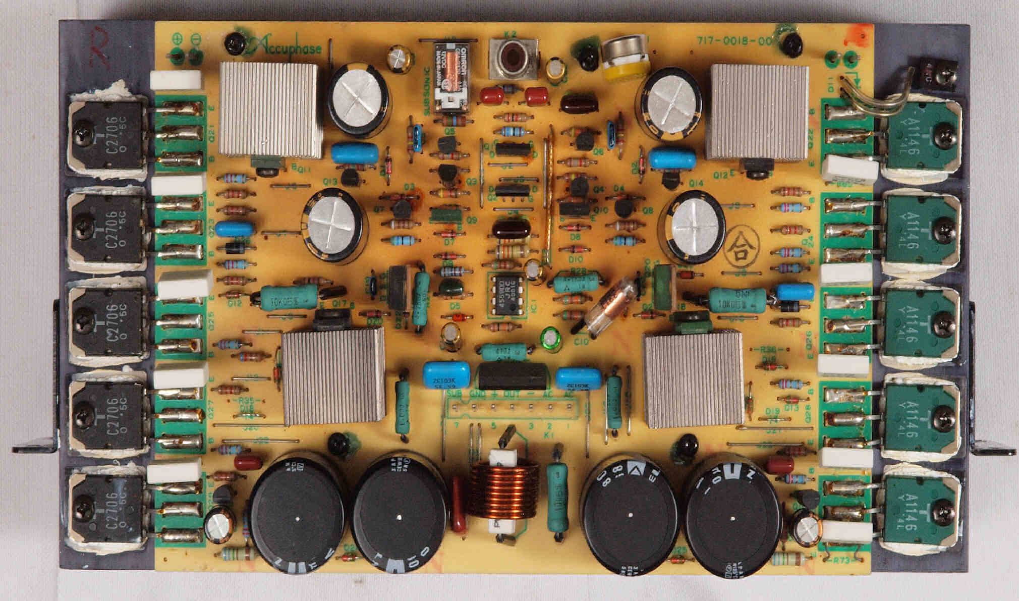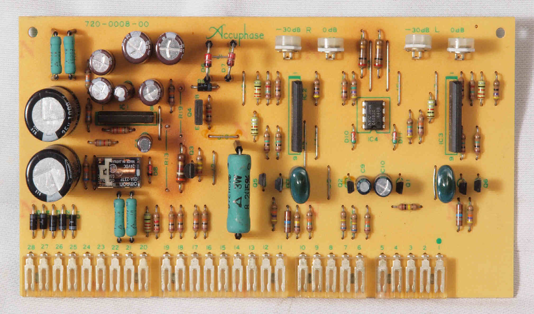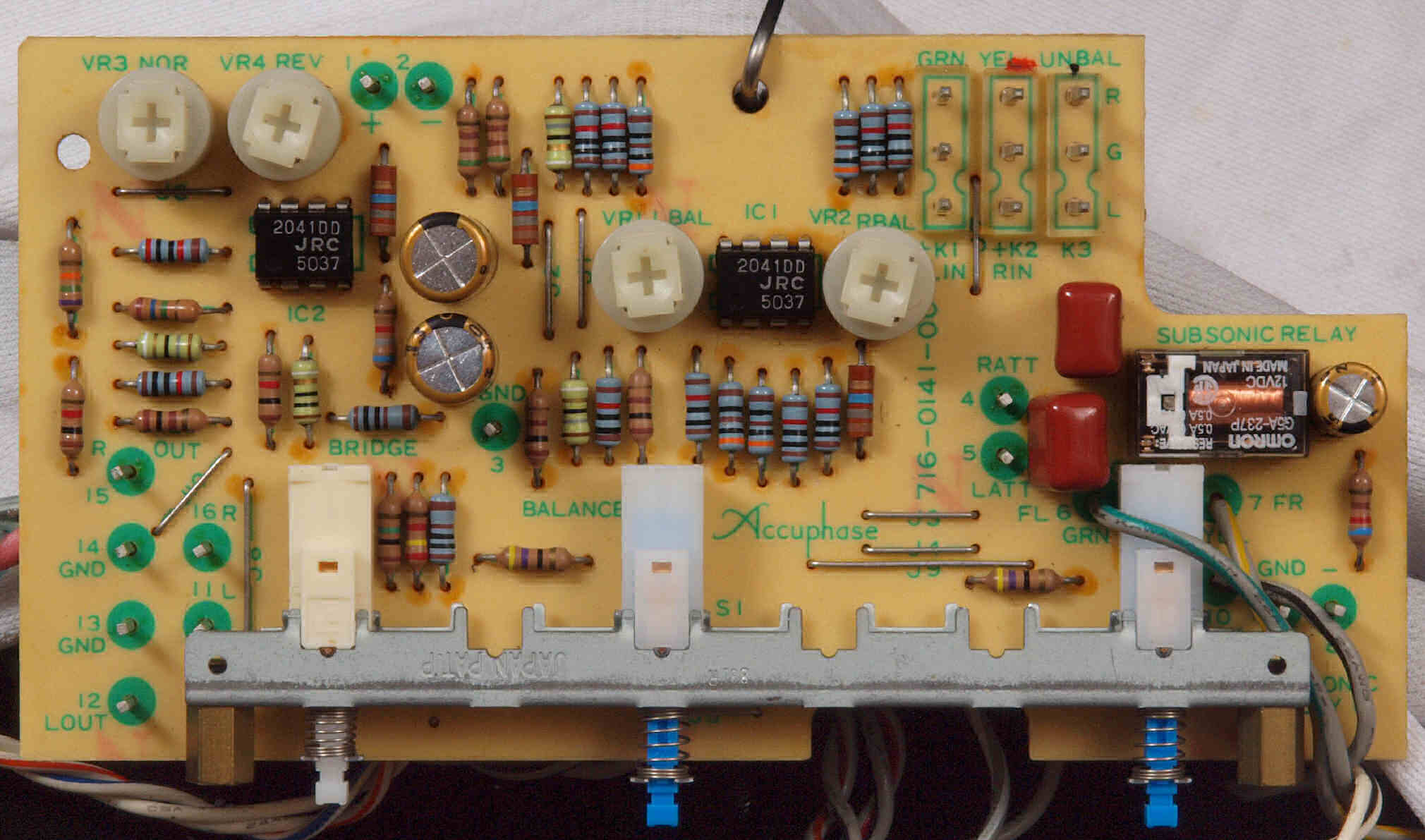 | C62. 修理後 L側SP接続基板。 OP-AMP1個、リレー1個、電解コンデンサー15個交換。 | ||||||||||||||||||||||||||||||||||||||||||
