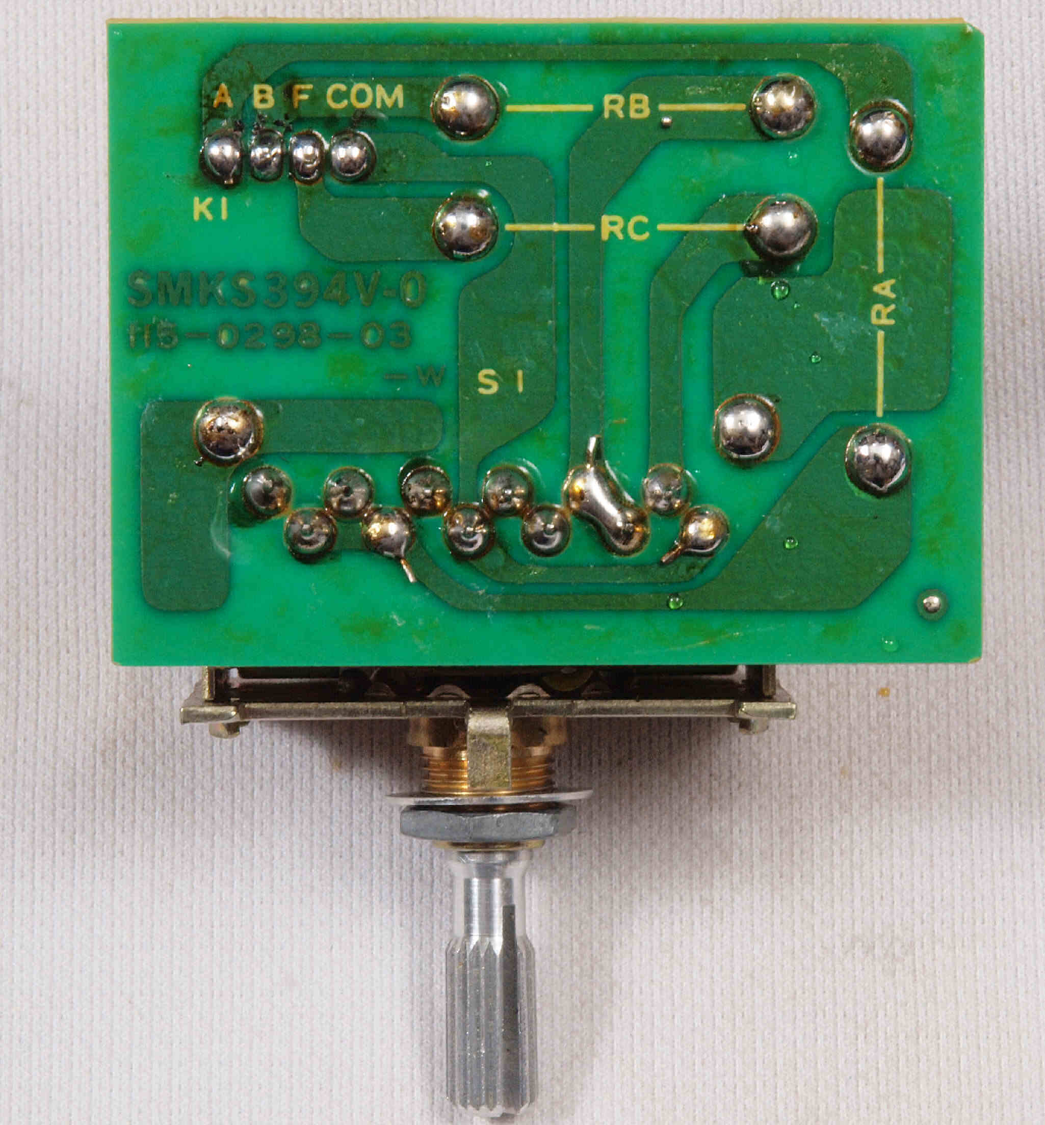 | C84. 修理(半田補正)後 入力モードSW基板裏。 半田を全部やり直す。 | ||||||||||||||||||||||||||||||||||||||||||