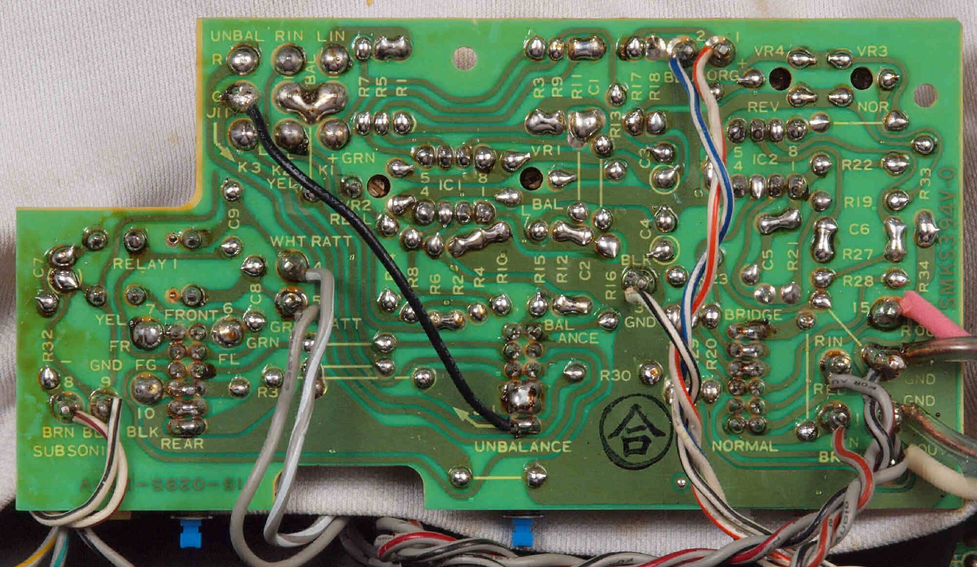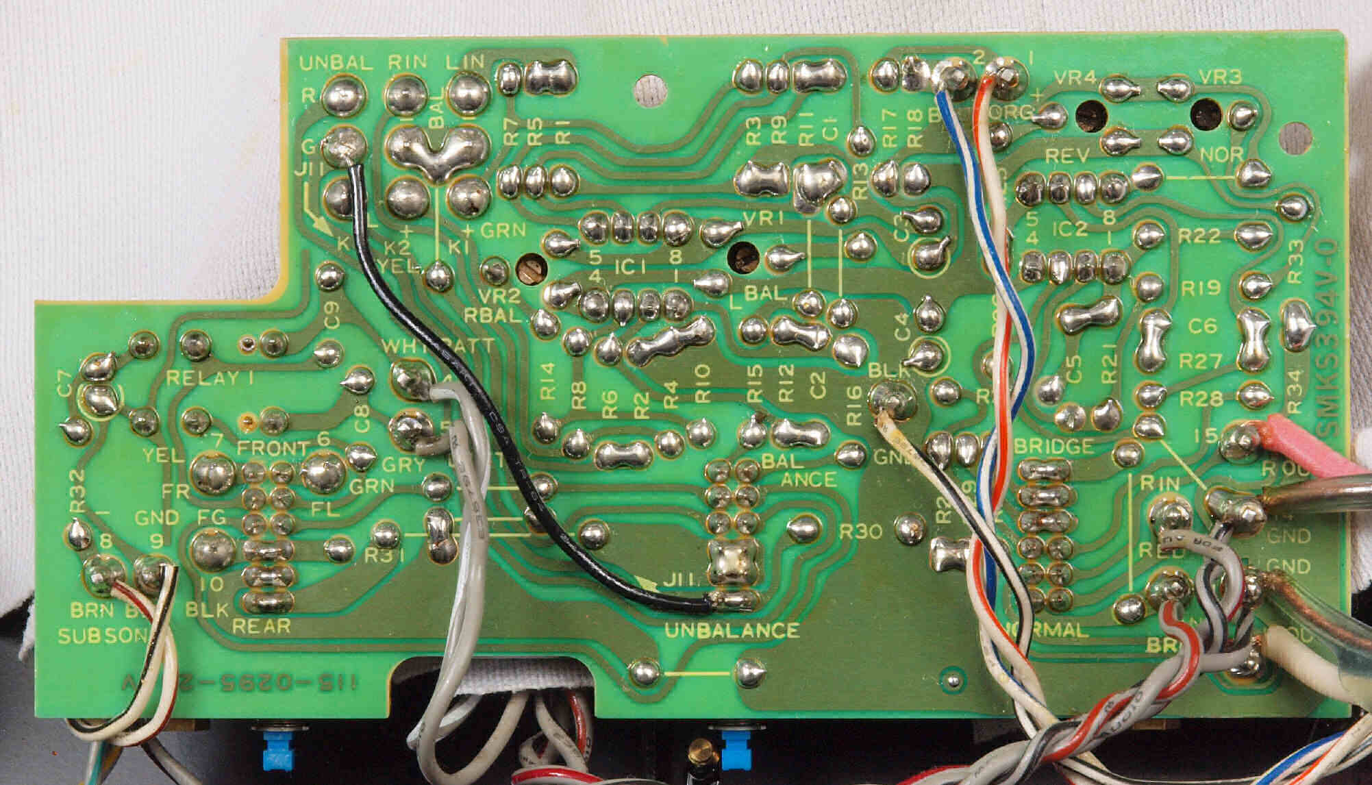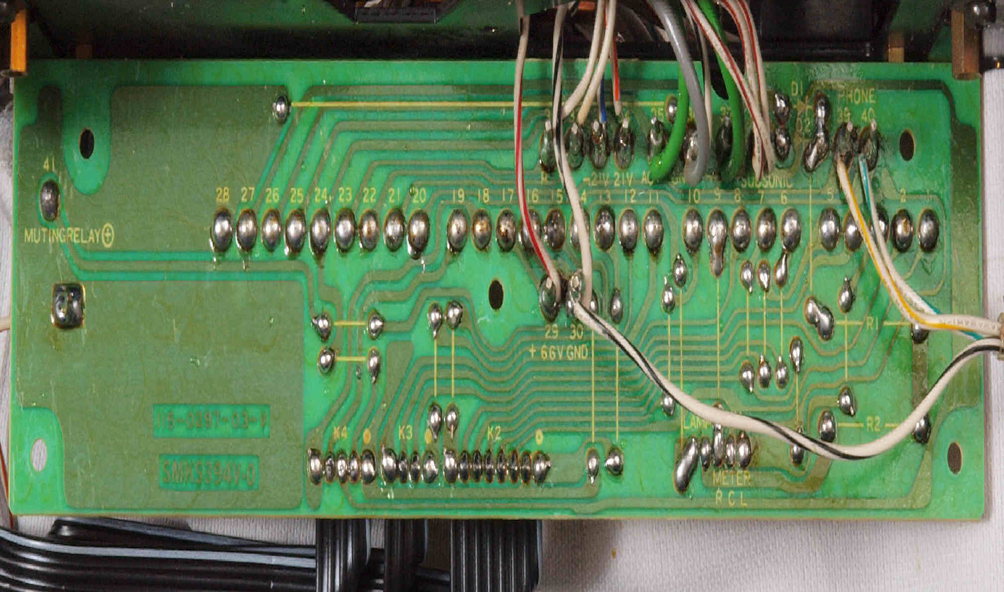 | C73. 修理(半田補正)後 SP出力選択SW基板裏。 半田を全部やり直す。 | ||||||||||||||||||||||||||||||||||||||||||