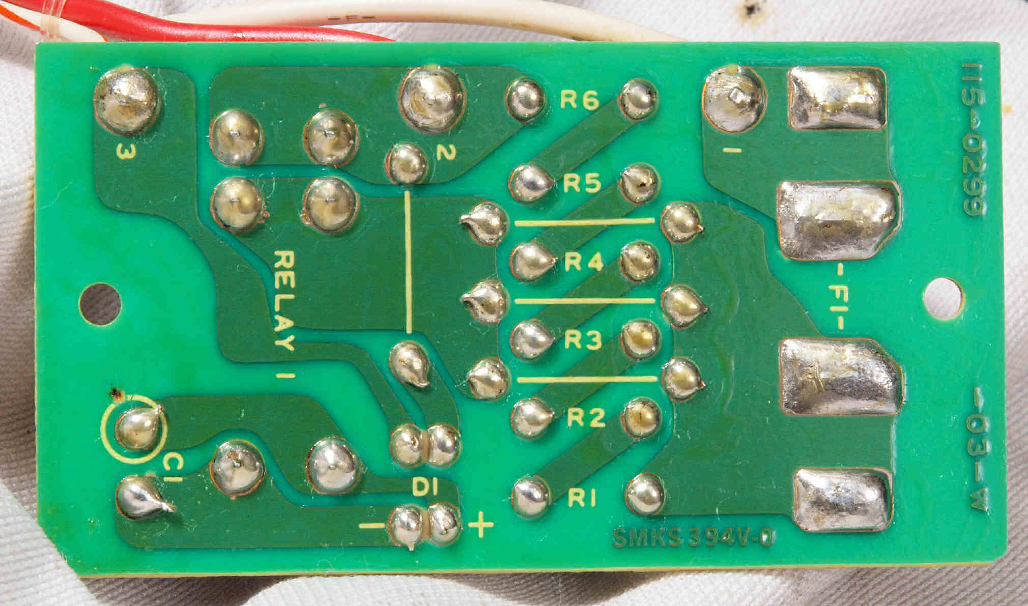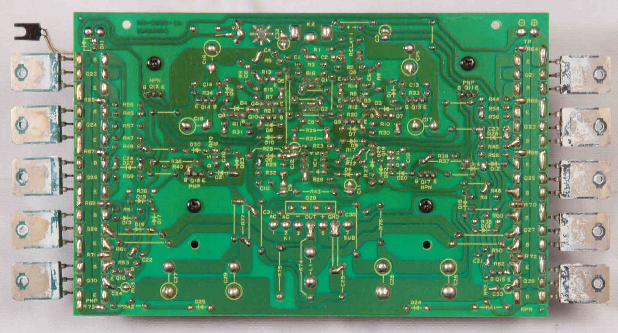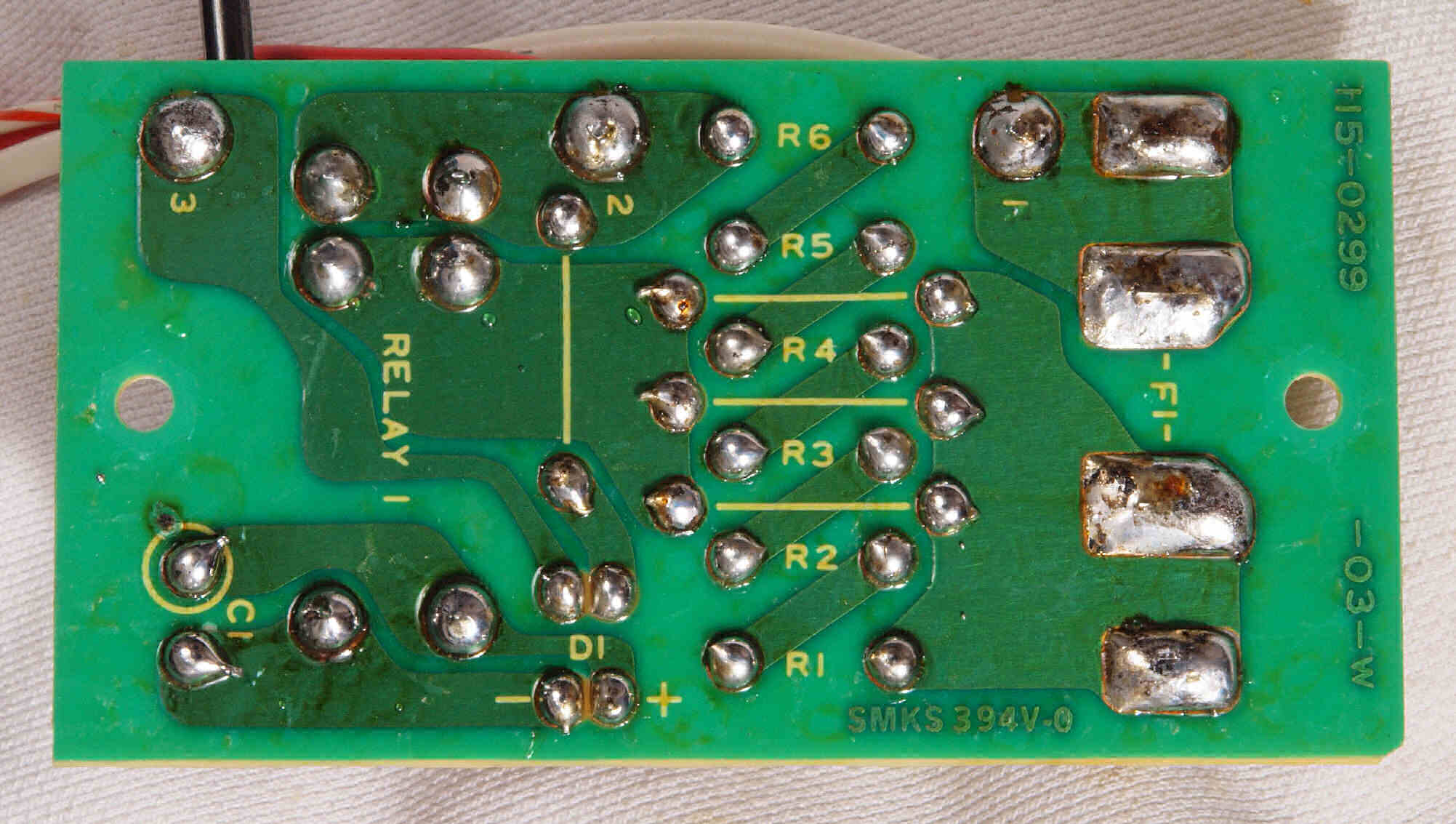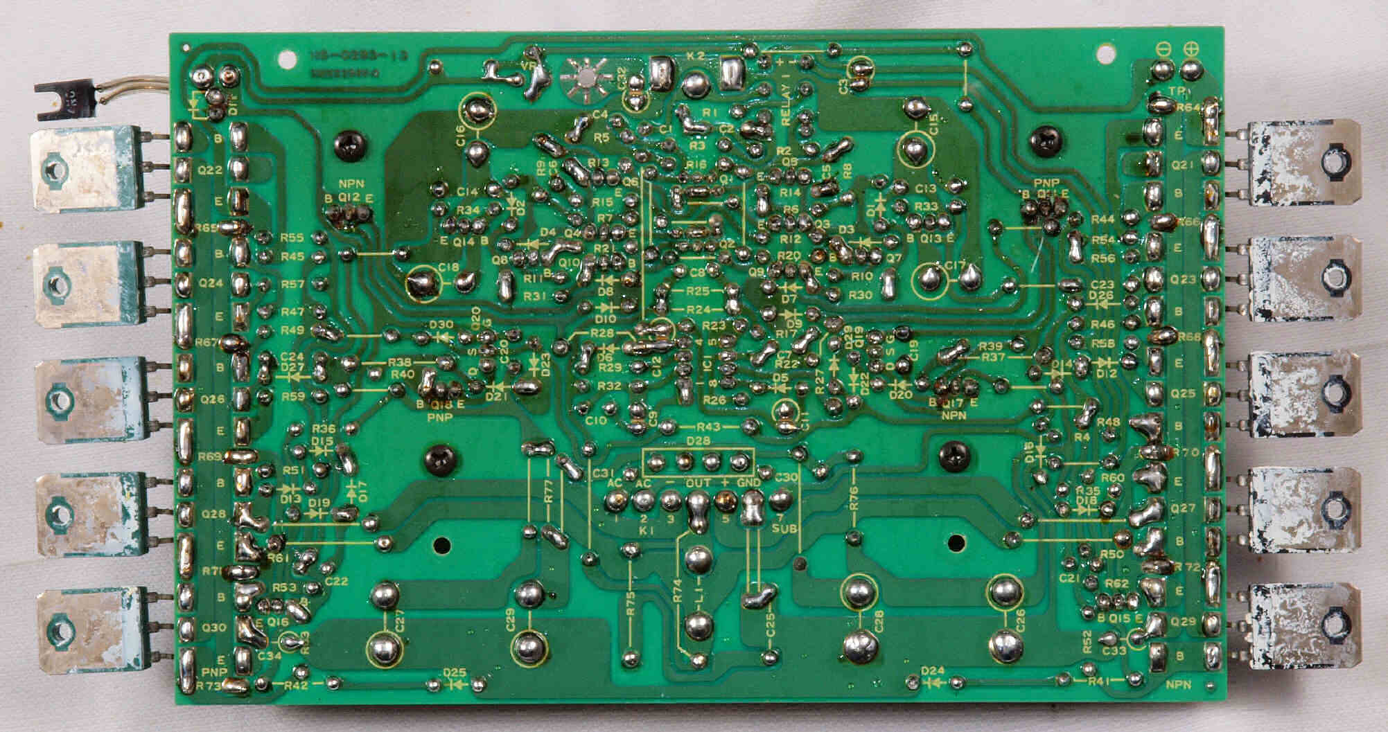 | CA4. 修理(半田補正)後 電源突入電流抑止基板裏。 半田を全部やり直す。 | ||||||||||||||||||||||||||||||||||||||||||
