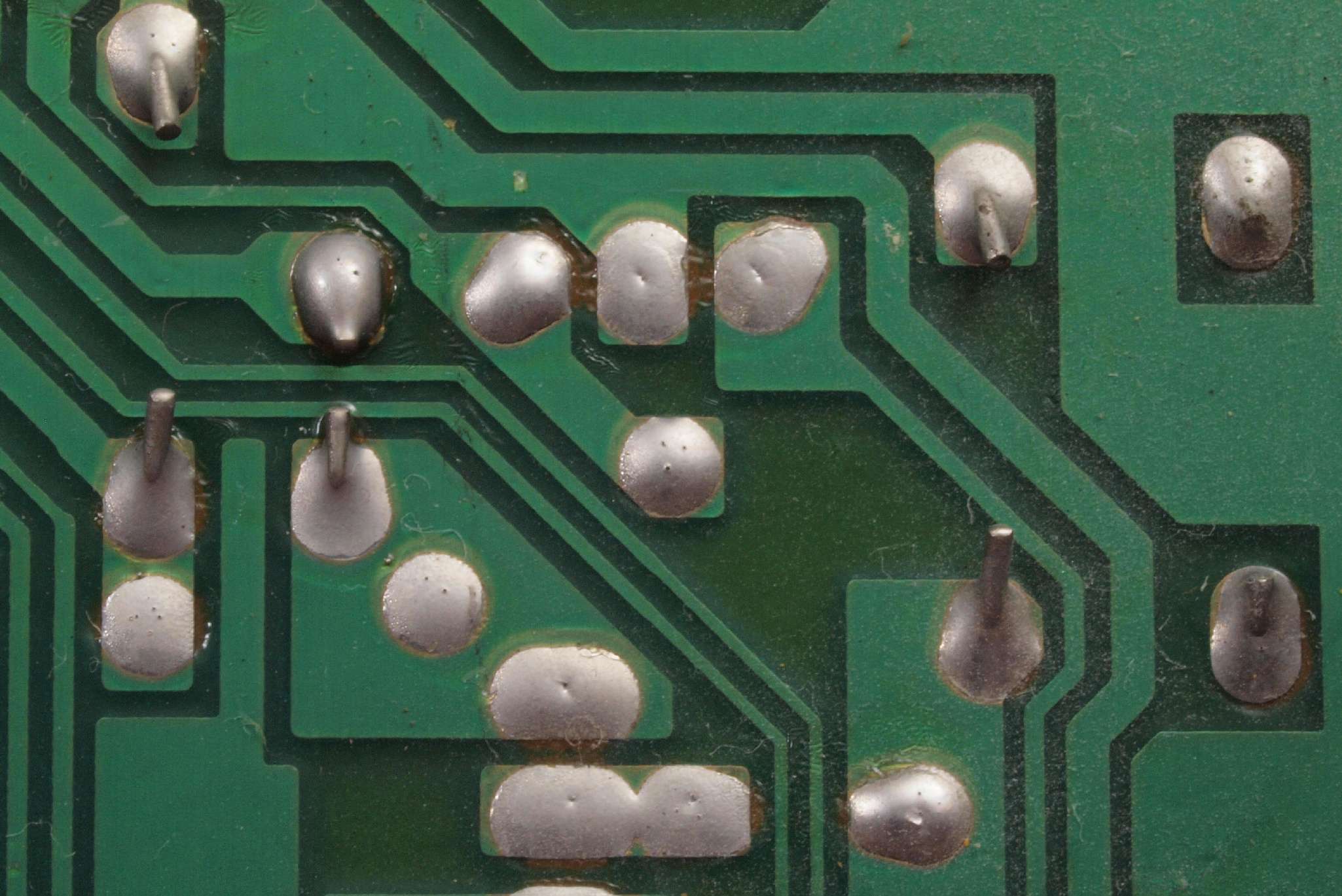 CC22. 修理中 中継端子基板裏。半田部分拡大。