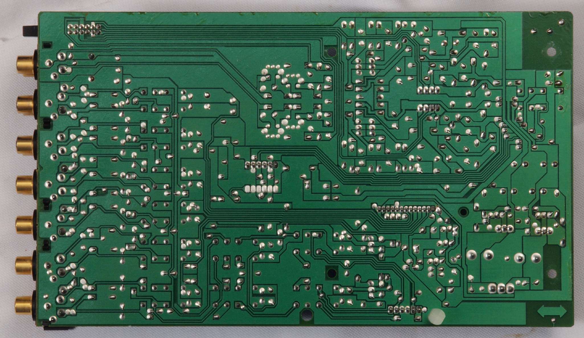 C14. 修理(半田補正)後 右側終段AMP基板裏。 半田を全部やり直す。