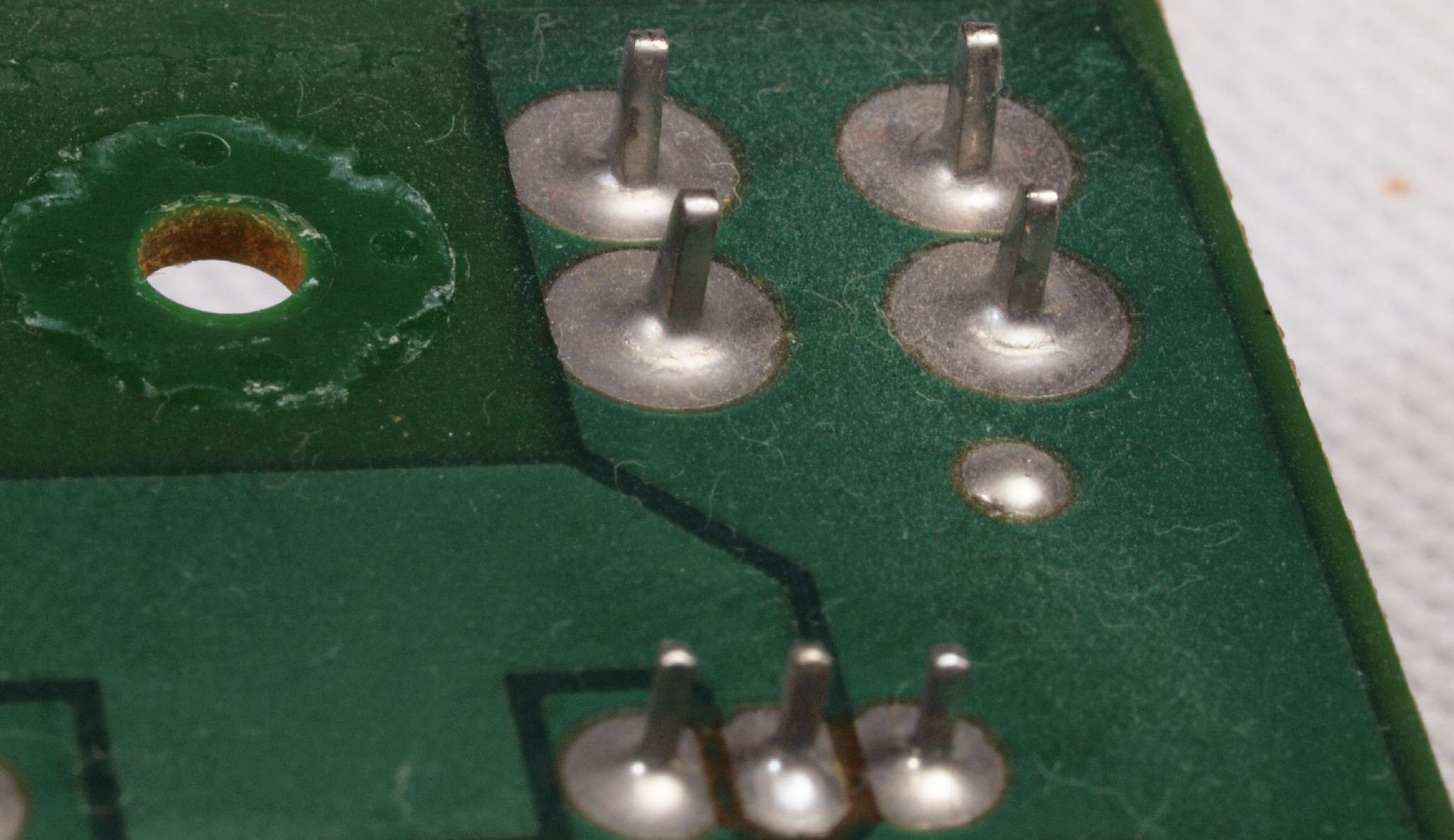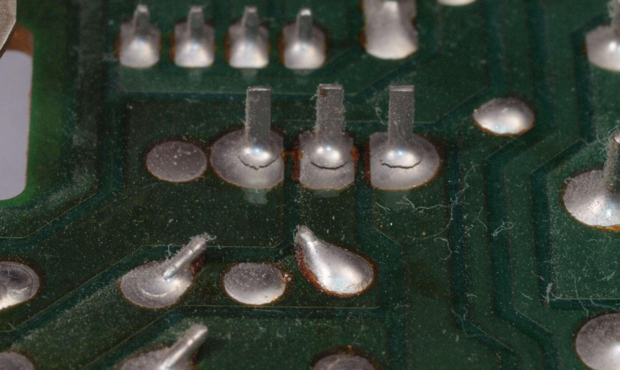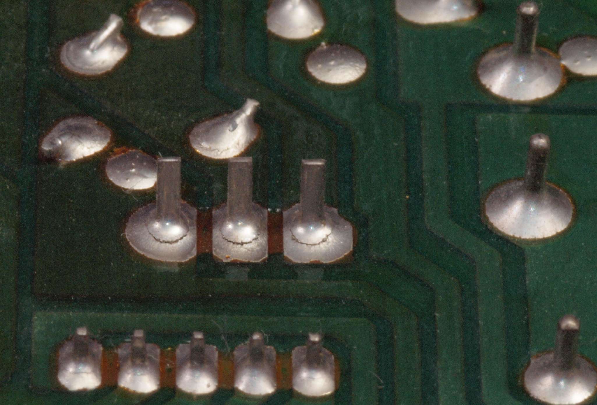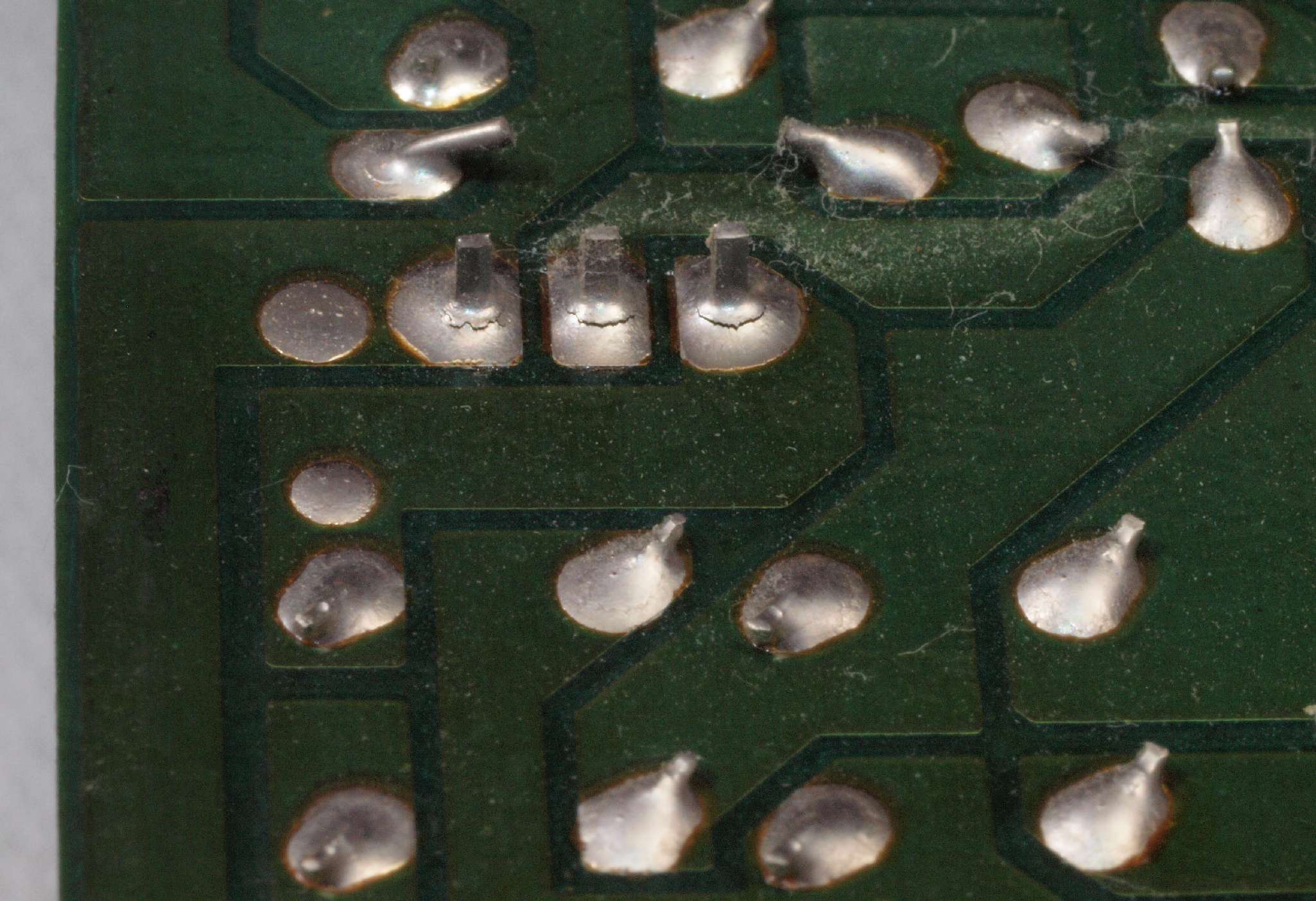 CC24. 修理中 中継端子基板裏。半田部分3拡大。