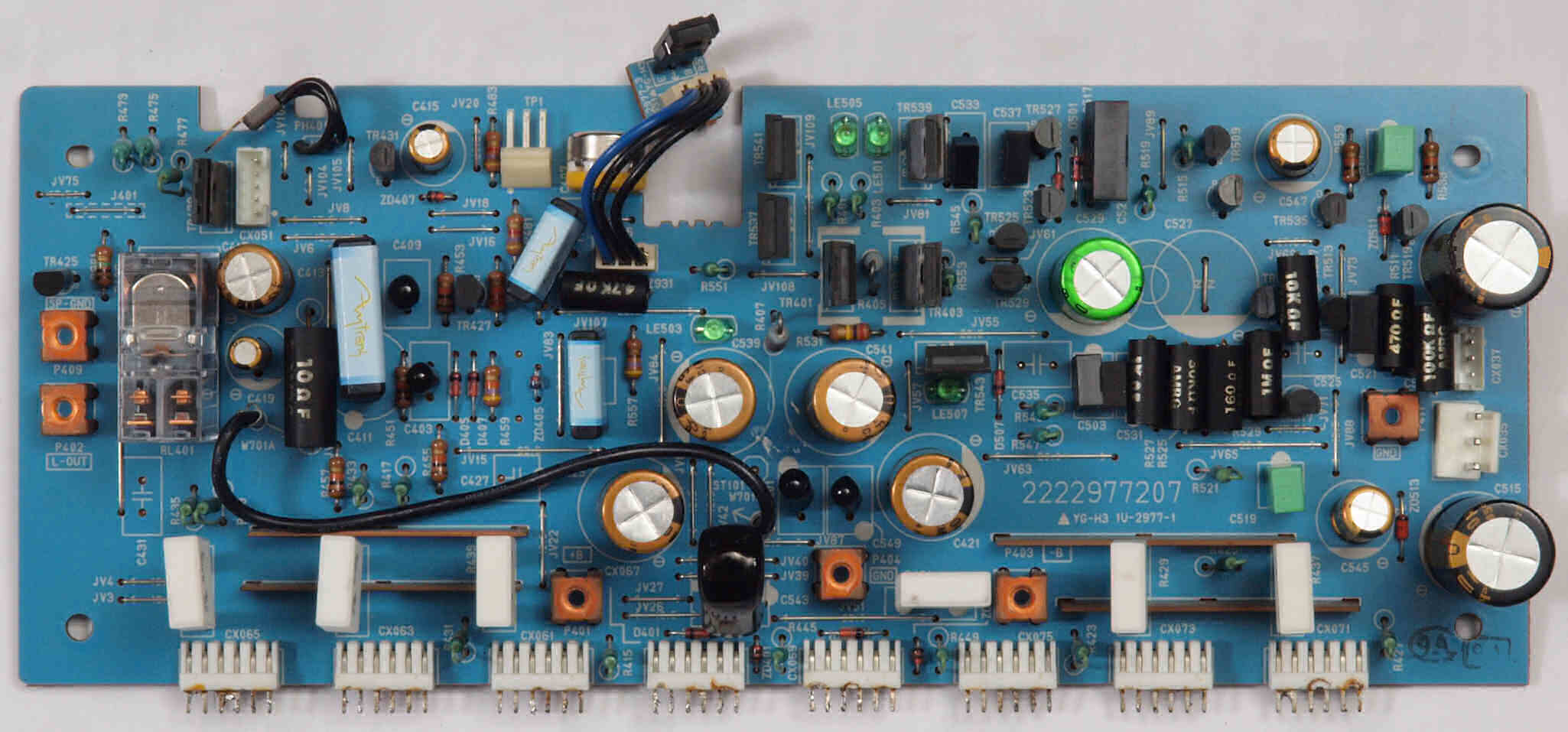 C22. 修理後 左側終段AMP基板。 バイアス調整用半固定VR1個、SP接続リレー1個