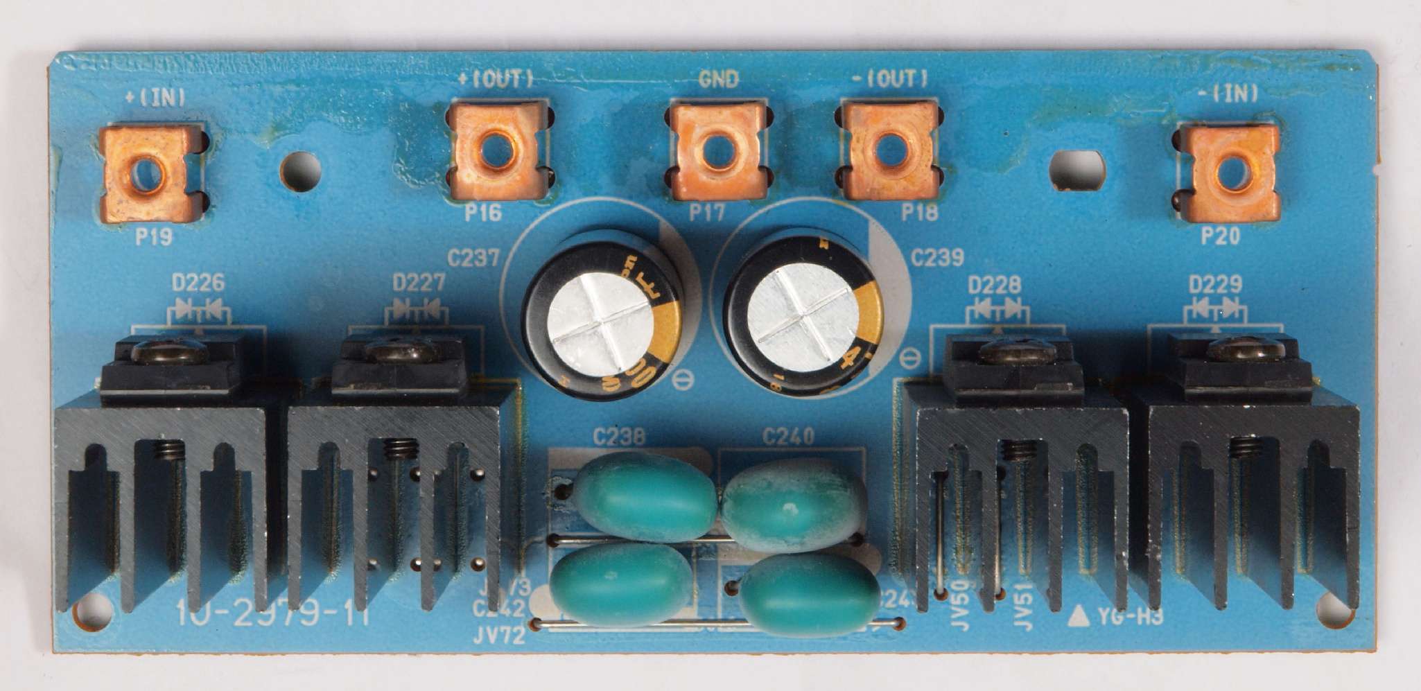 CD2. 修理後 電源ブロック電解コンデンサー回り。 フイルムコンデンサー2個追加。
