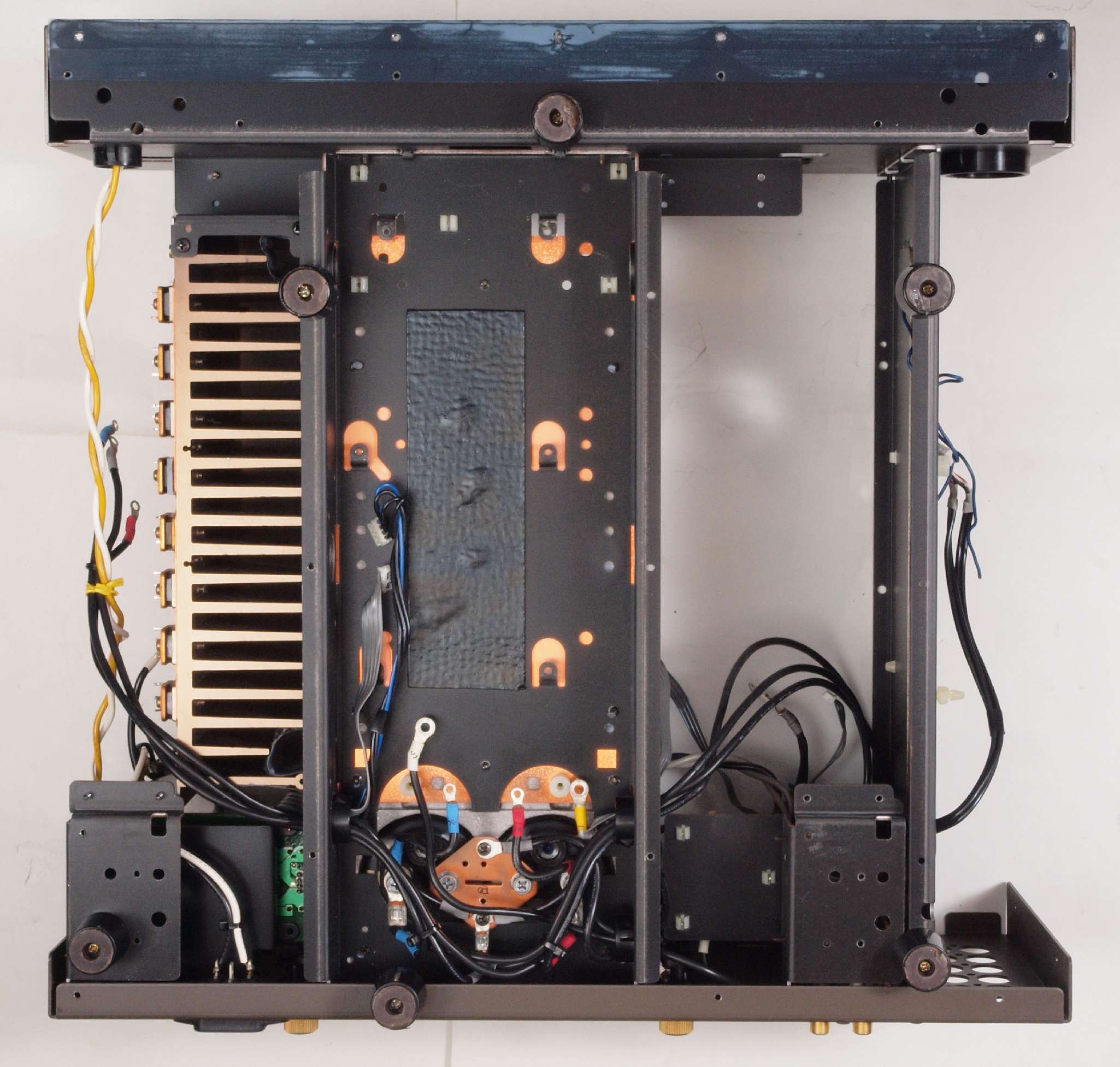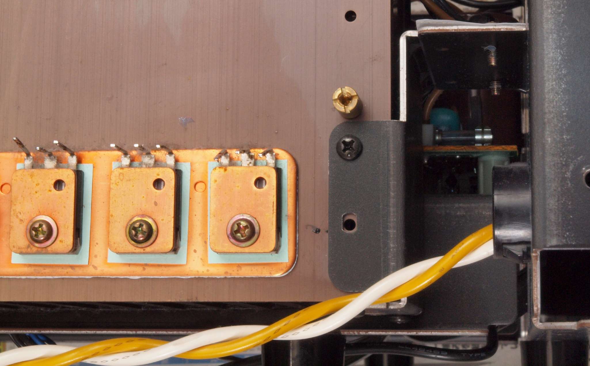 A33. 点検中 L側メインアンプ、終段TR(トランジスター)+FET(電解トランジスター)の固定銅板は単独。