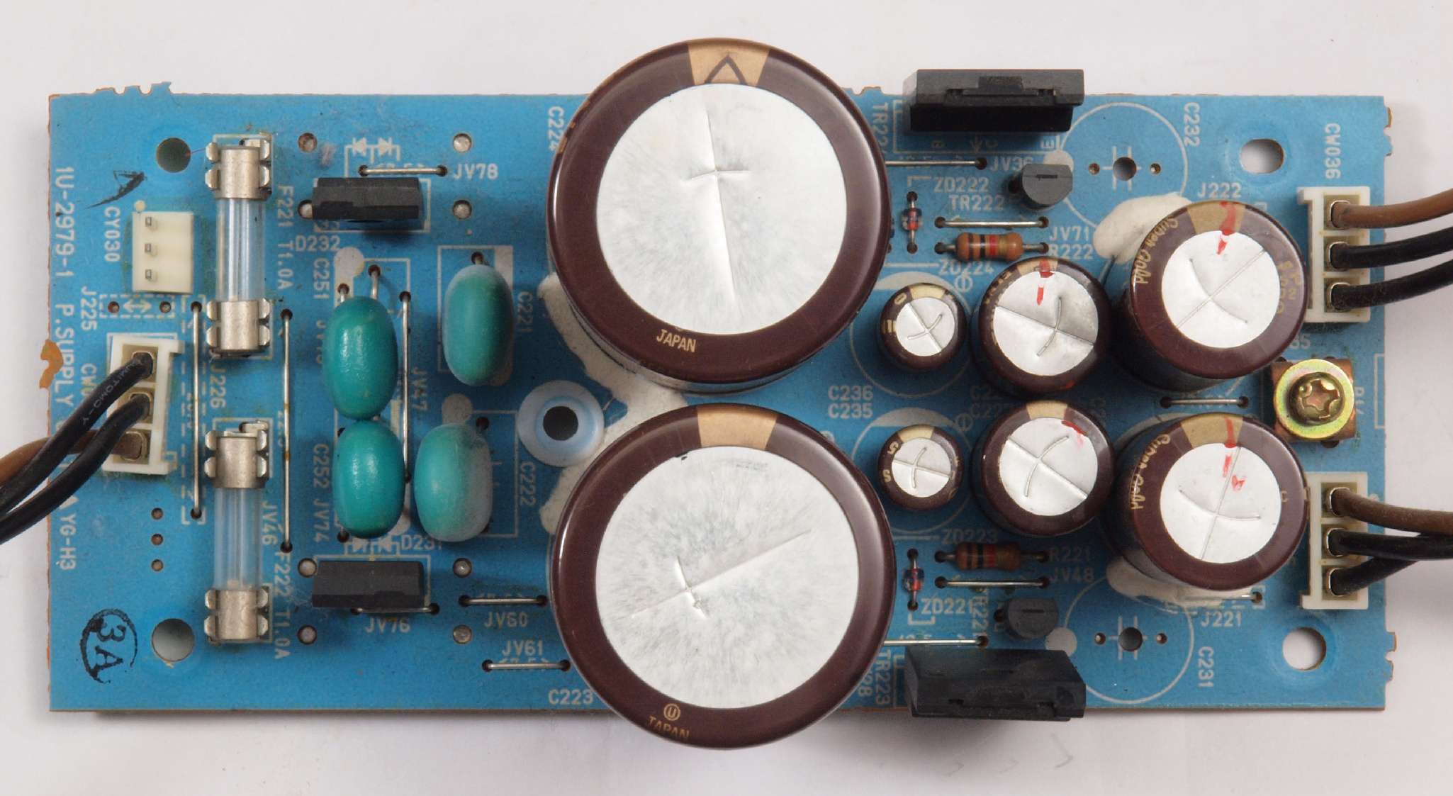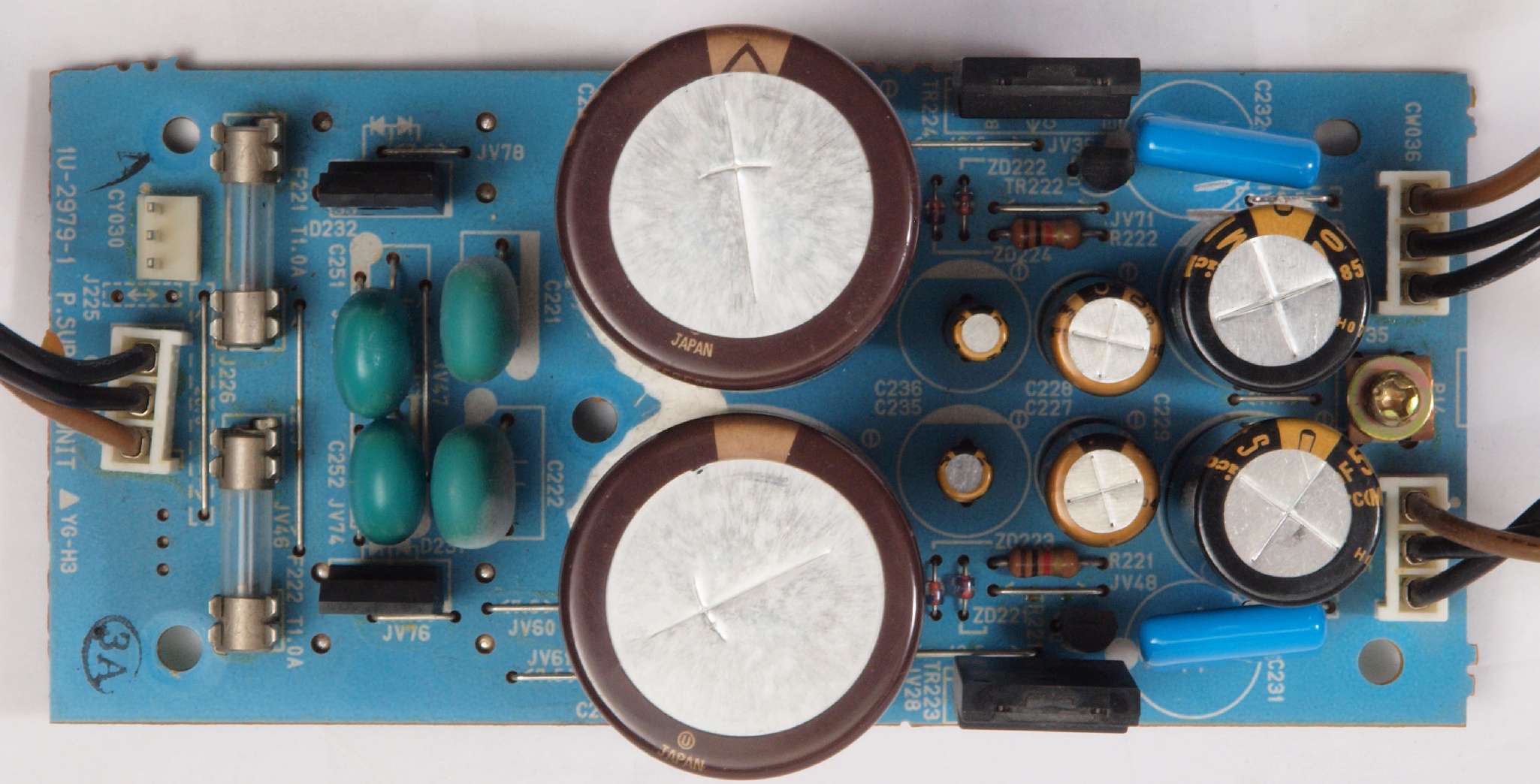CD1. 修理前 電源ブロック電解コンデンサー回り。