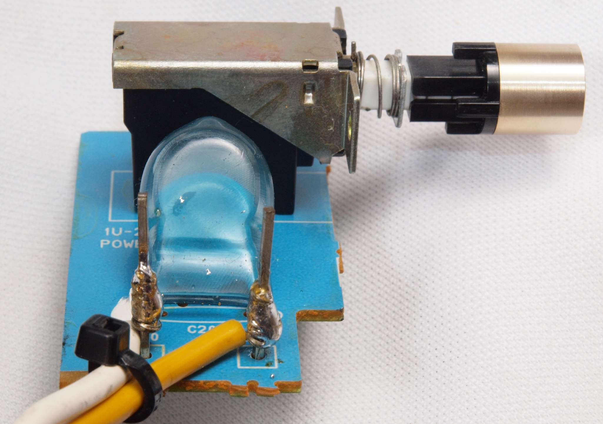 CC7. 修理後 電源SW基板、ラッピング線に半田を浸み込ませる。