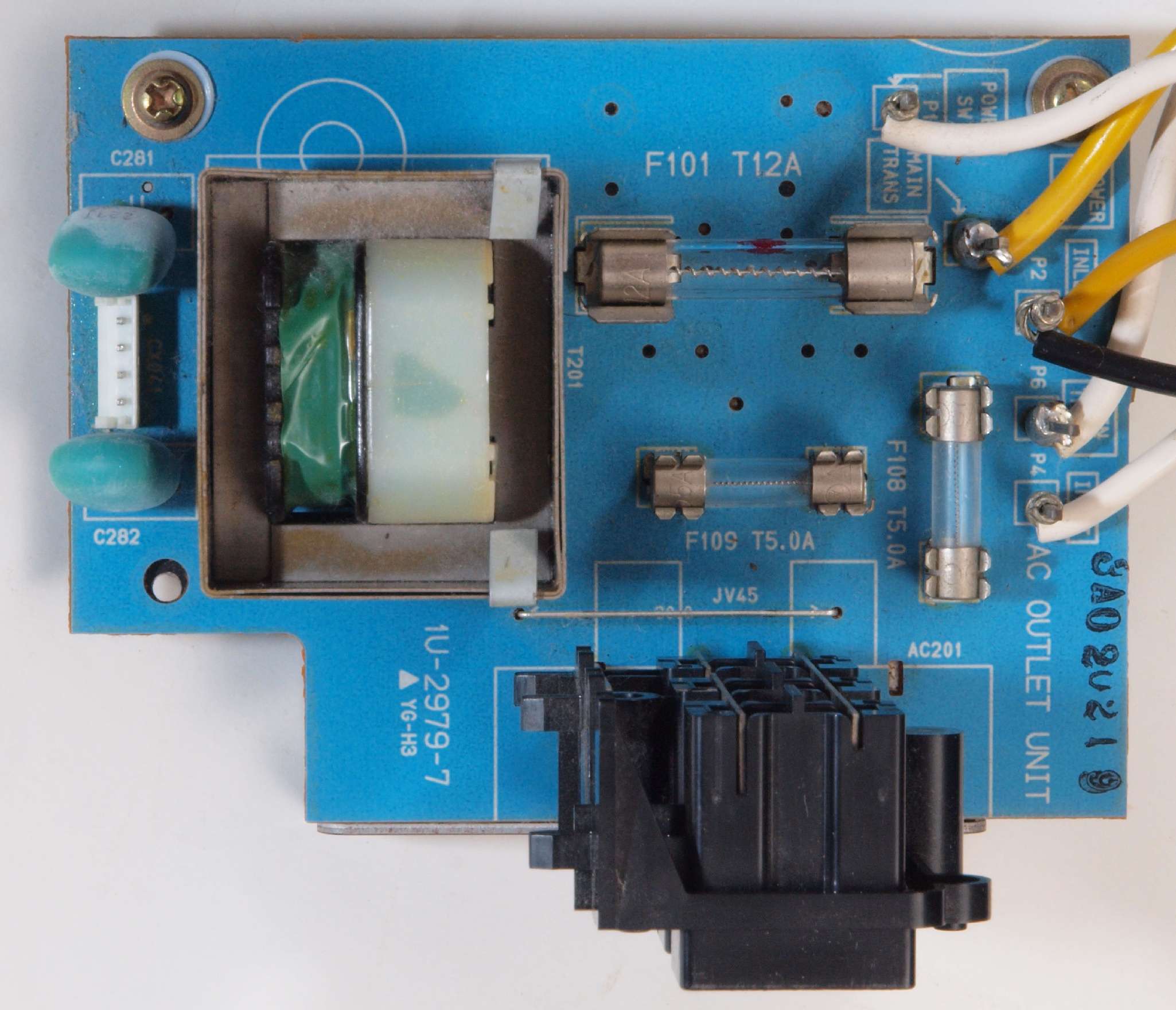 C1. 修理中 基板、前パネルを取りさったシャシ。
