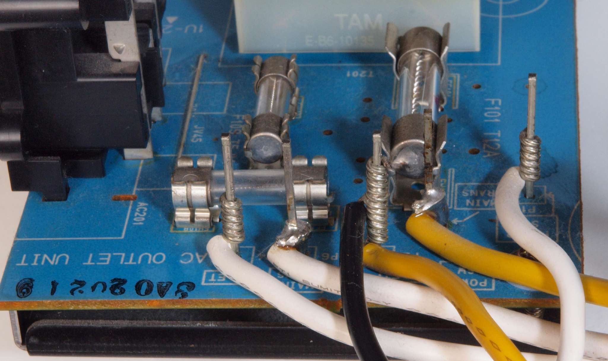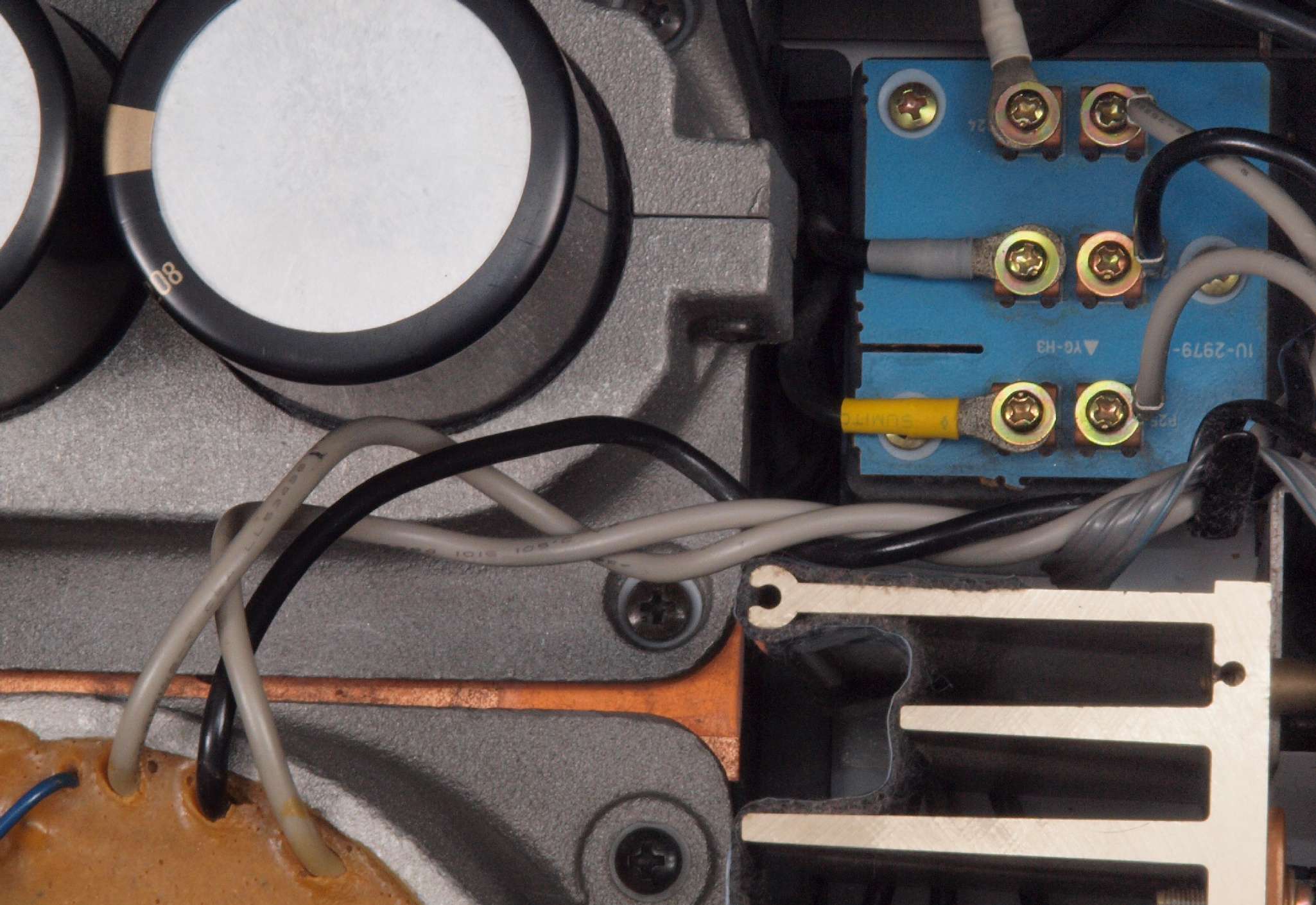 A32. 点検中 トランスから整流器基板への配線、ラグ端子が鉄ビスで止められている。
