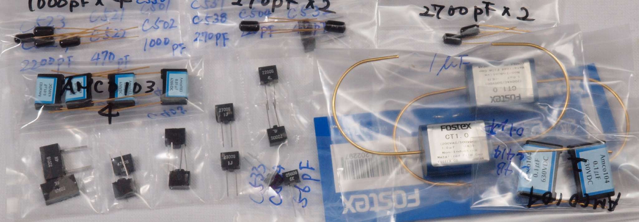 抵抗11個、電解コンデンサー13個、フイルムコンデンサー10個交換、フイルムコンデンサー2個追加