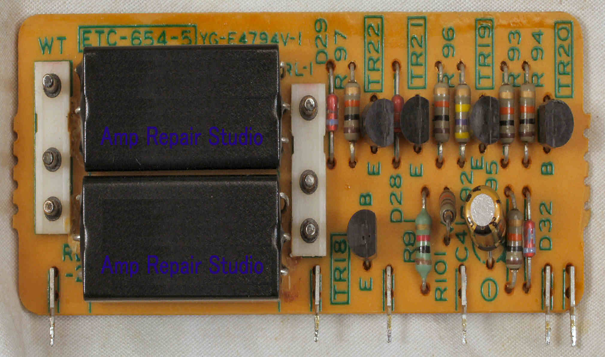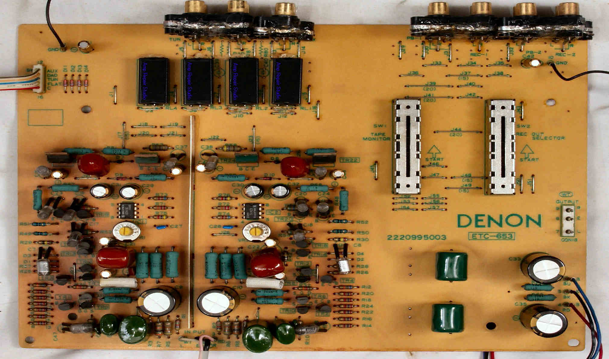 C32. 修理後 EQ−AMP基板 電解コンデンサ−18個、リードリレー4個、半固定VR2個交換