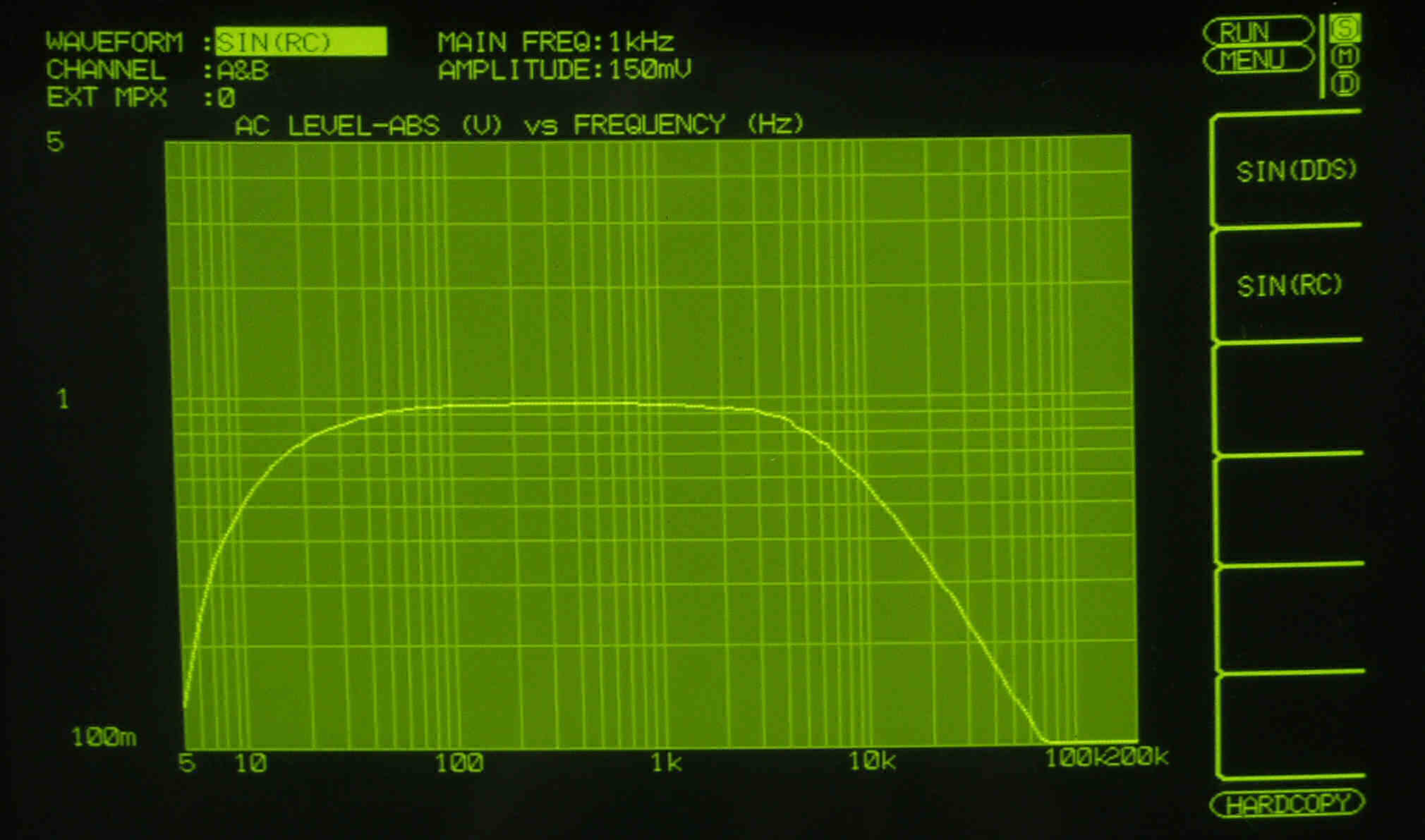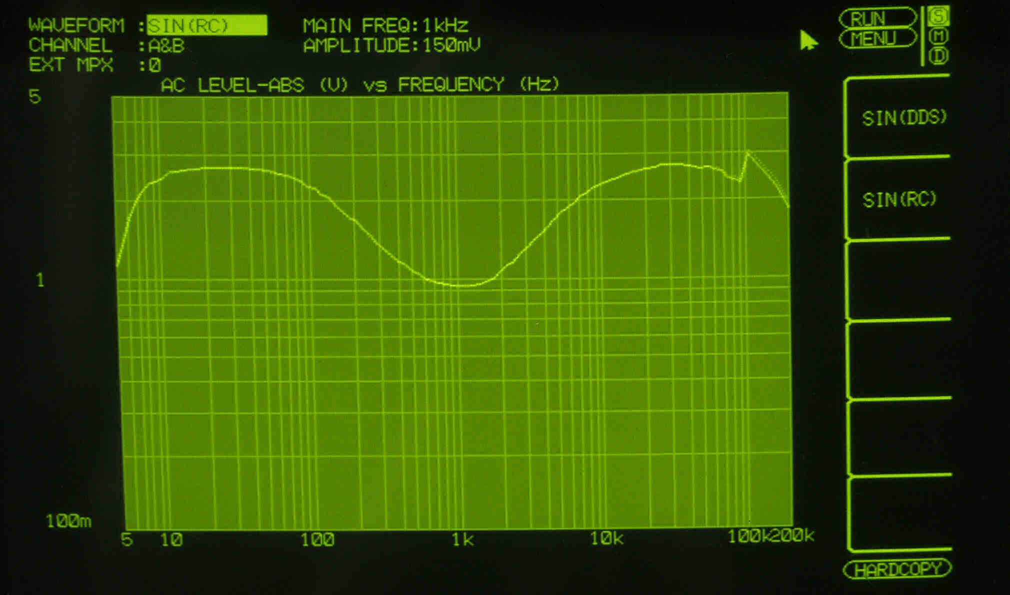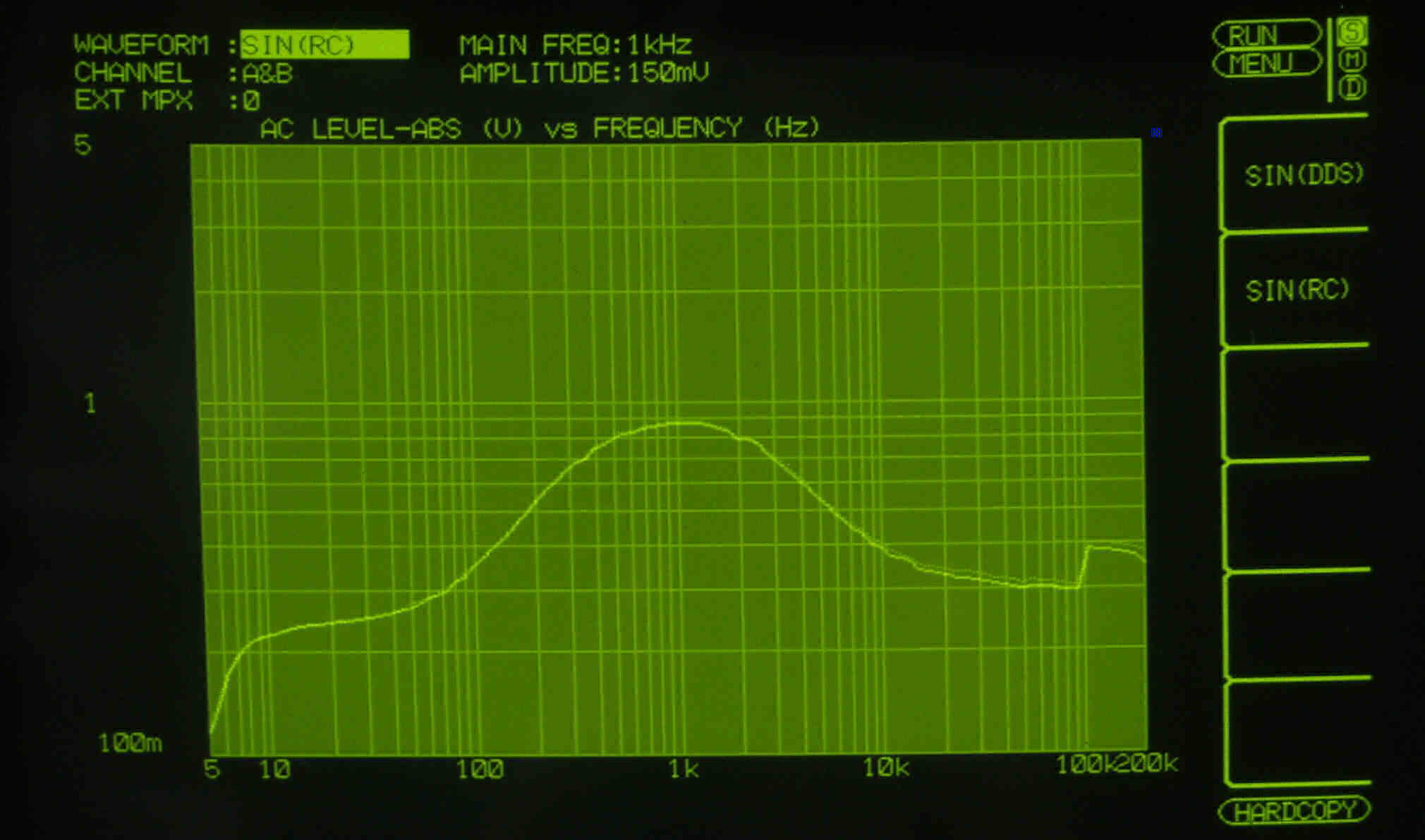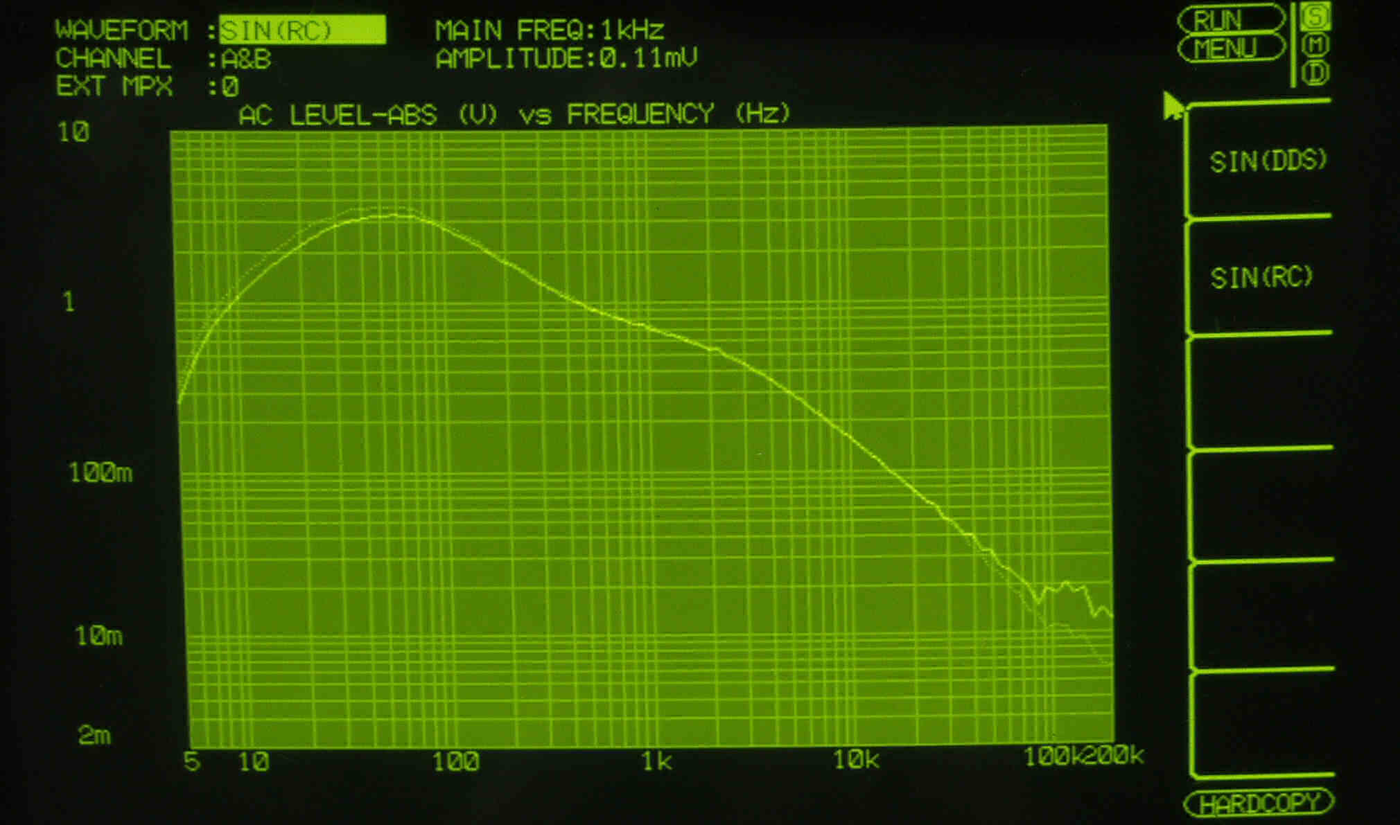 AUX入力端子へ150mV一定入力 VRはmax  左出力=薄(細い)色 右出力=濃い(太い)色
