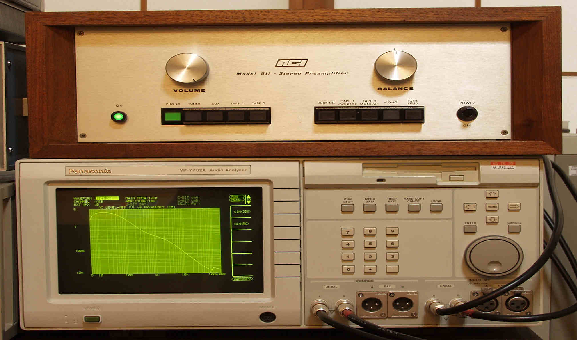 | E4A. 出力電圧8V 歪み率=0.01% 測定レンジ=0.1% MM入力 1000HZ まだ飽和していないので、過大入力使用には十分気を付ける事 |
