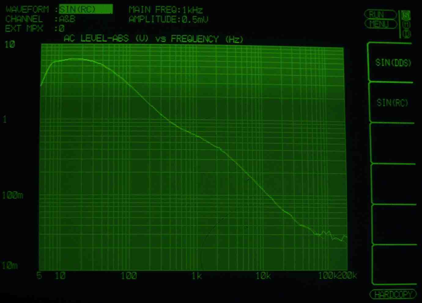 F3A. 周波数特性 MM入力(600オーム)=0.5mV一定 RL全く同じ (100KHZ当たりの相違は影響なし)