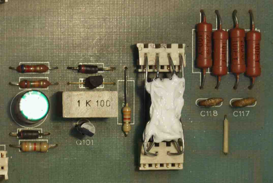 C1C. 修理前 定電圧基板裏 この艶のなさは、銀入りハンダ??