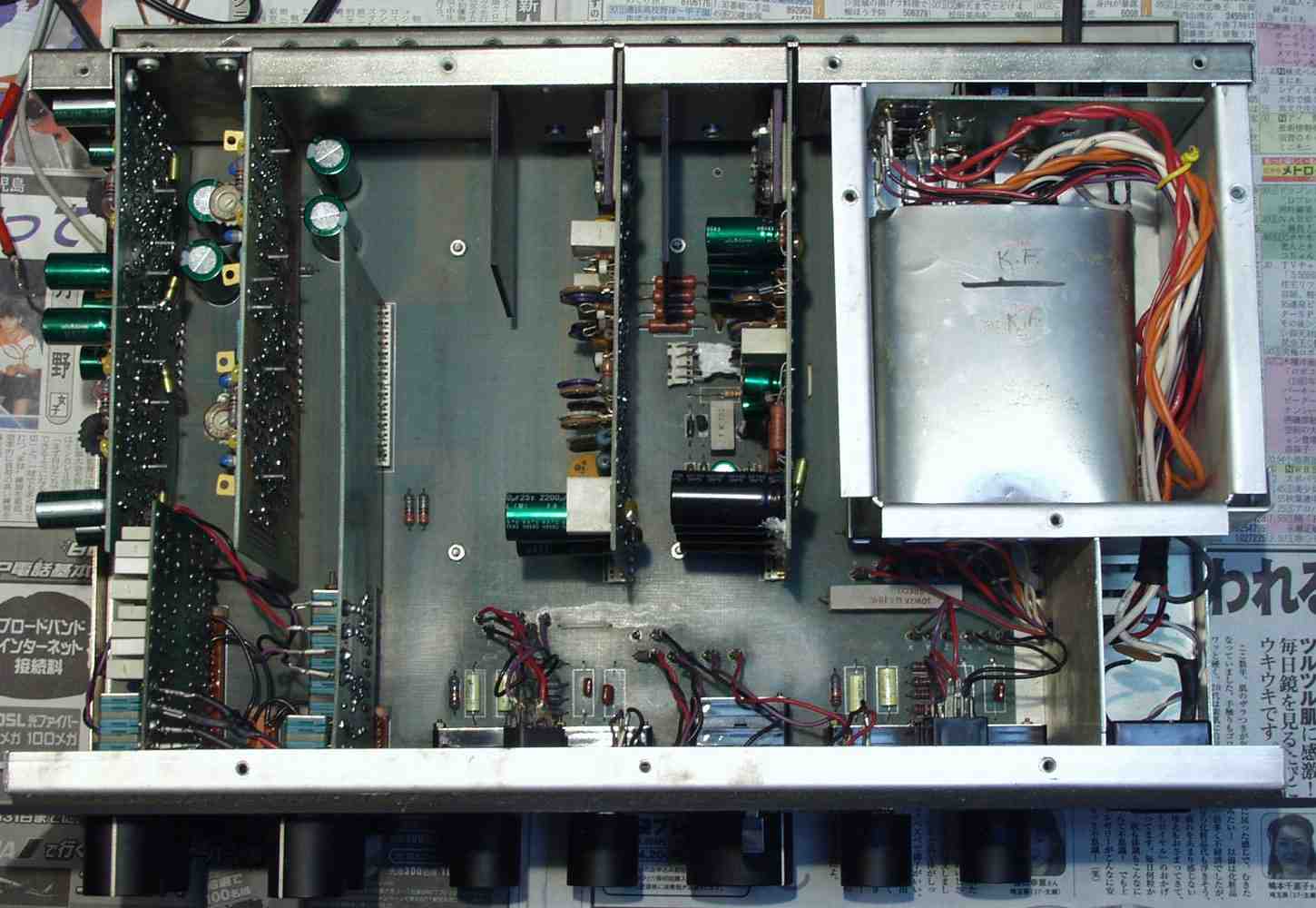 注意 このAMPもプリ出力にコンデンサーが無くDC漏れの可能性が有ります、メインAMPのDC入力端子に接続すると、