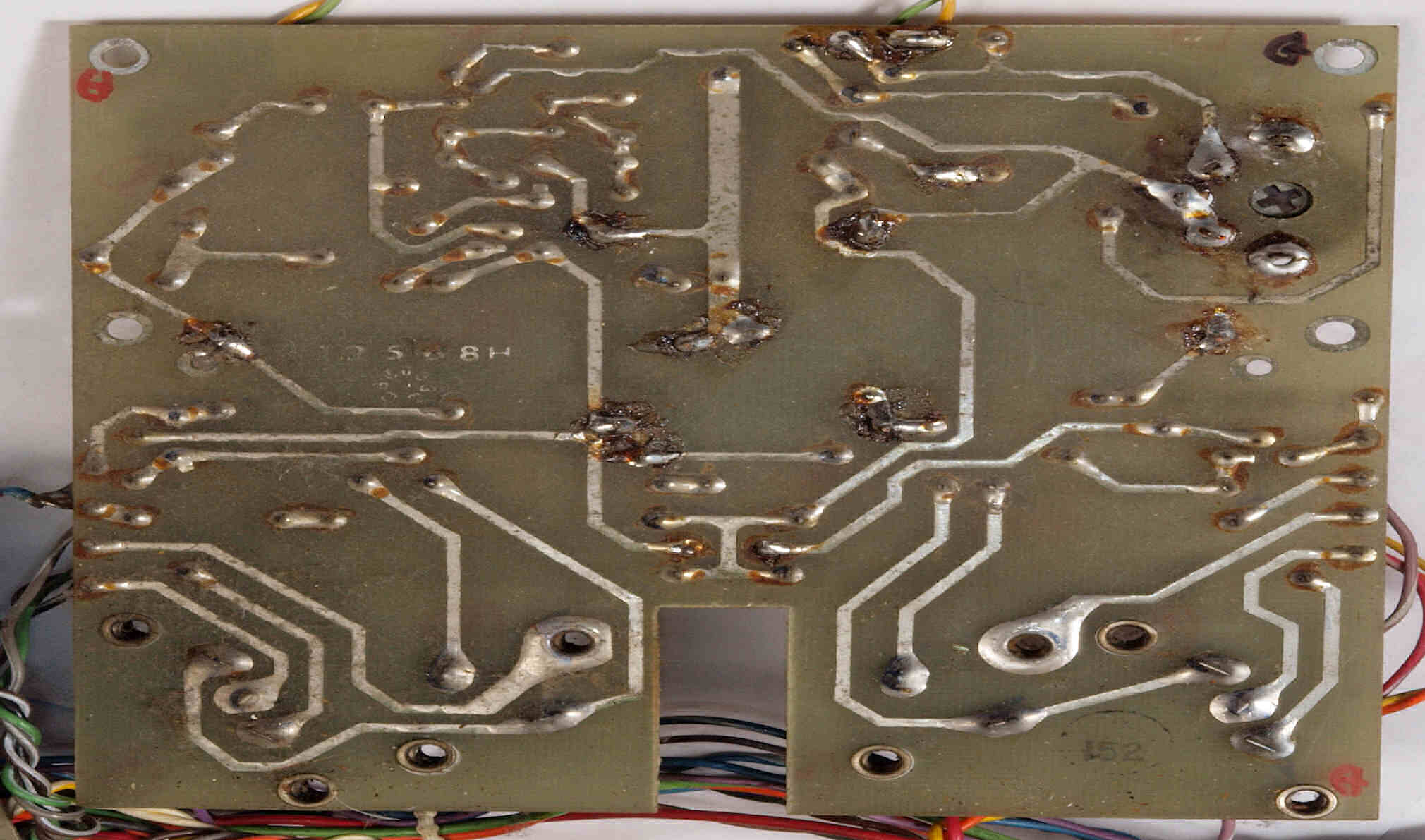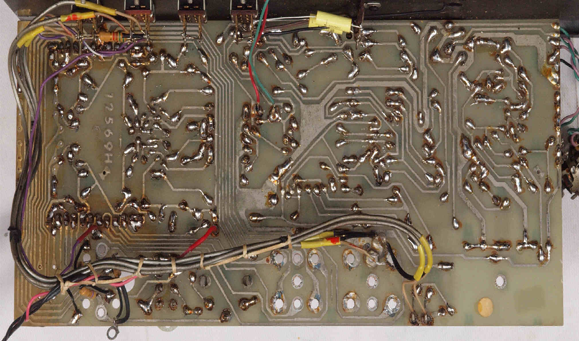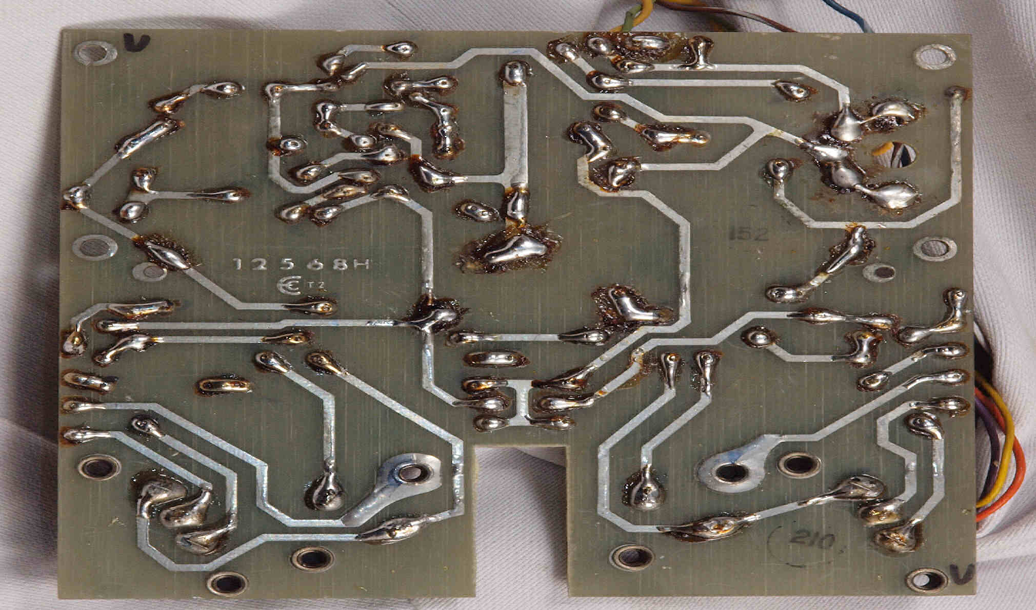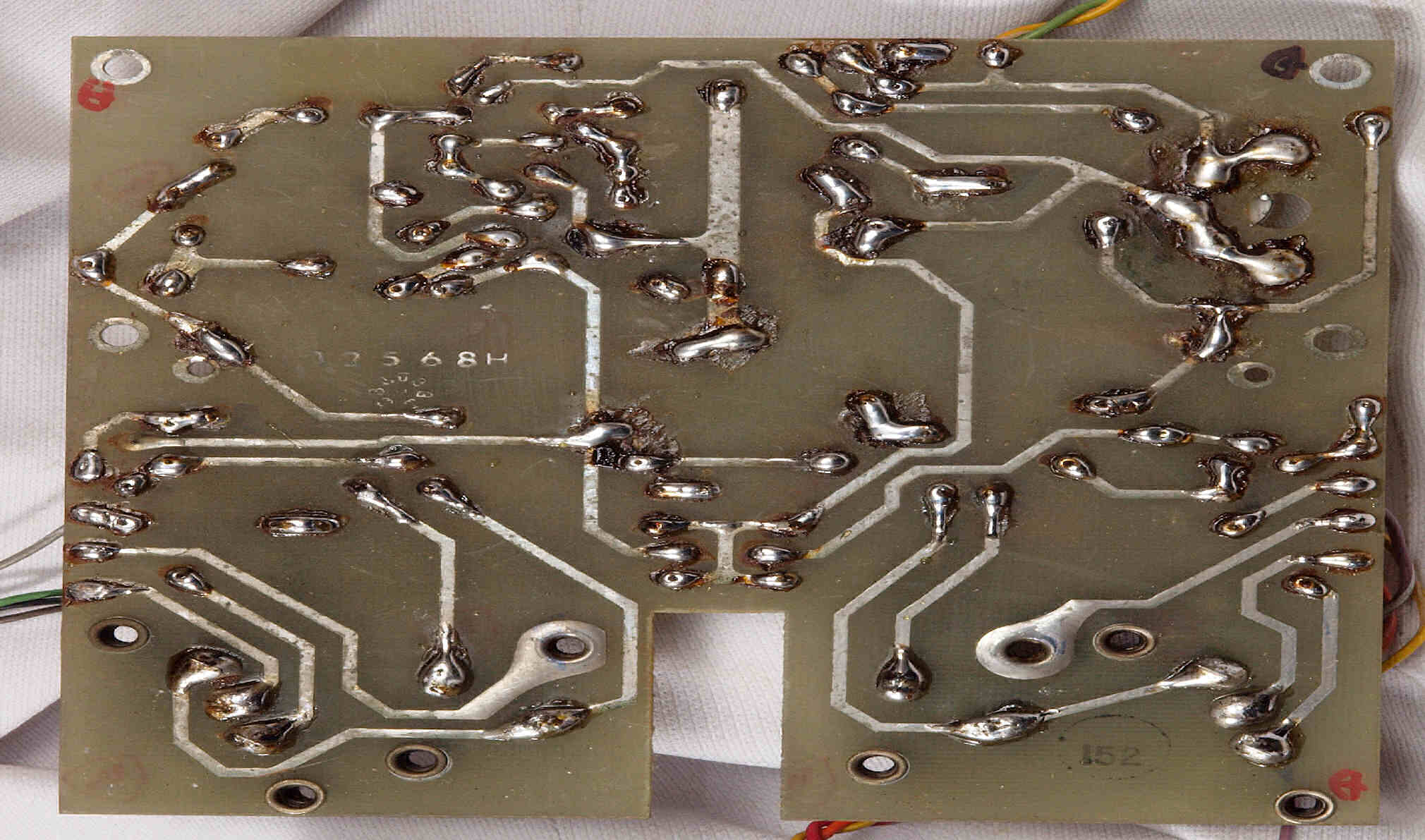 C34. 修理(半田補正)後 プリアンプ基板裏。半田を全部やり直し。