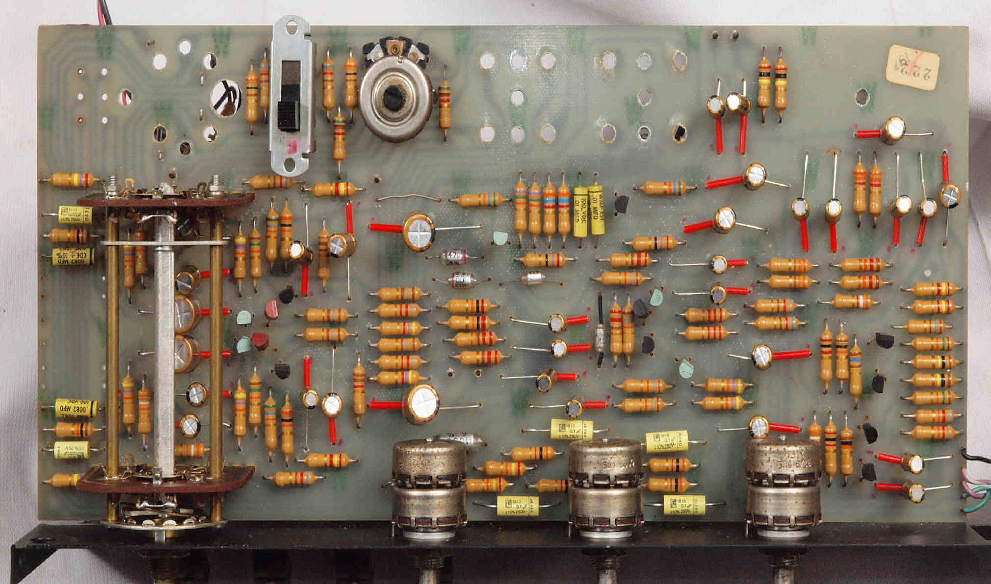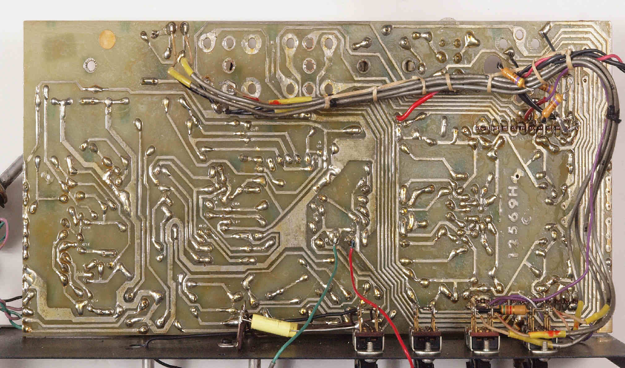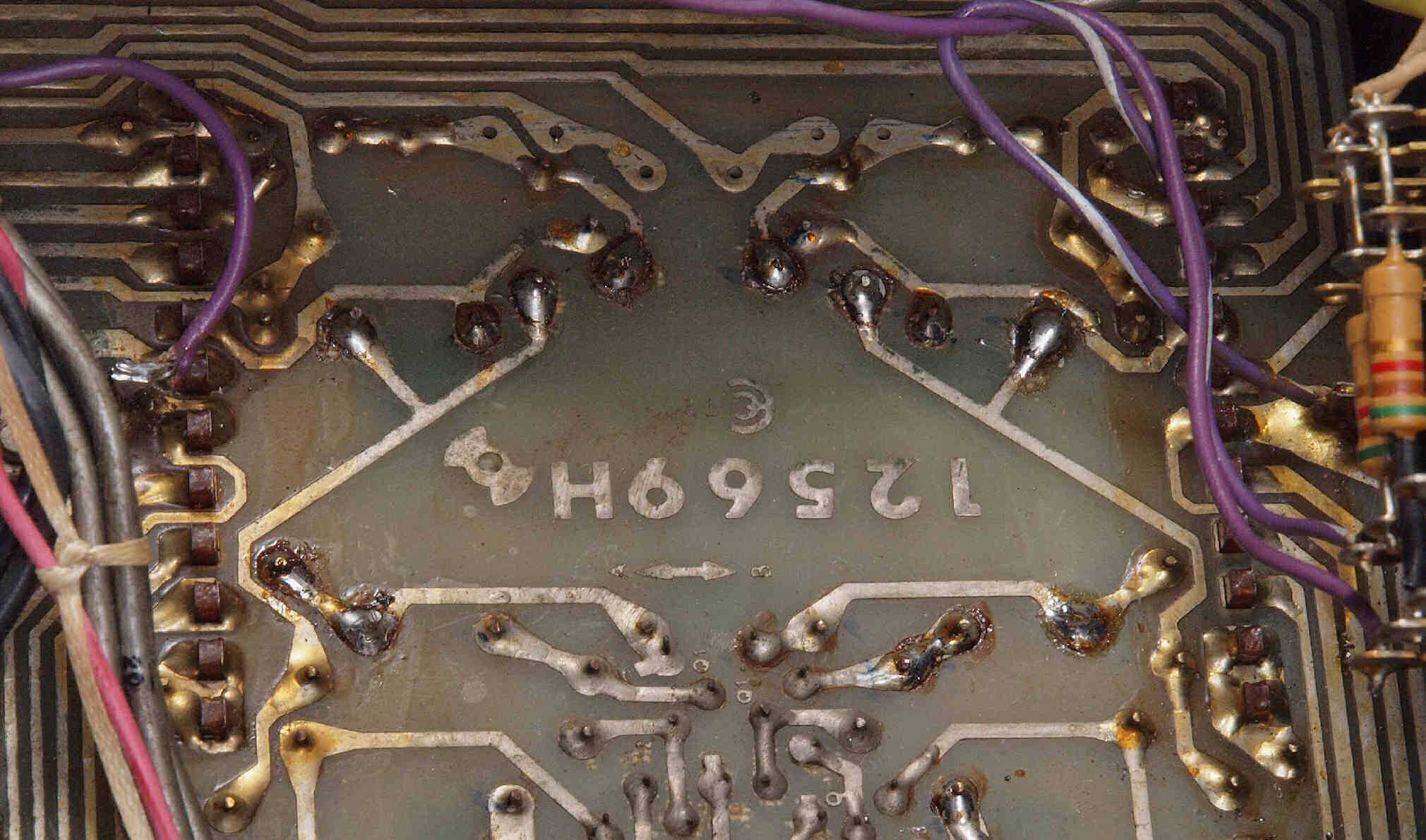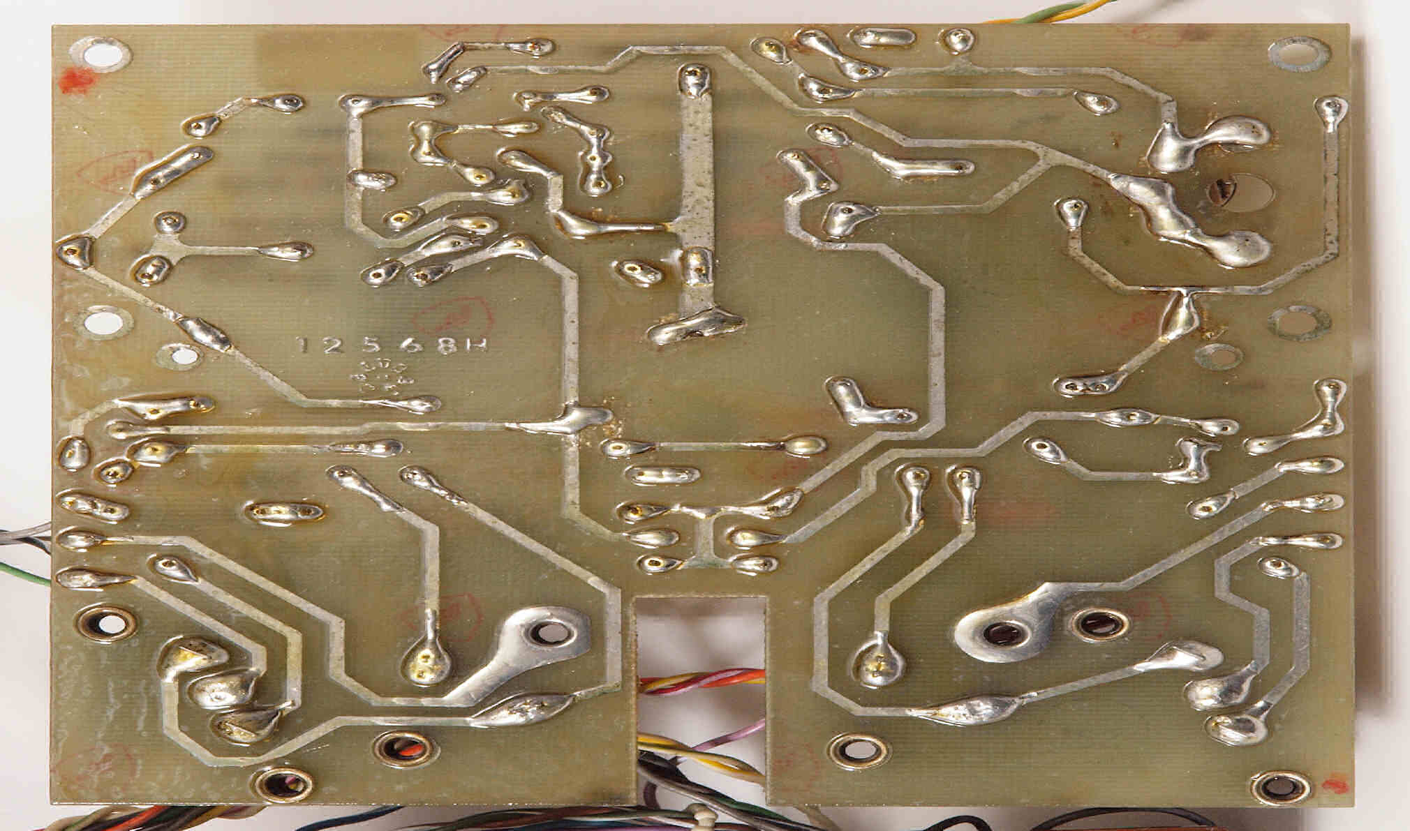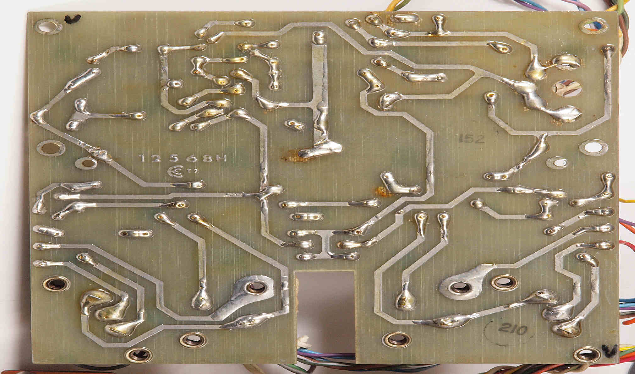 C34. 修理(半田補正)後 プリアンプ基板裏。半田を全部やり直し。