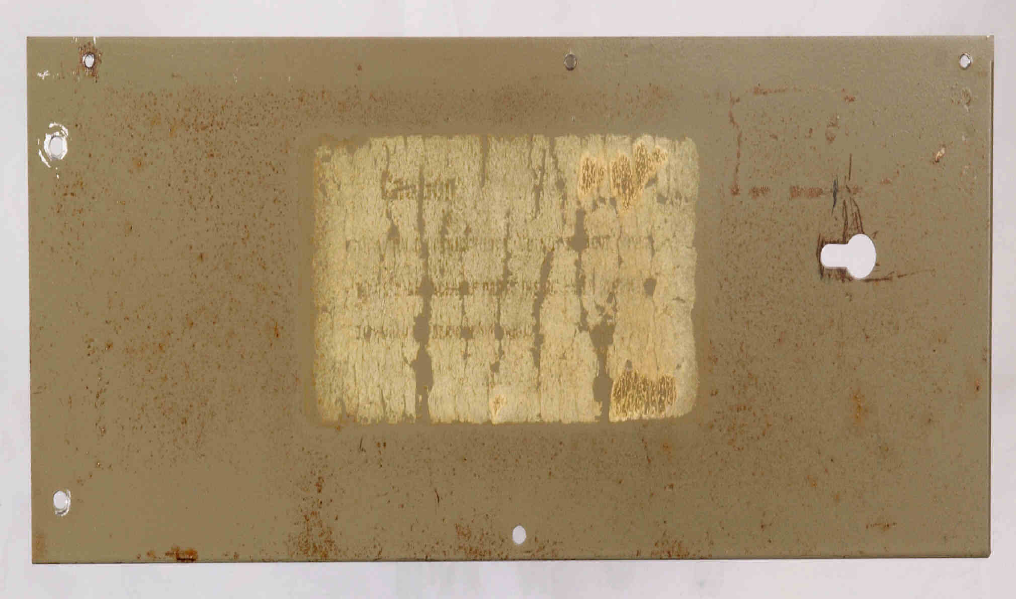 P12. 修理(塗装)後 前パネル。表示文字が薄くなっているので、これ以上進行させない為に、透明スプレーで押さえる。