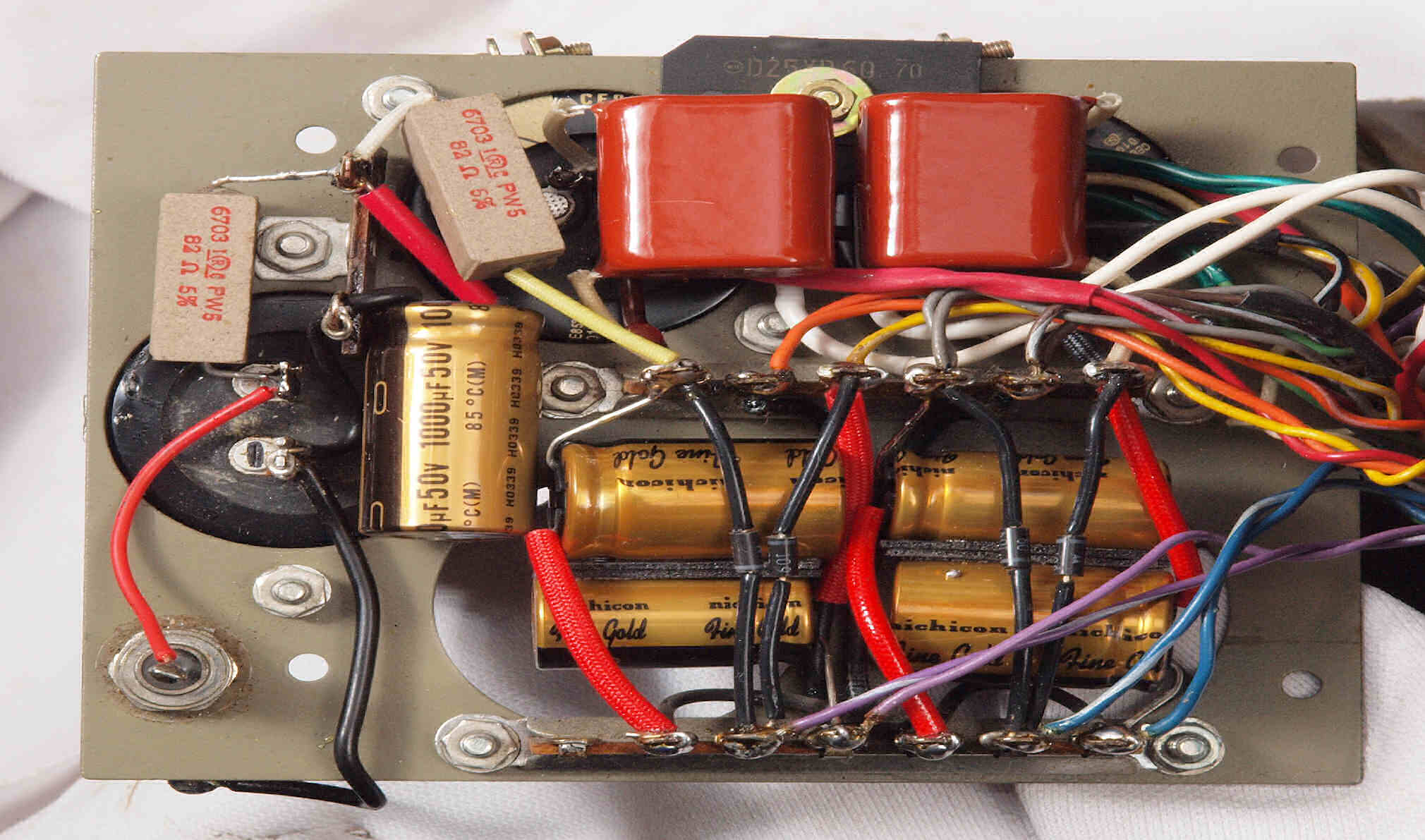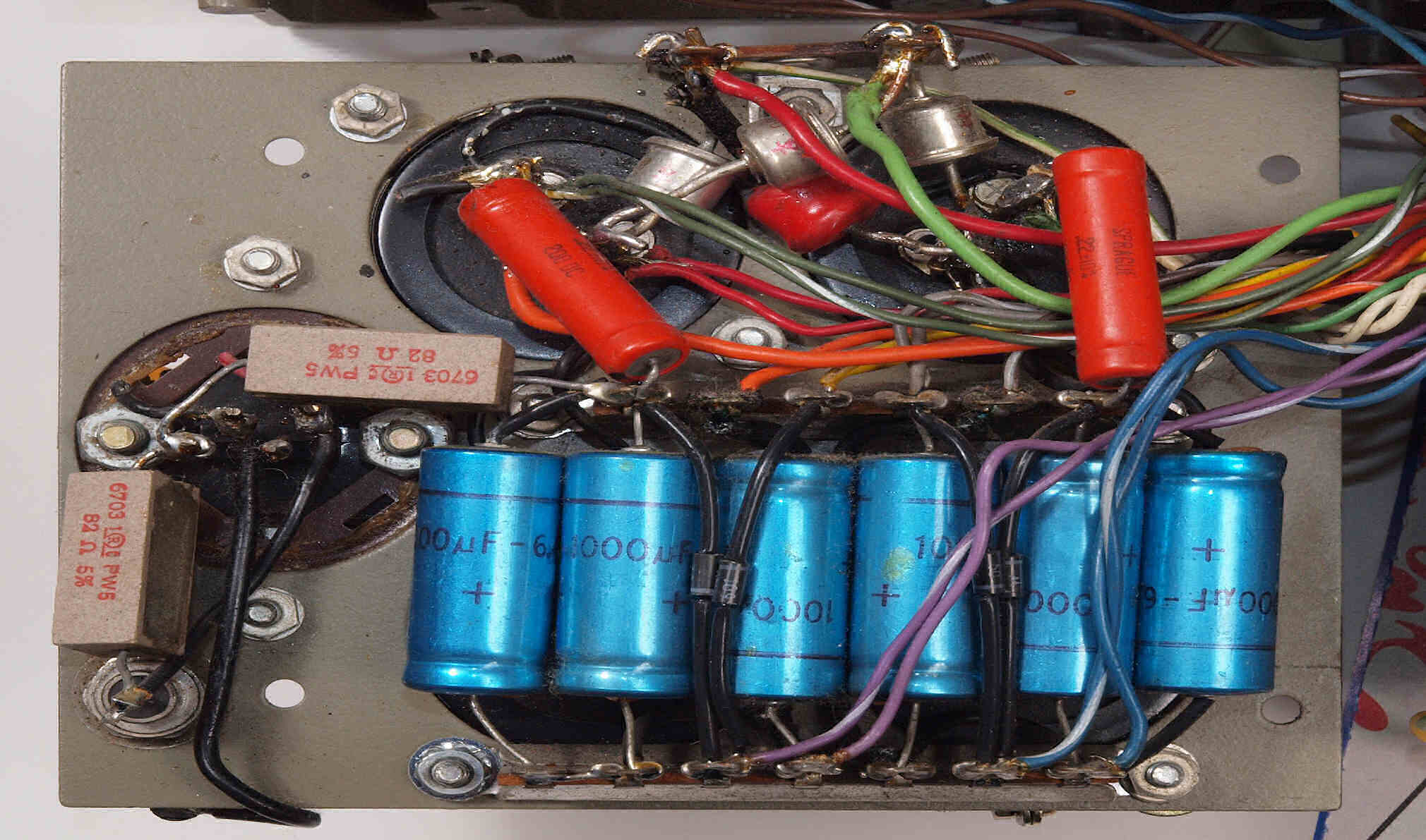 C42. 修理後 電源部。 終段電源用 4700μ/63V×4個から10000μ/71V×2個に交換。