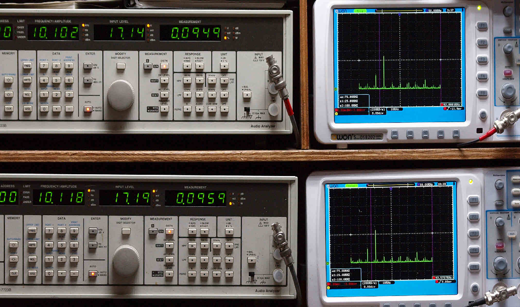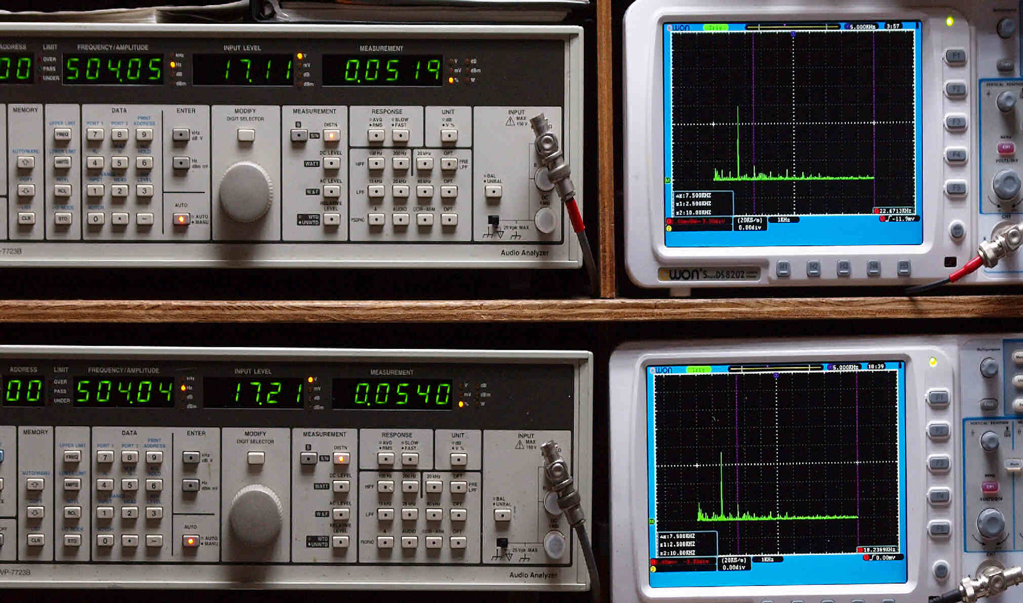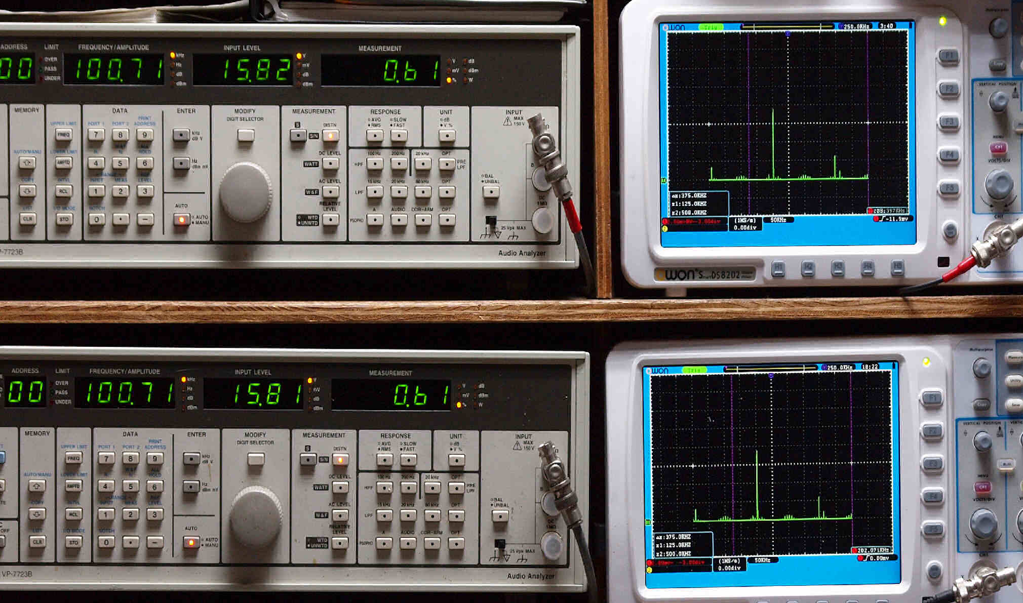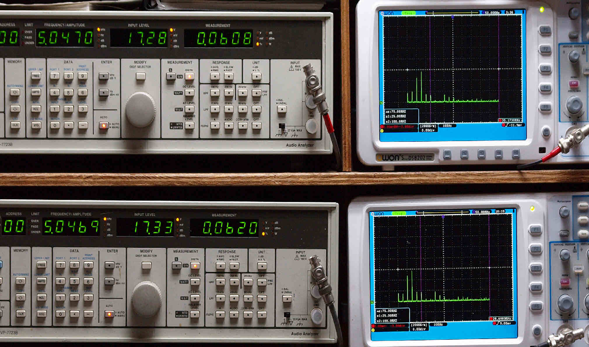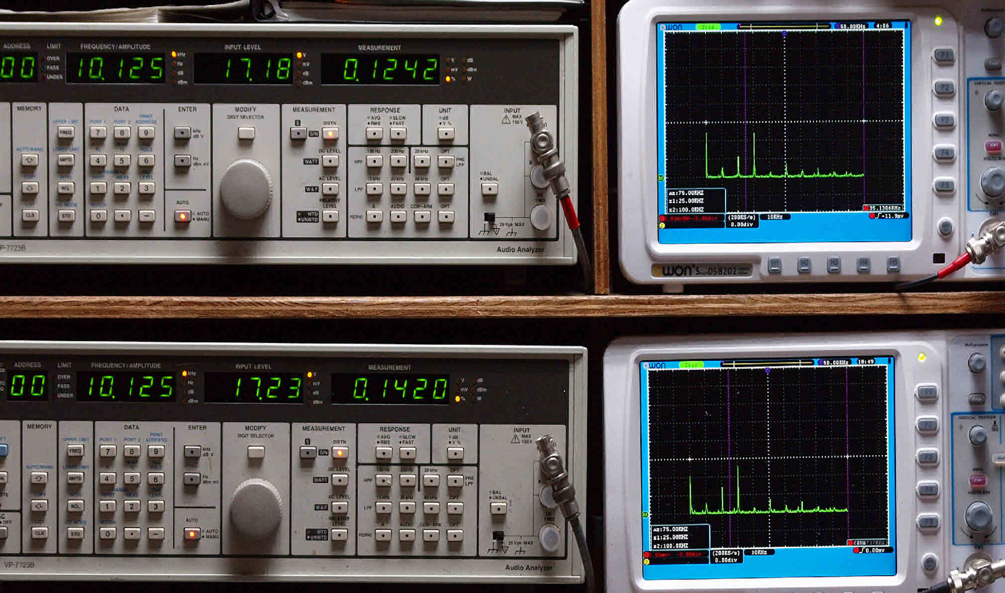 よって、ダイアル設定出力レベルより低くなります。測定機器の仕様や整備の様子はこちら、「VP−7723B」「VP−7201A」。 FFT画面の見方はこちら。