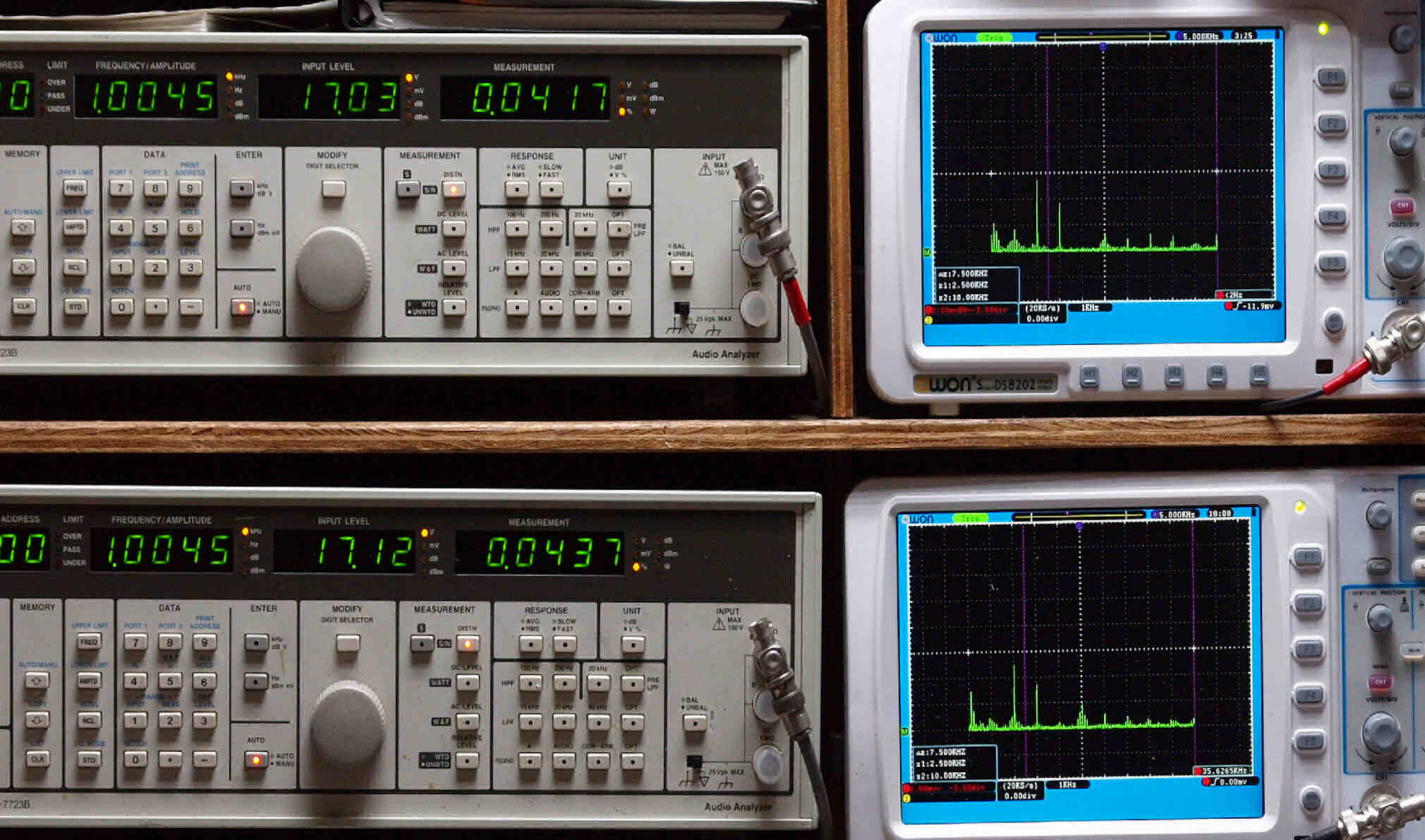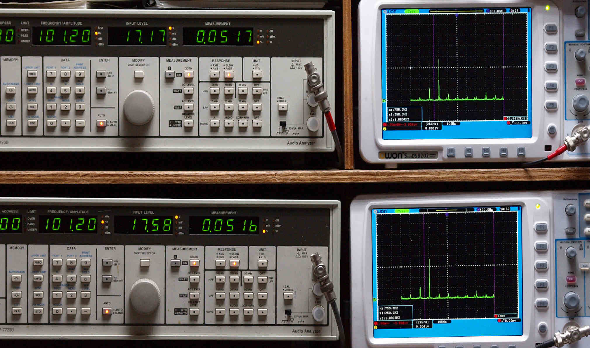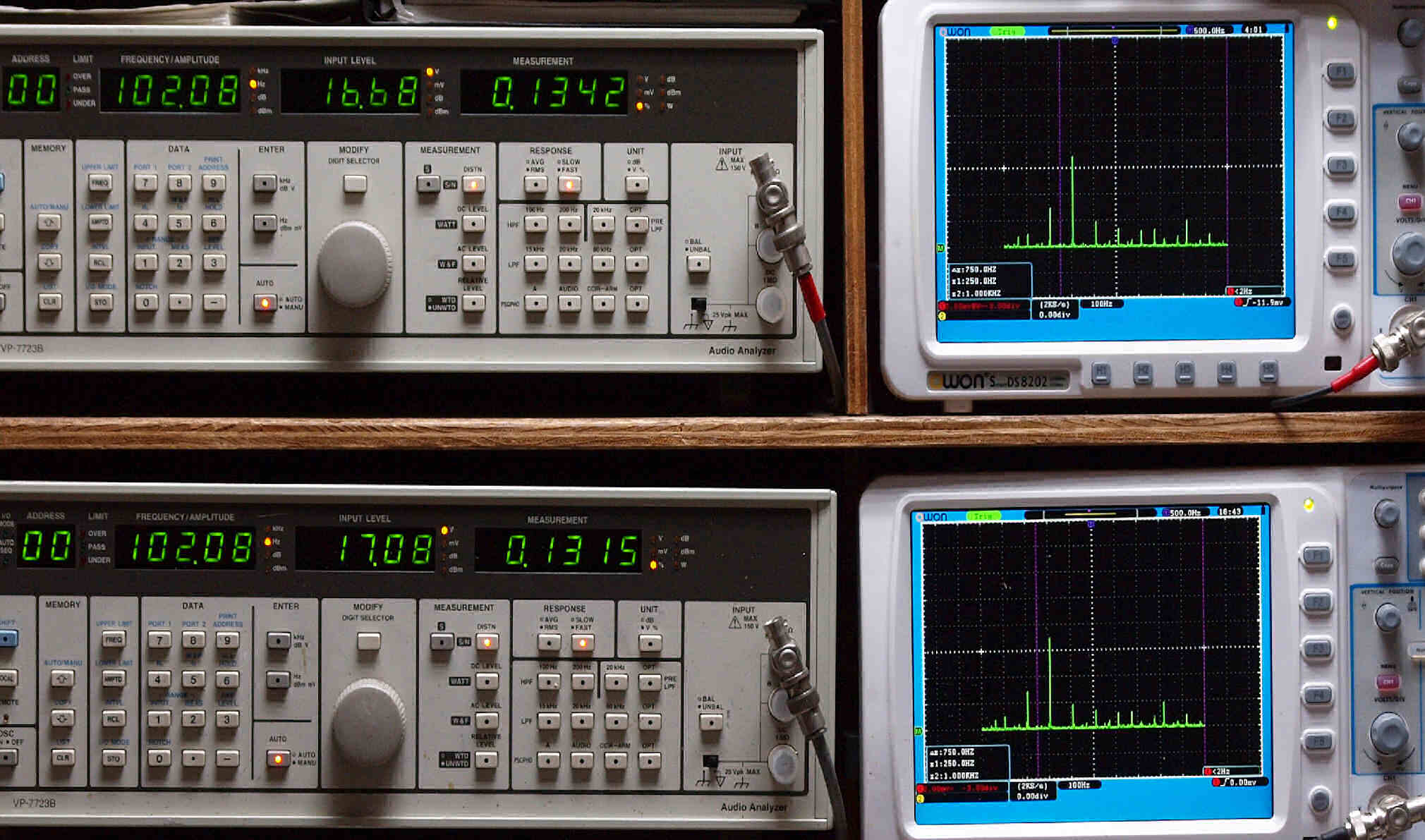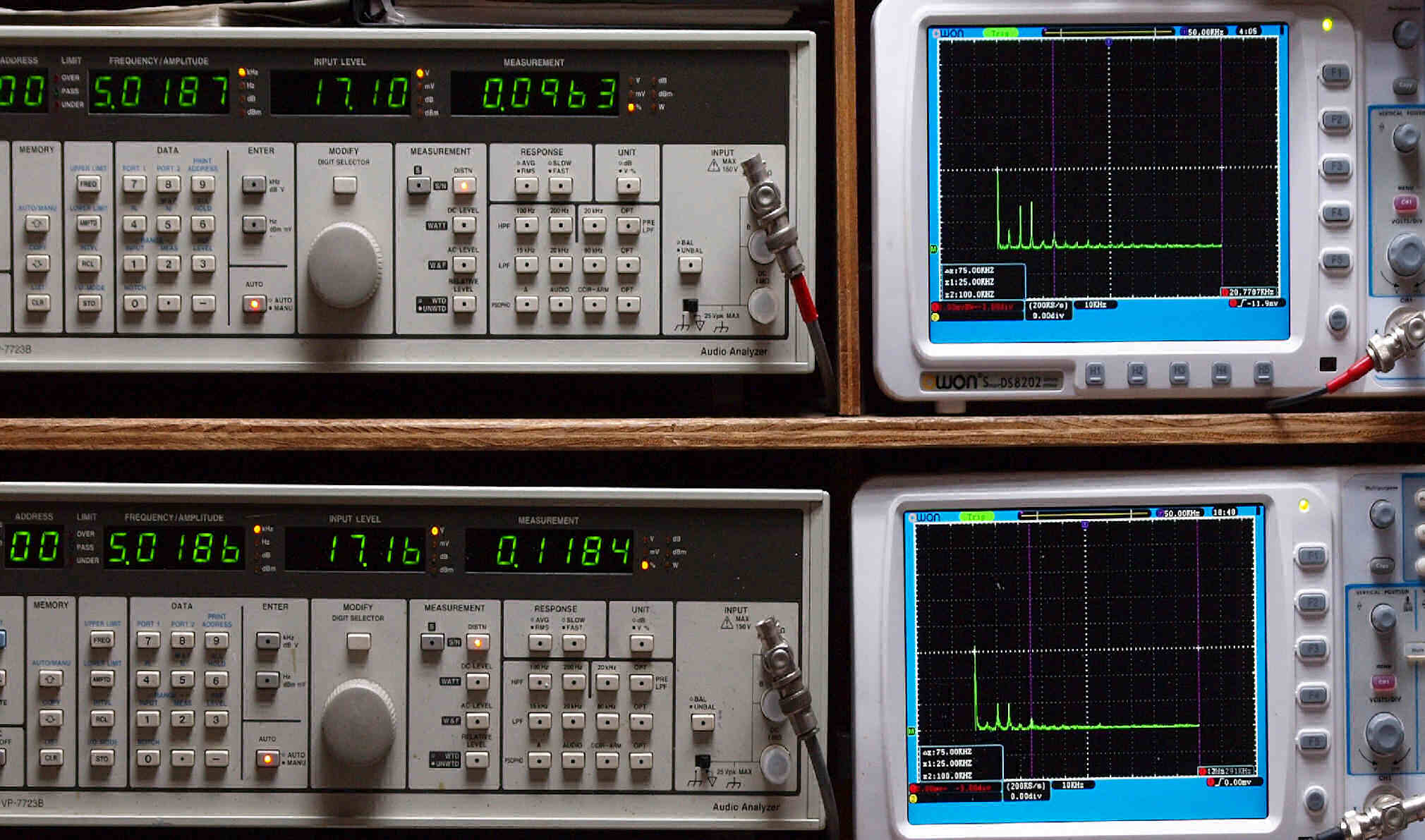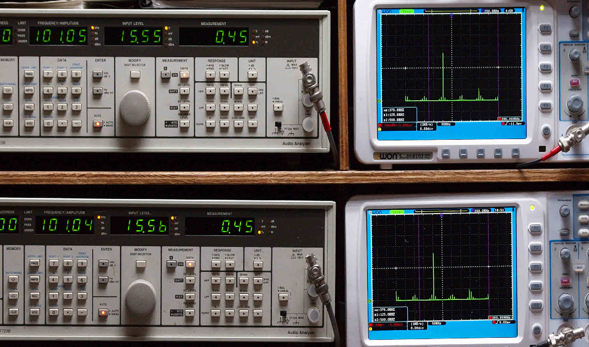 よって、ダイアル設定出力レベルより低くなります。測定機器の仕様や整備の様子はこちら、「VP−7723B」「VP−7201A」。 FFT画面の見方はこちら。
