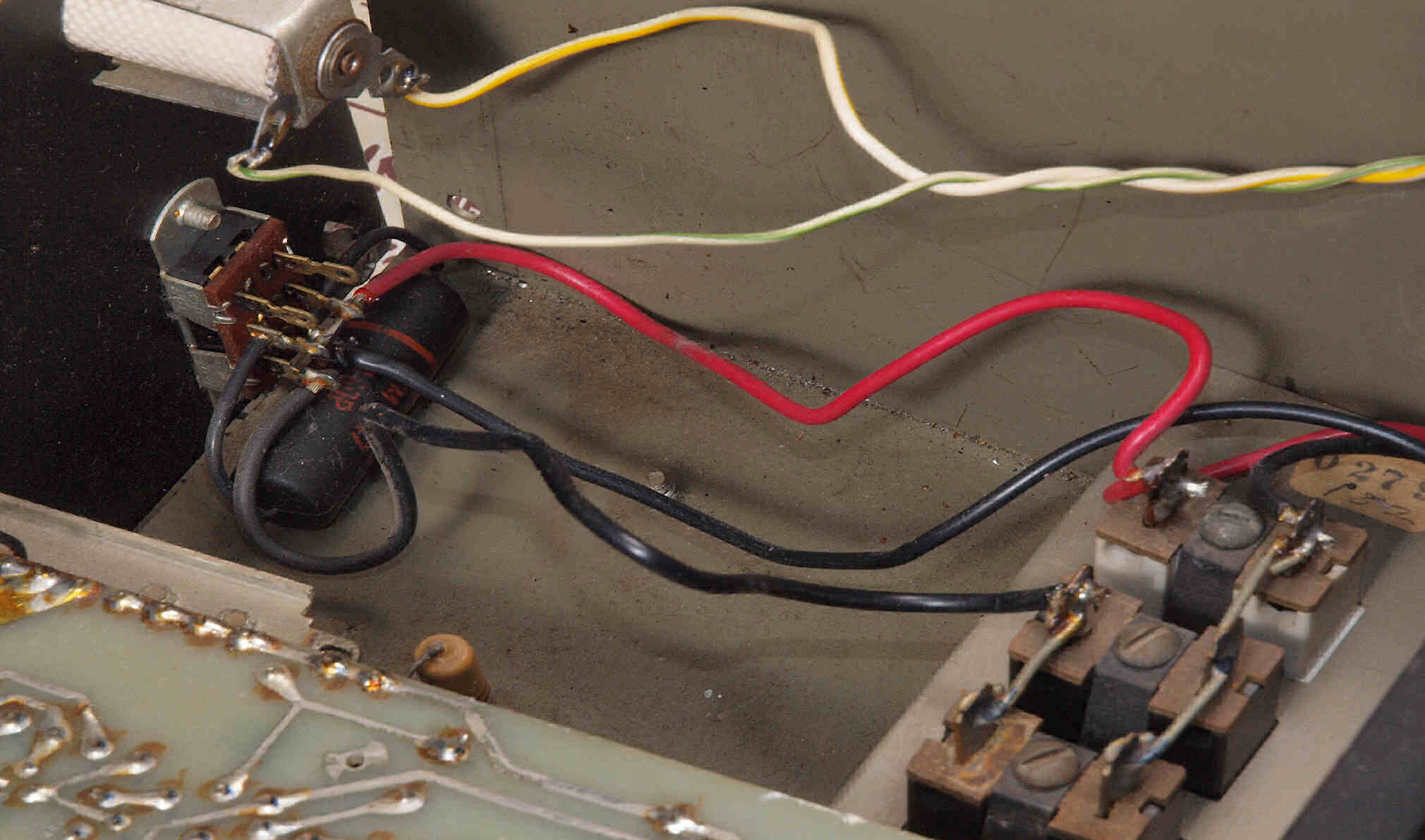 C44. 修理後 電源部裏。 整流ダイオード4本を整流ブリッジに交換する。