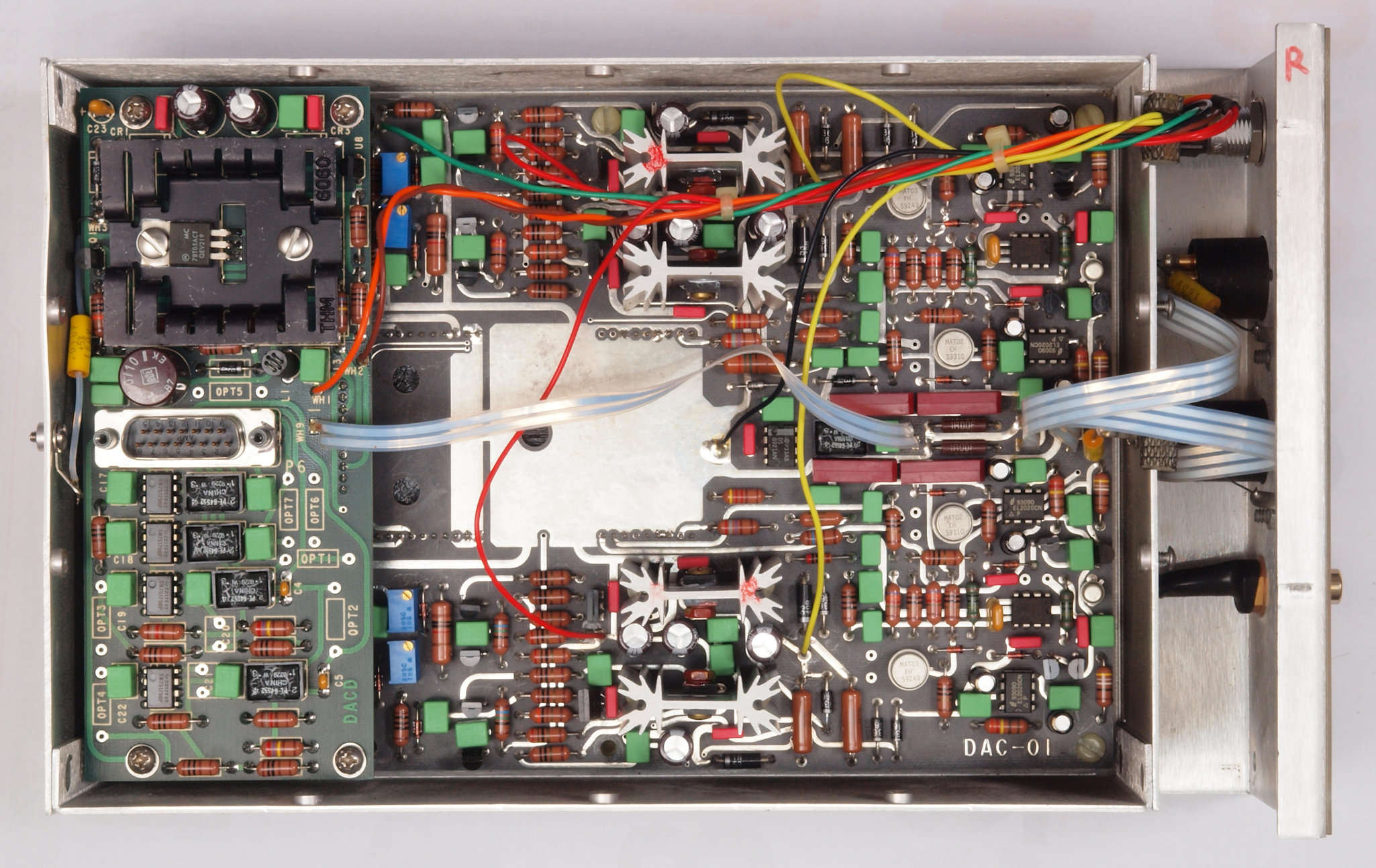 | C21. 修理中 右側アナログAMP入力基板。電解コンデンサーが交換されている。 | ||||||||||||||||||||||||||||||||||