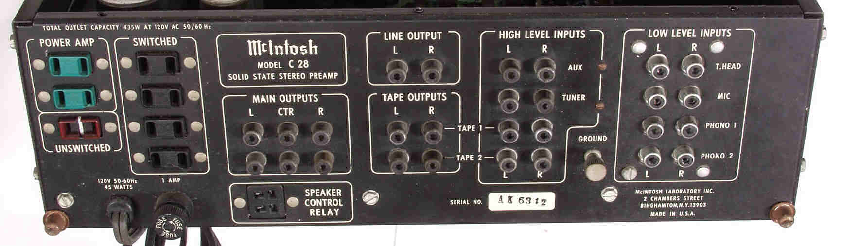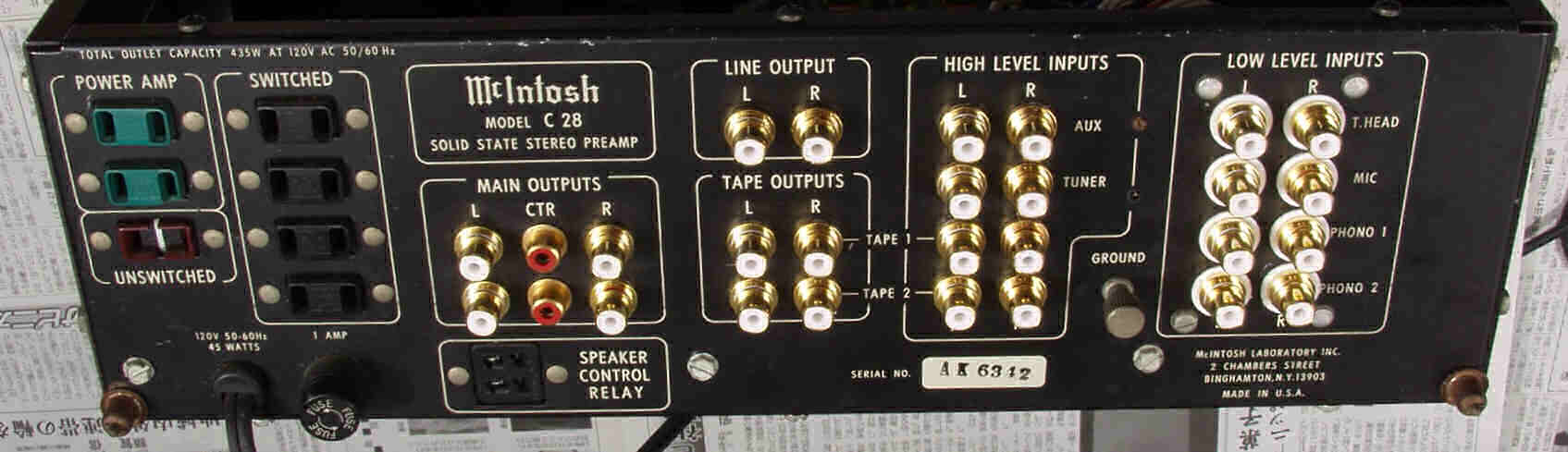 F. 上位測定器による 調整・測定 G. 修理費 120,000円 S. McIntosh C28 の仕様(マニアル・カタログより) |