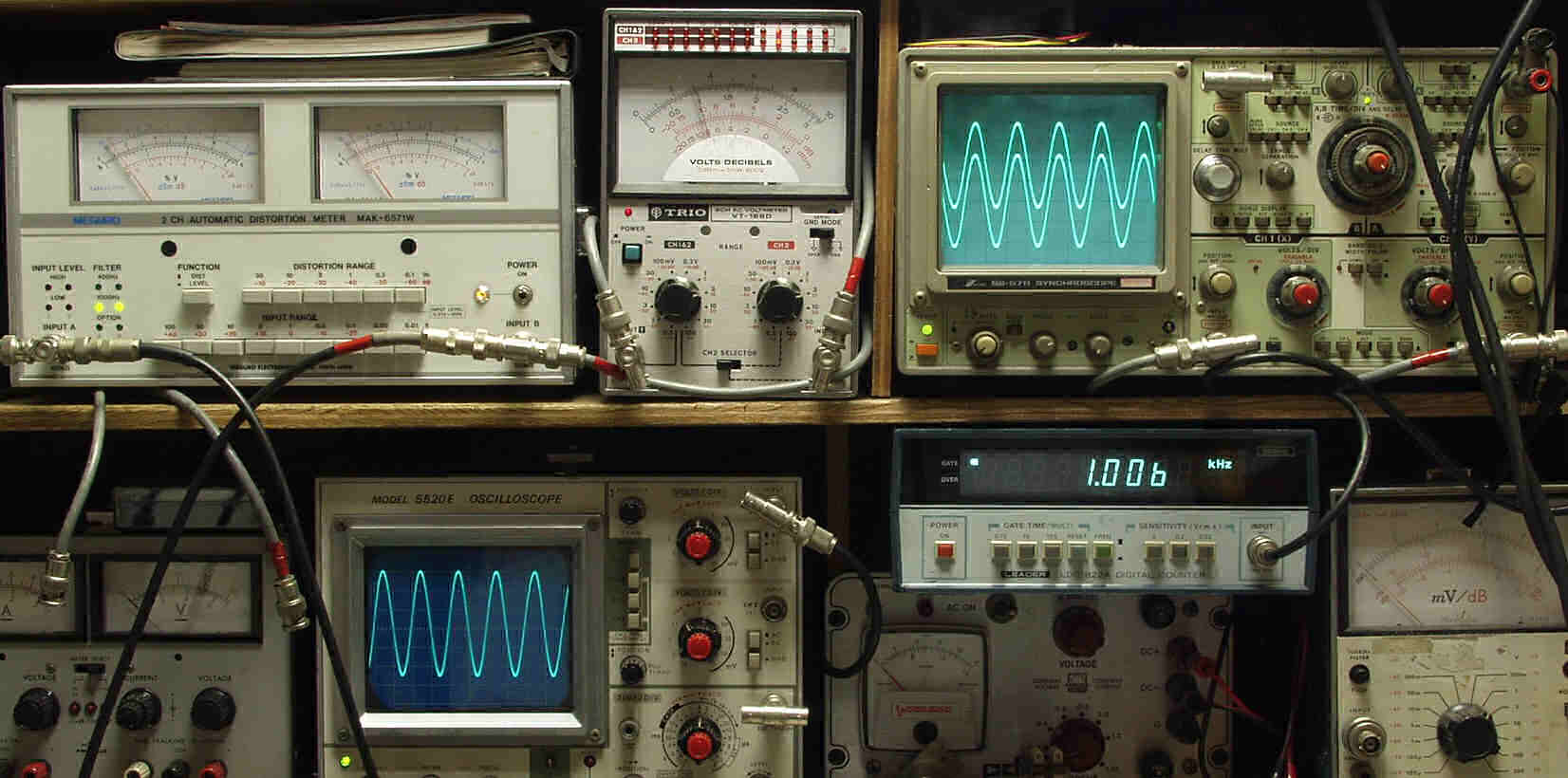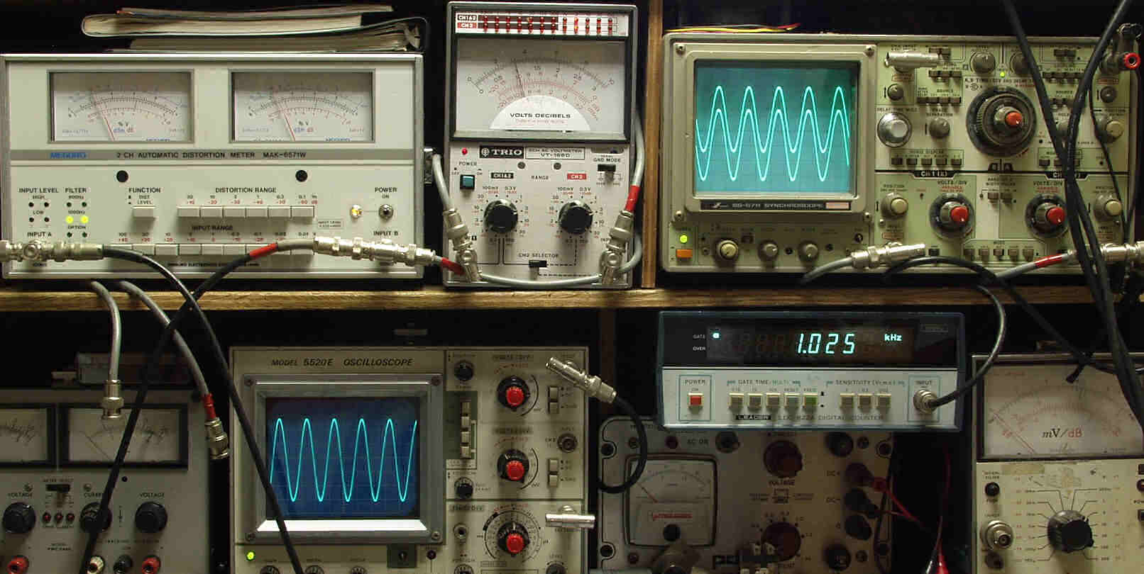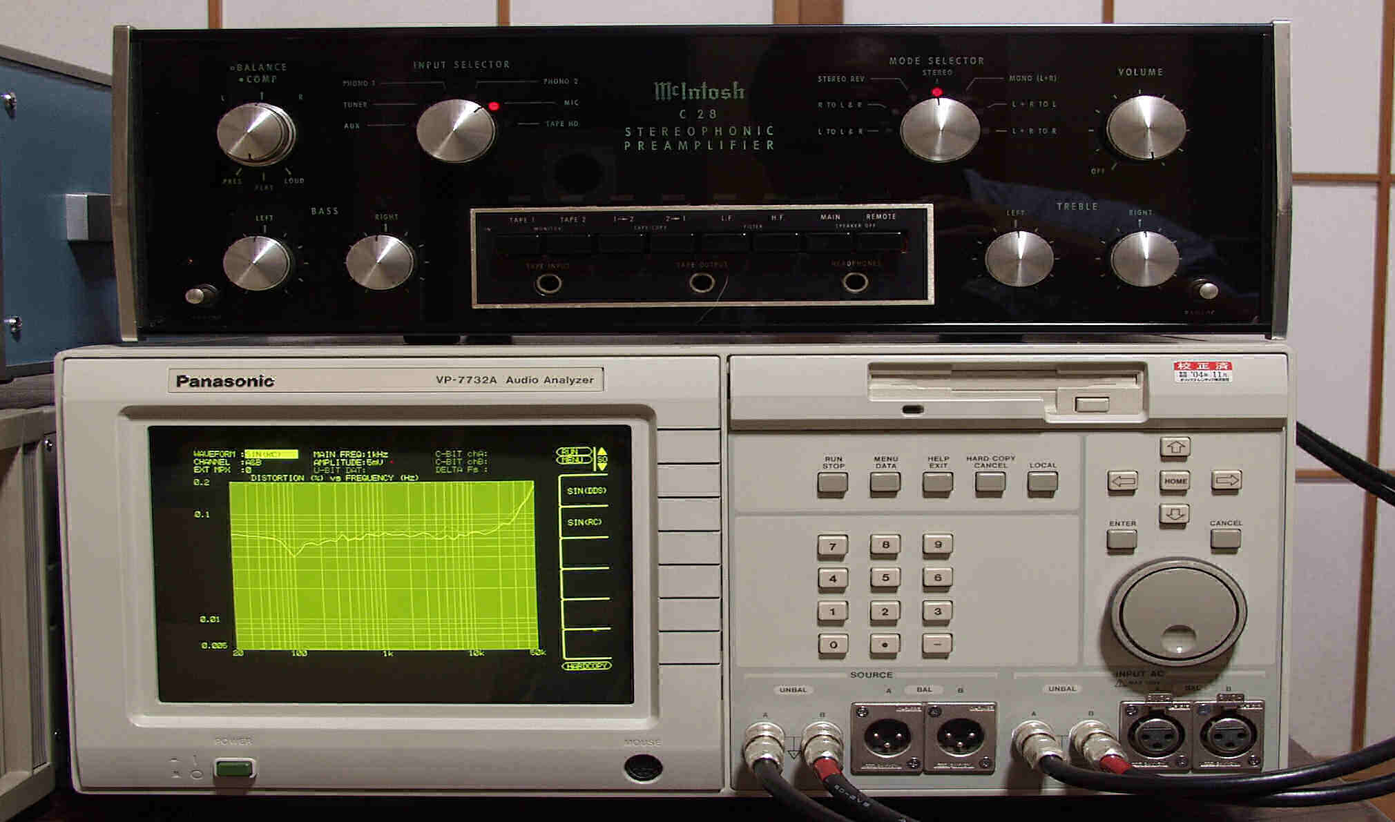 | F. 上位測定器による 調整・測定 F0. 下のオーディオアナライザーVP−7732Aで自動測定。 |