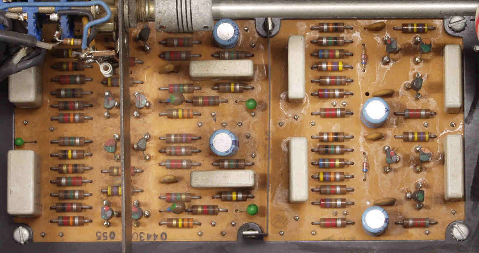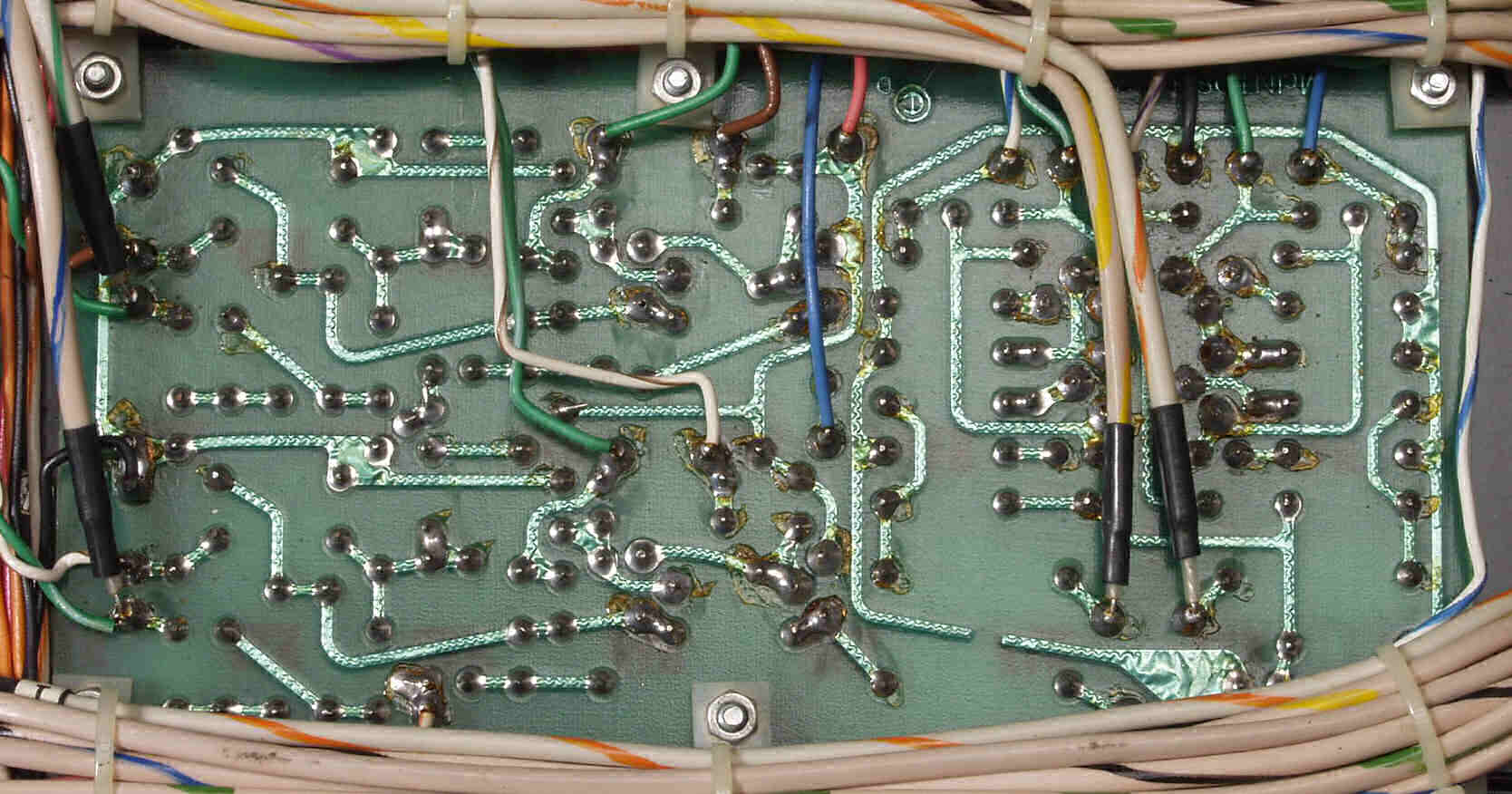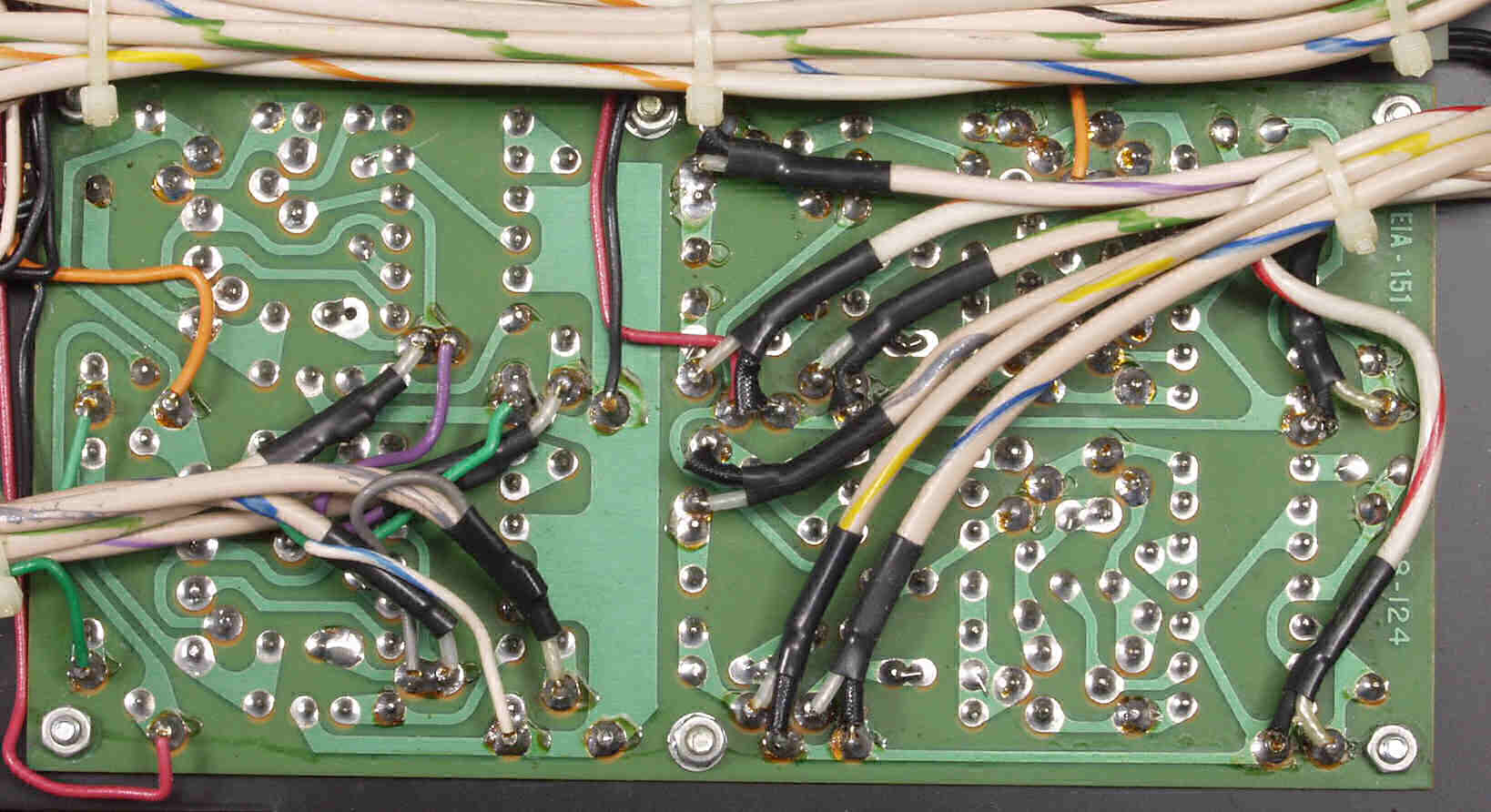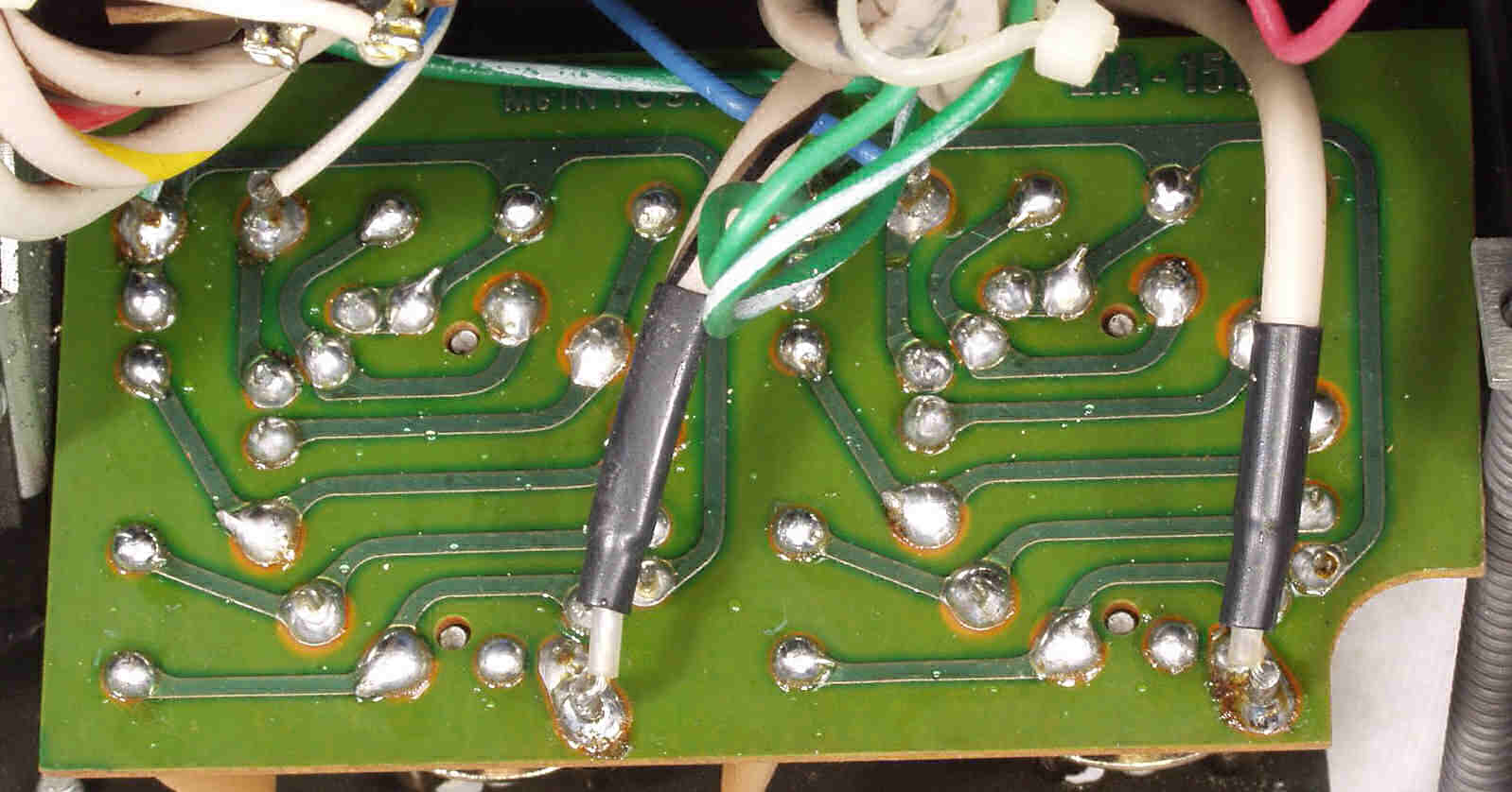 | C5D. 修理(半田補正)後 TREBLコントロール基盤裏。 半田を全部やり直し、 洗浄後防湿材を塗る。 | ||||||||||||||||||||||||||||||||||||||||||||||||||||||||||