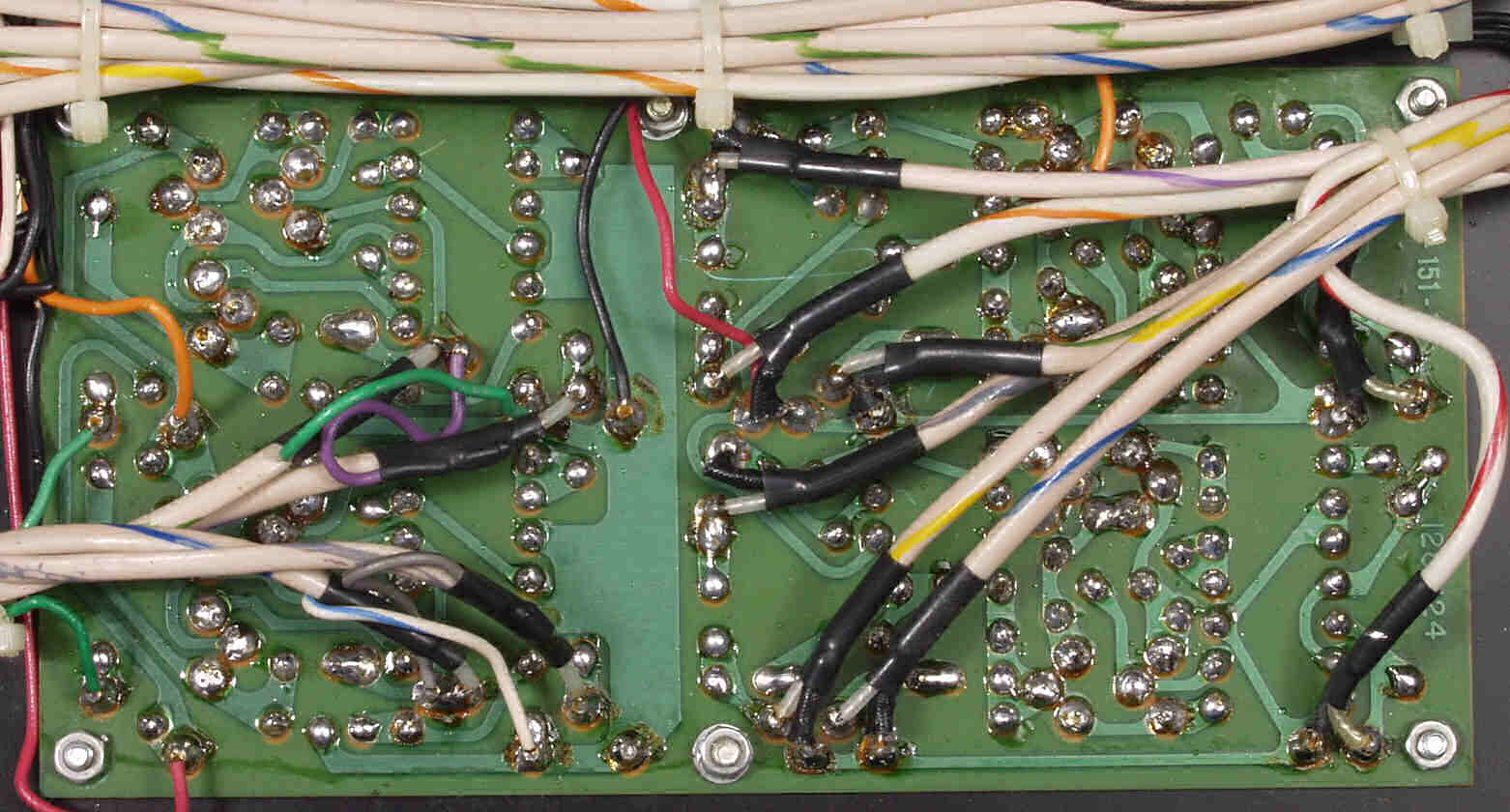 | C4C. 修理(半田補正)後 BASSコントロール基盤裏。 半田を全部やり直し、洗浄後防湿材を塗る。 | ||||||||||||||||||||||||||||||||||||||||||||||||||||||||||