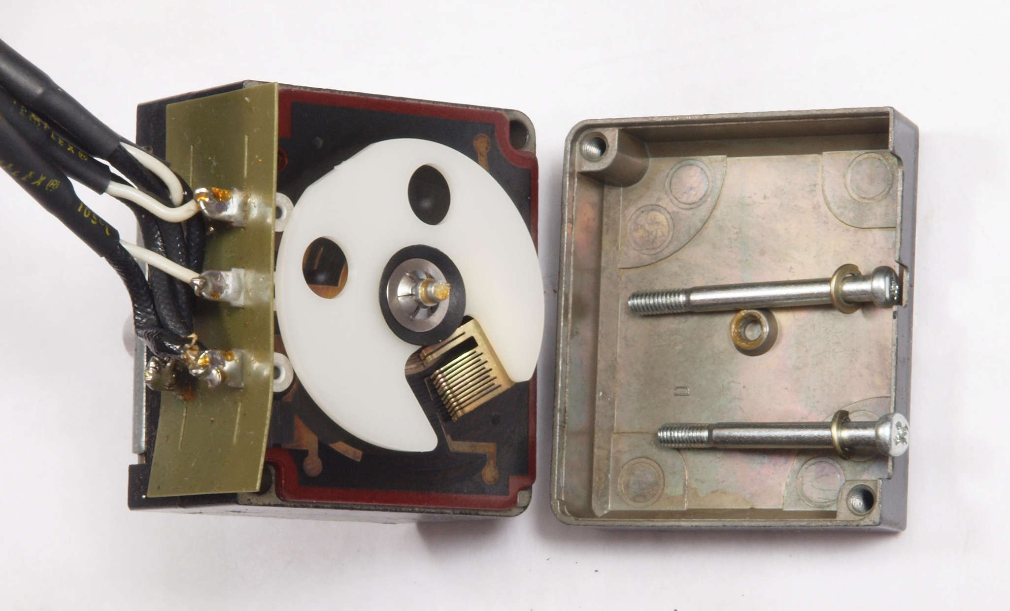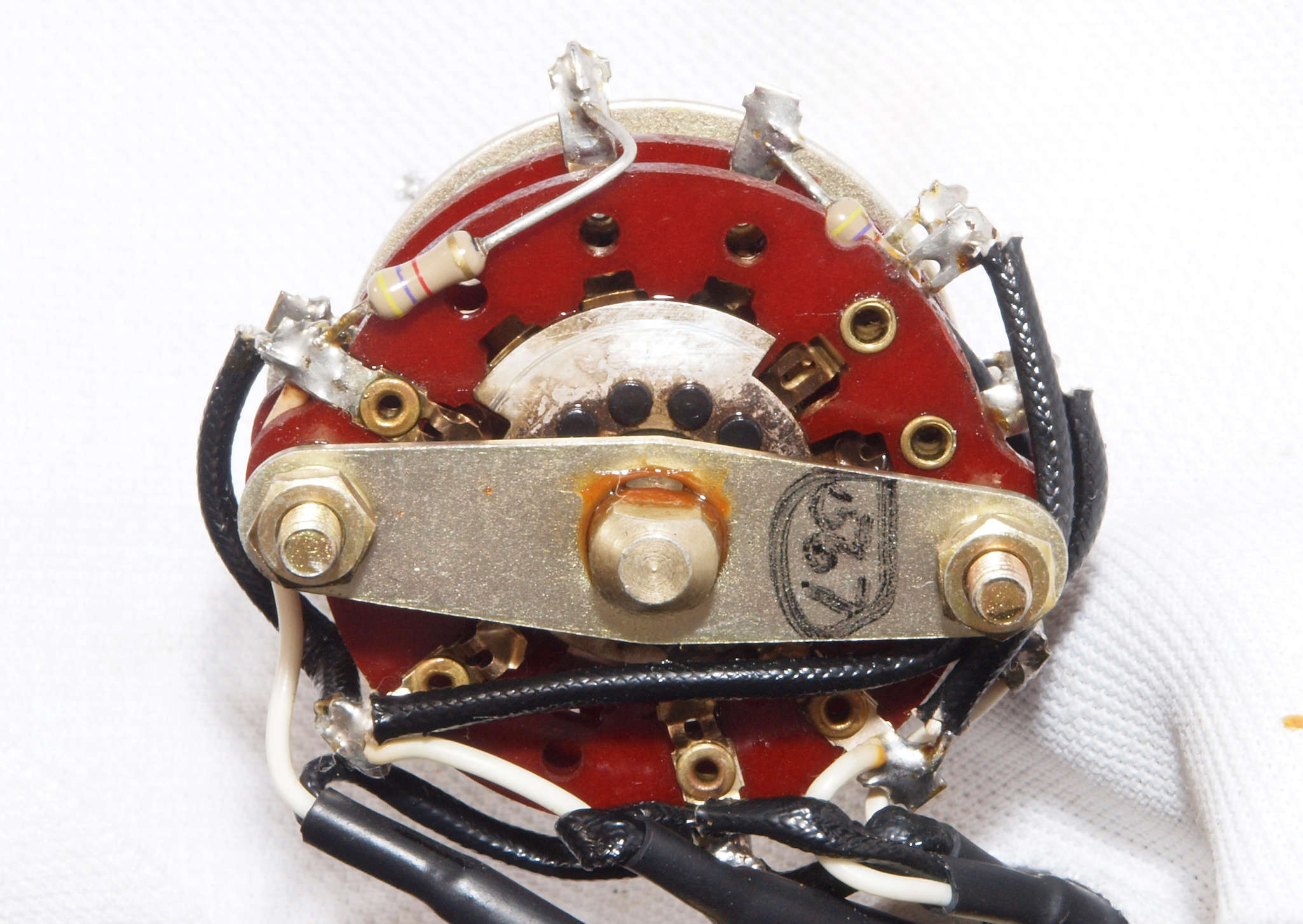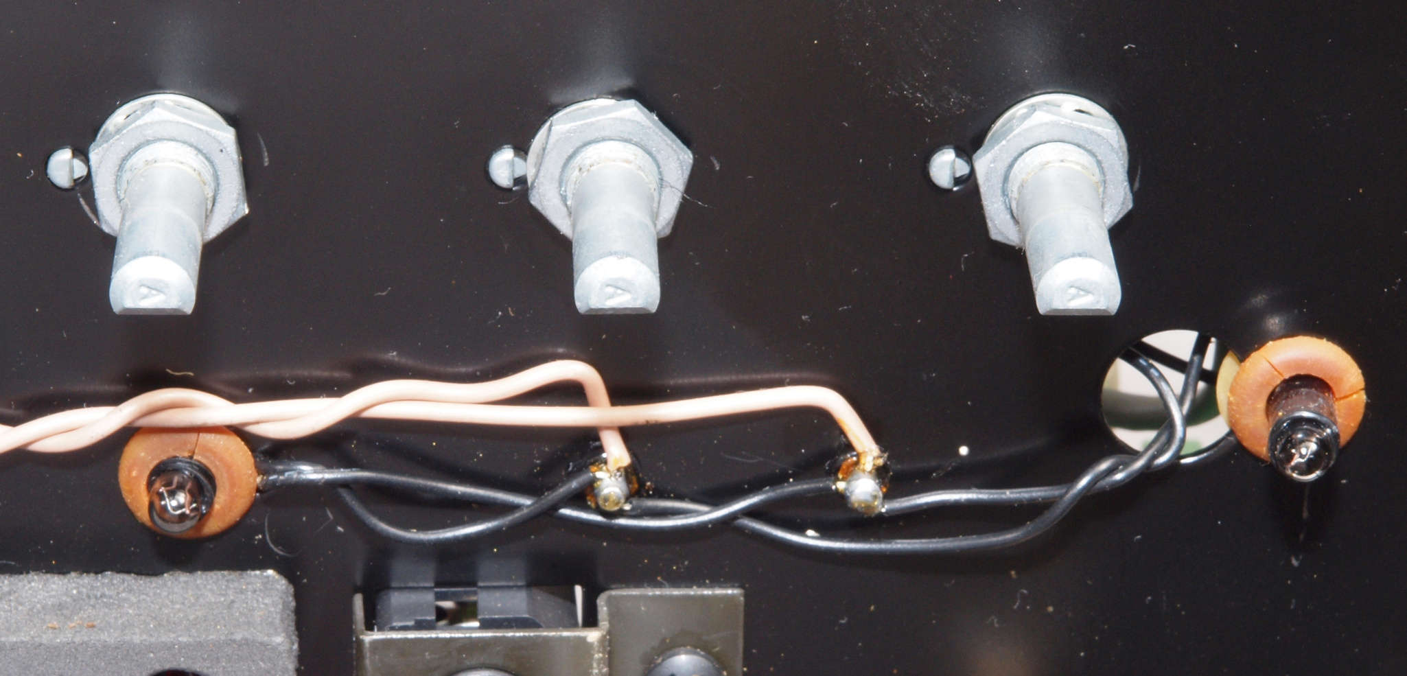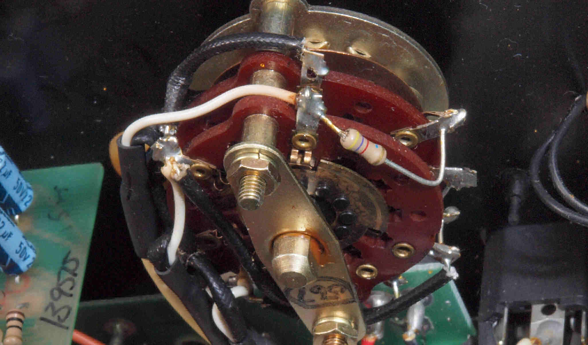 A24. 点検中 上蓋・シールドを取り、上から見る。 ボリュームは接点復活材が使用されている。