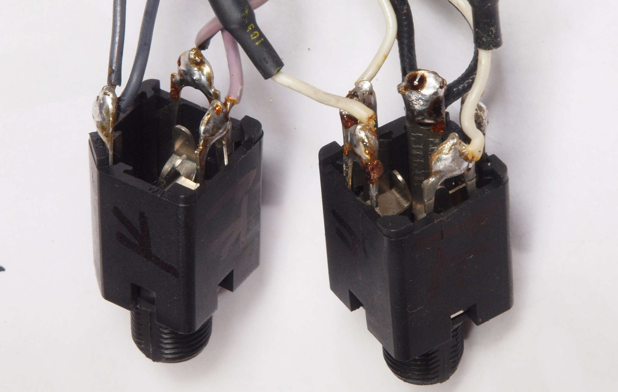 C44. 修理(半田補正)後 HighLevelInput TapeOutSW−左基板裏。 半田を全部やり直す。